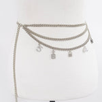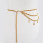 Elevate your accessory game with this sophisticated layered chain belt, where luxury meets versatility. Featuring an expertly curated mix of gleaming gold chains, ornamental locks, and lustrous pearls, this statement piece transforms any outfit from ordinary to extraordinary. The intricate charm detailing creates visual depth and movement, while the refined construction ensures lasting wear. Perfect for those who understand that true style lies in the details—wear it cinched at the waist for definition or layered over dresses for an effortlessly polished look.