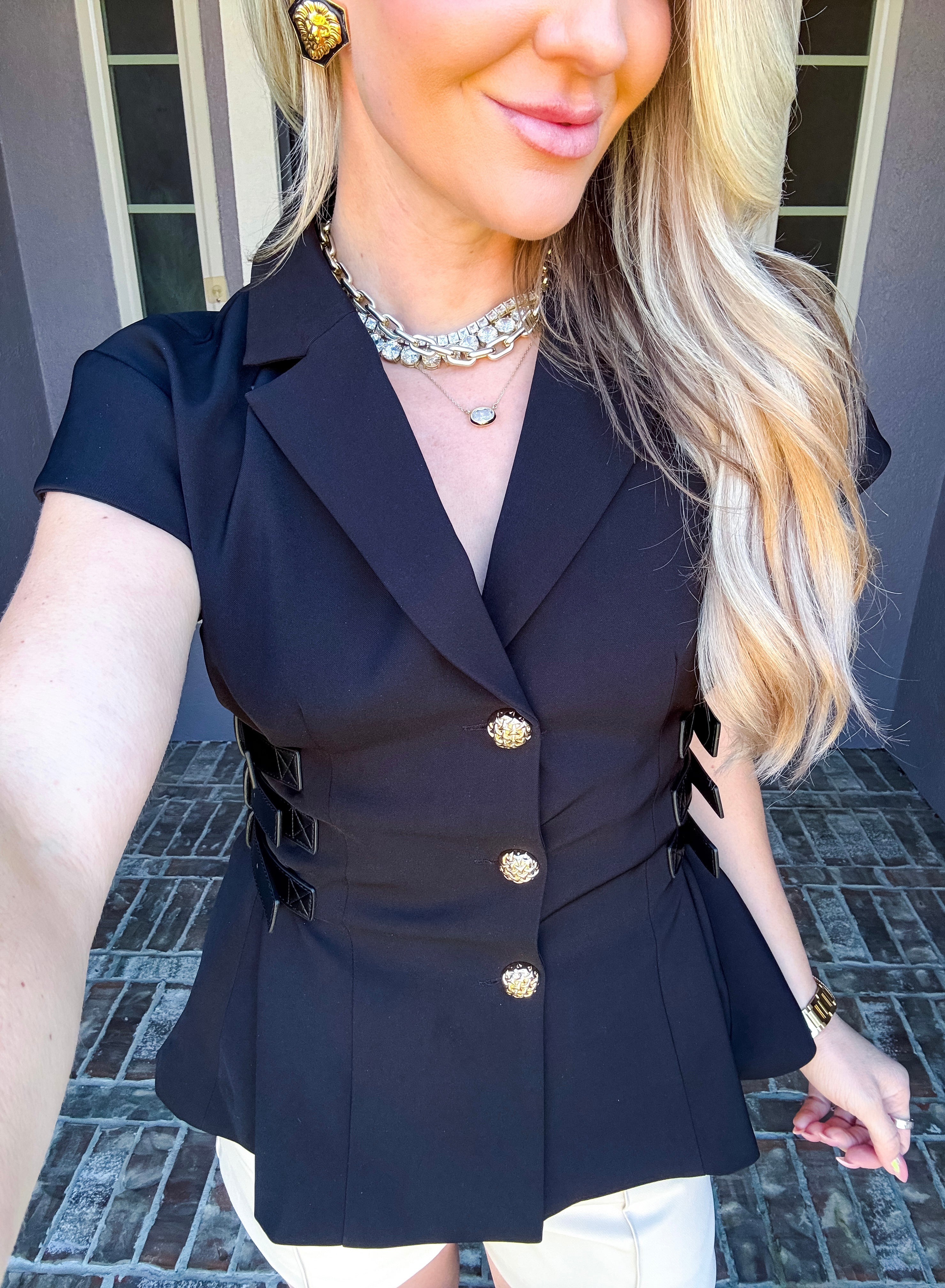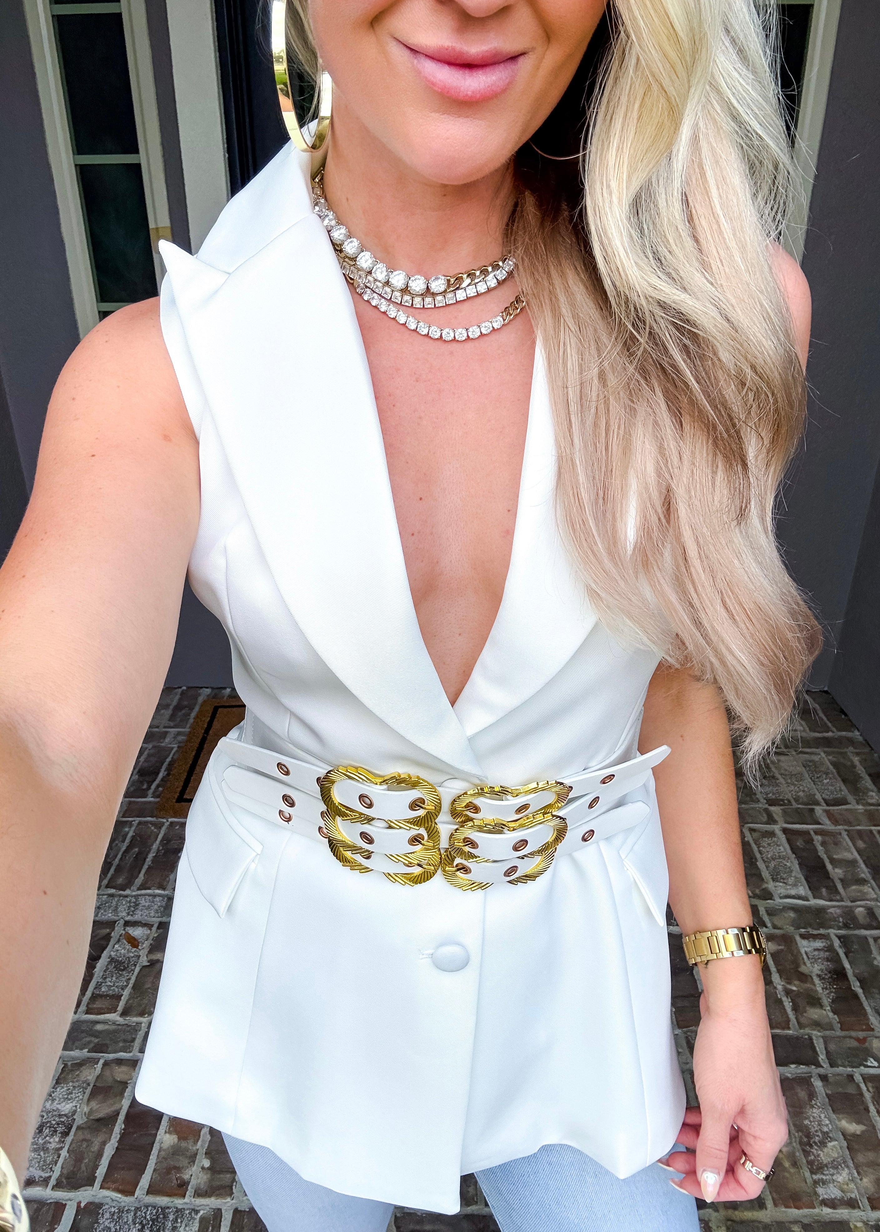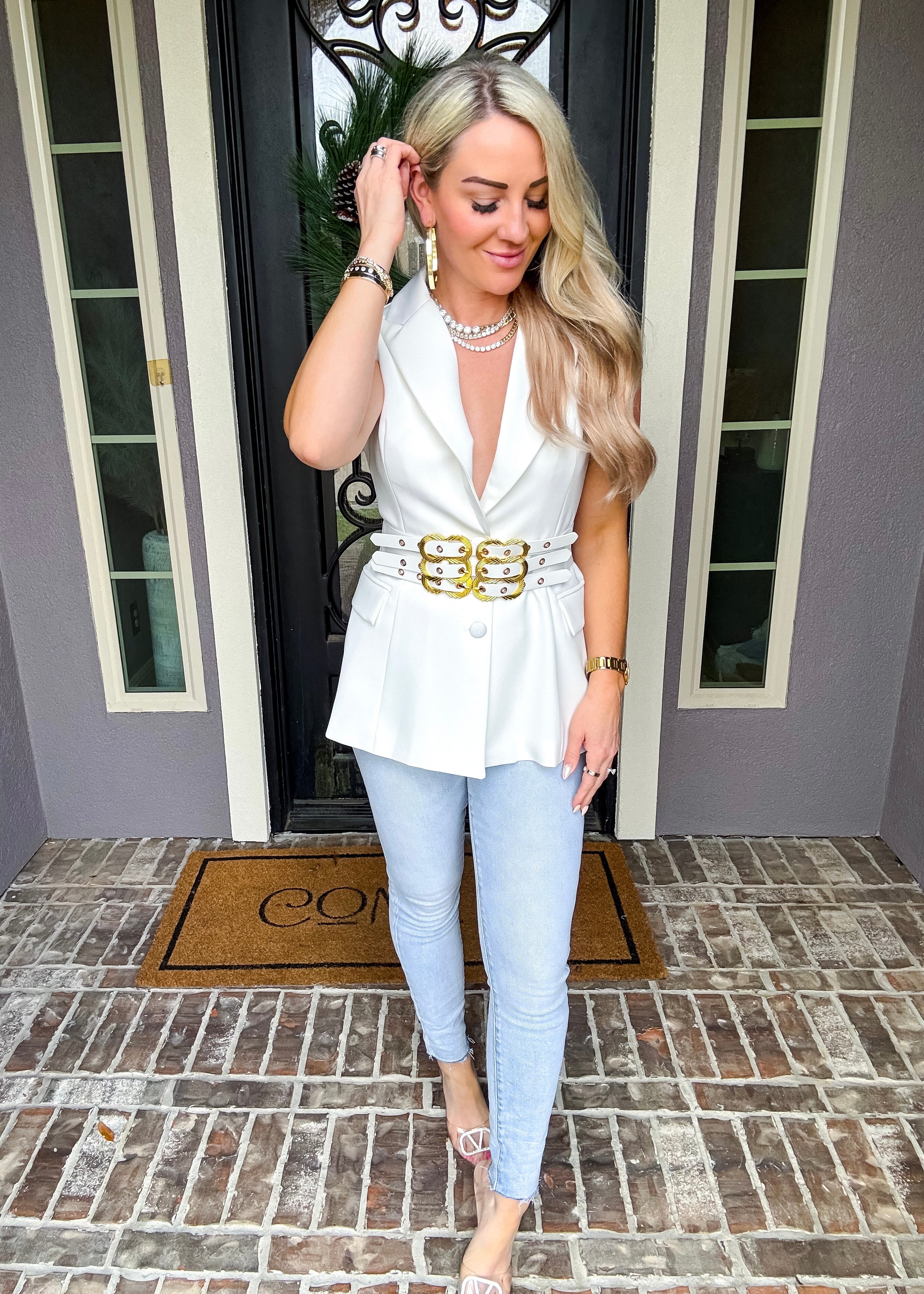 Commanding Couture Belted Sleeveless Blazer
