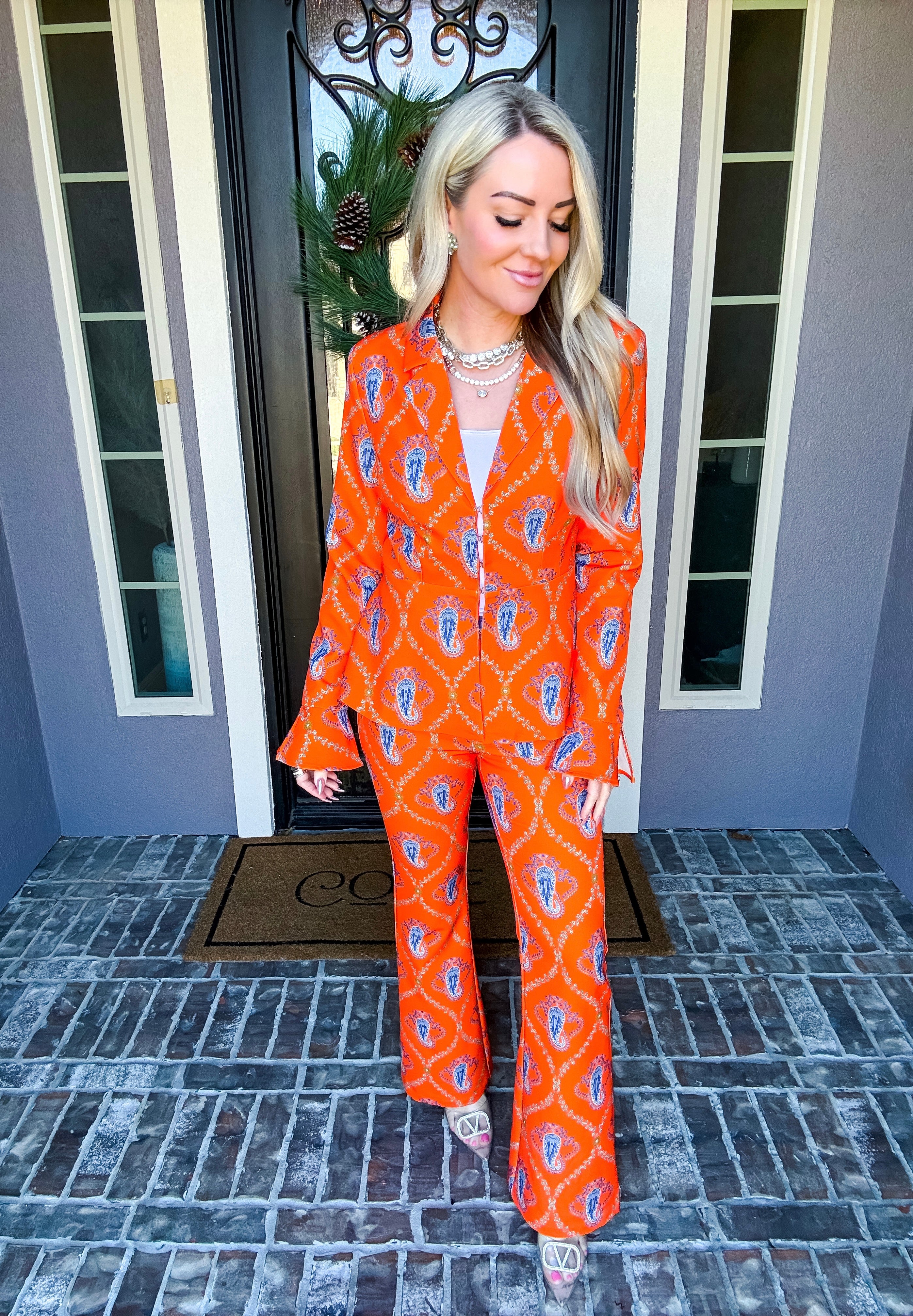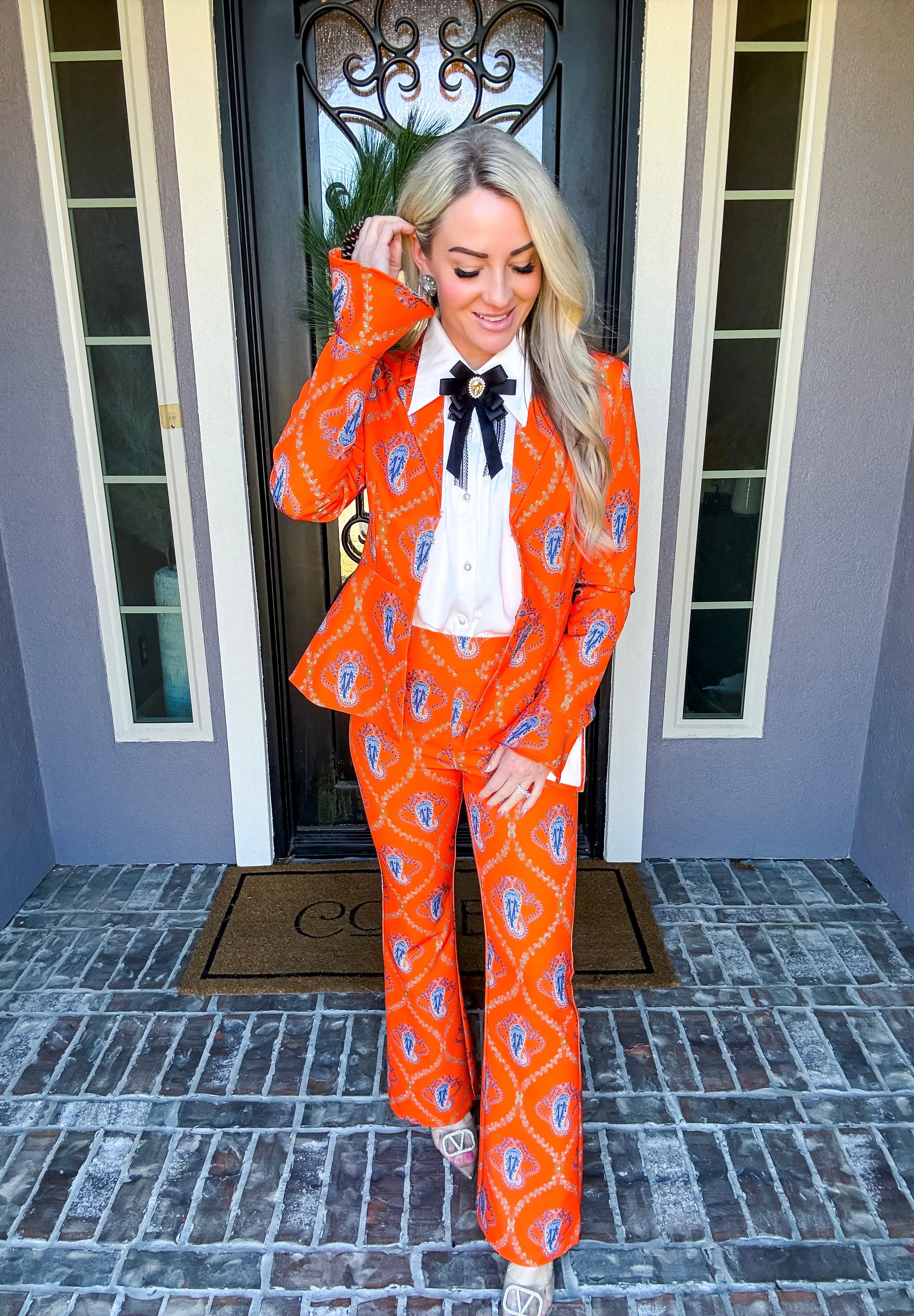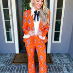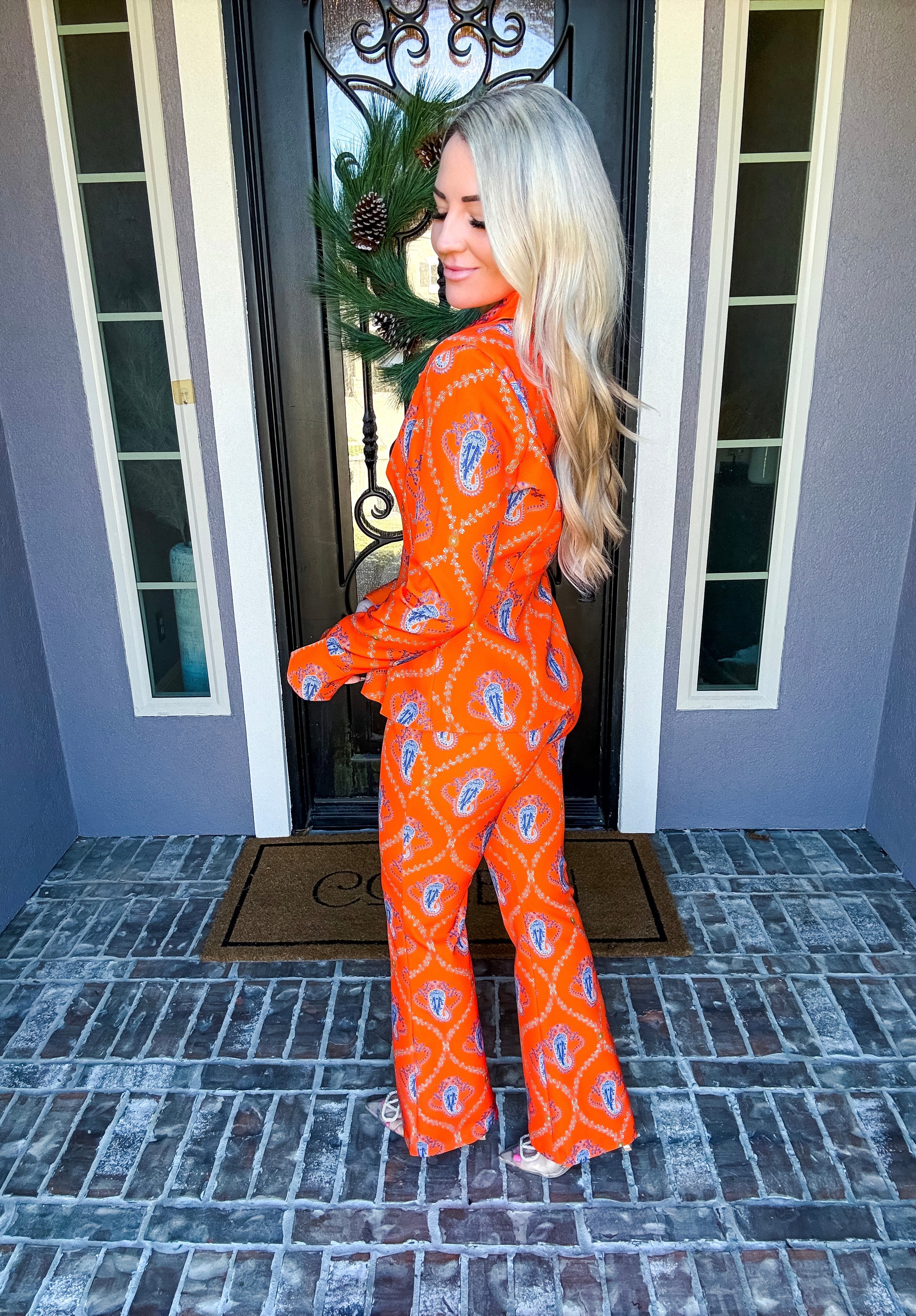 Monte Carlo Muse Paisley Trousers deliver a striking silhouette with their eye-catching paisley pattern and impeccable tailoring. Designed for the discerning dresser, these trousers feature a discreet back zip closure and a subtle flare at the hem that elongates the leg. The structured, non-stretch fabric ensures a polished drape and refined fit. Pair with the matching blazer to create a sophisticated, head-turning ensemble that commands attention.