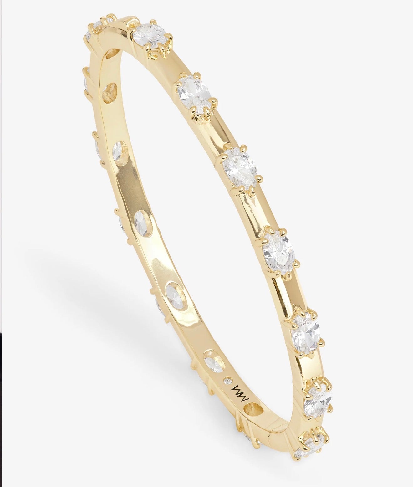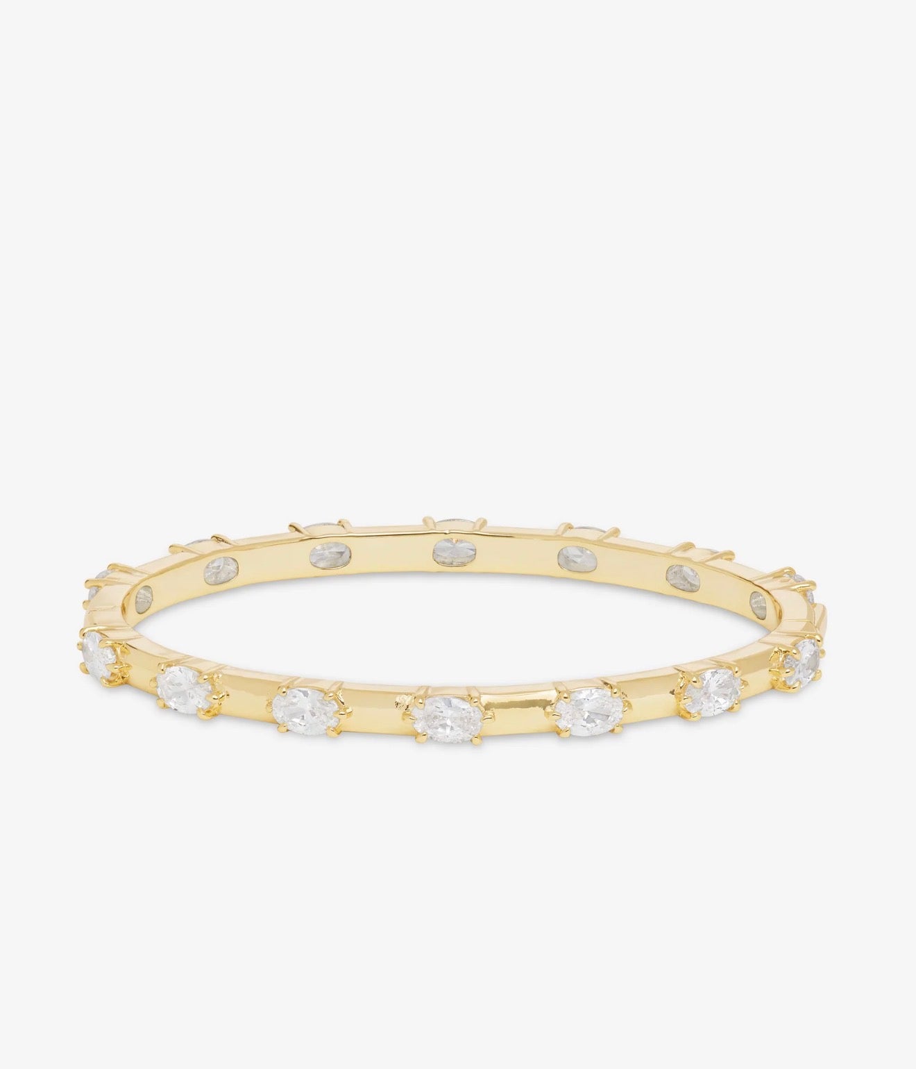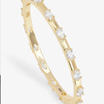 Dimension, dialed in. This oval cuff features spaced, east–west station-set stones that create balance, light, and architectural depth. Strong in profile, polished in finish.