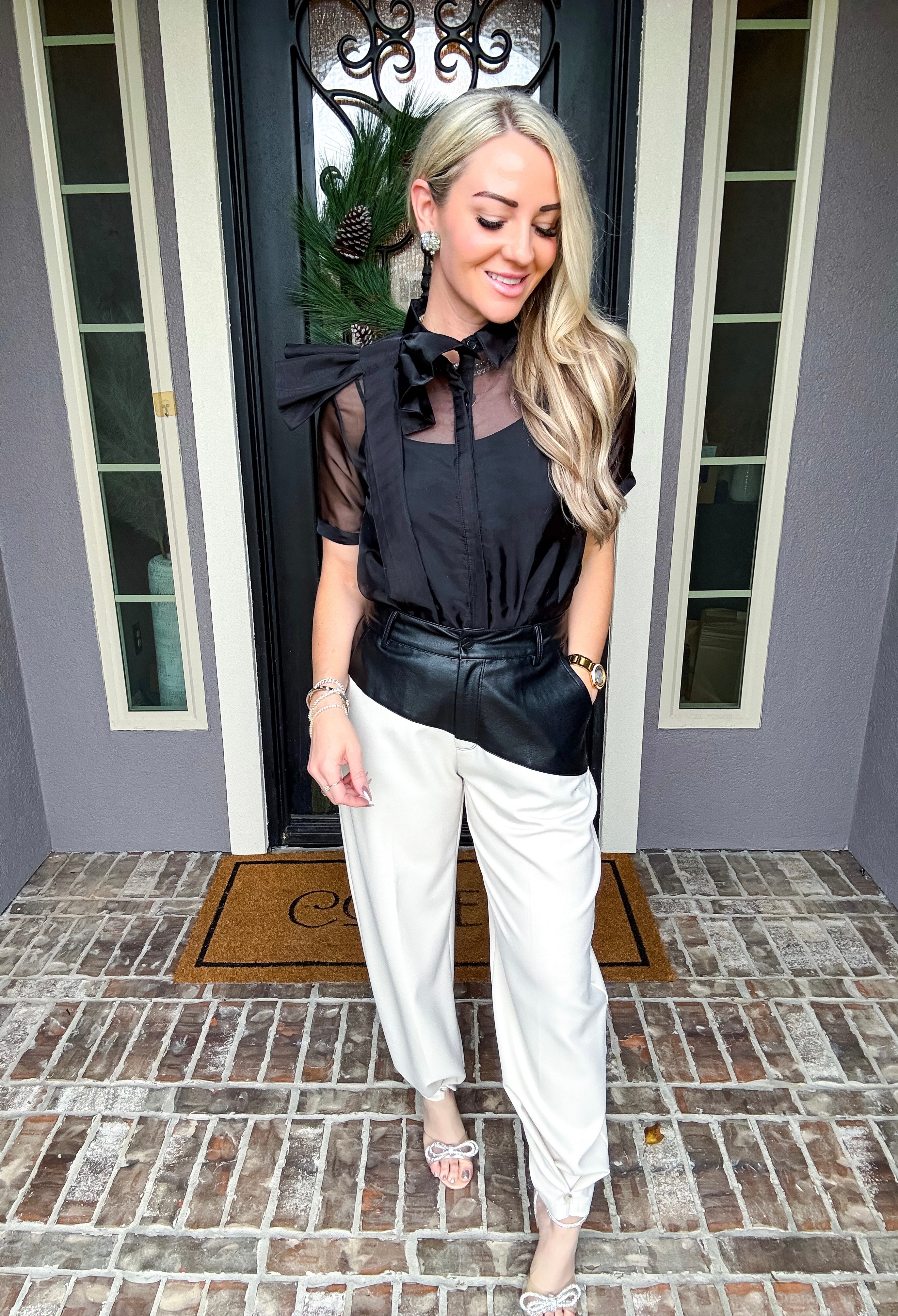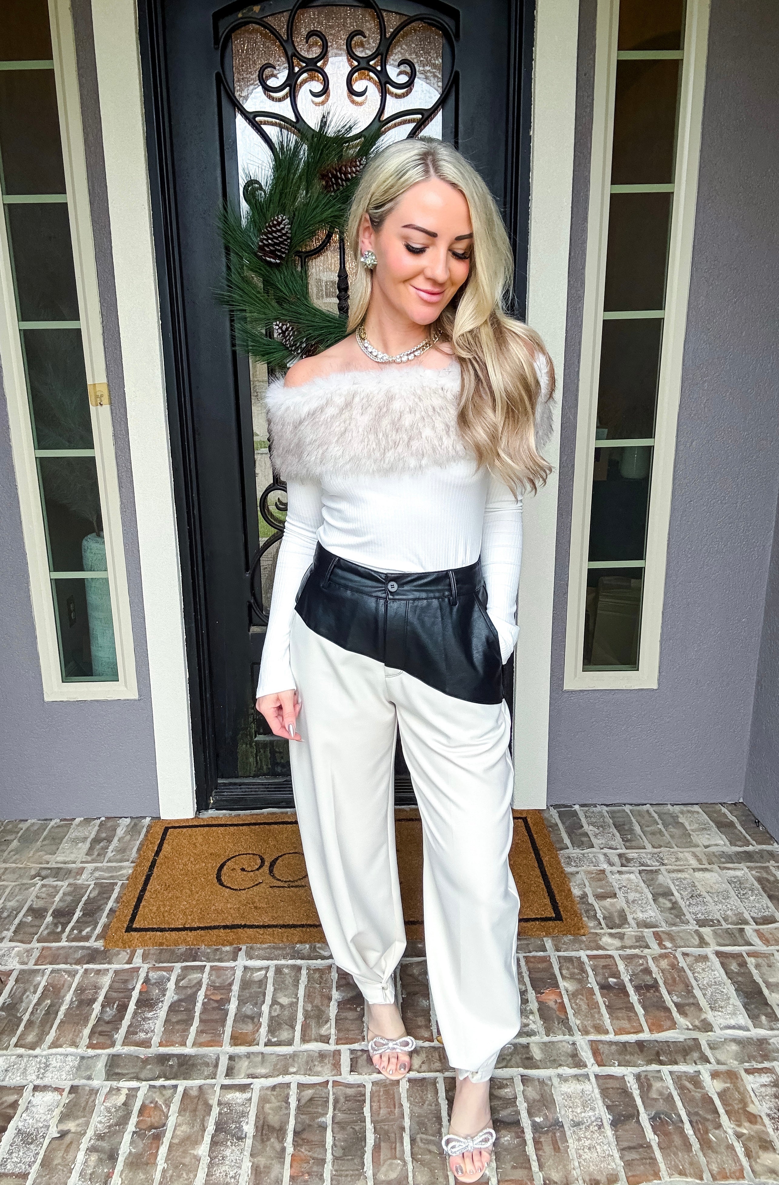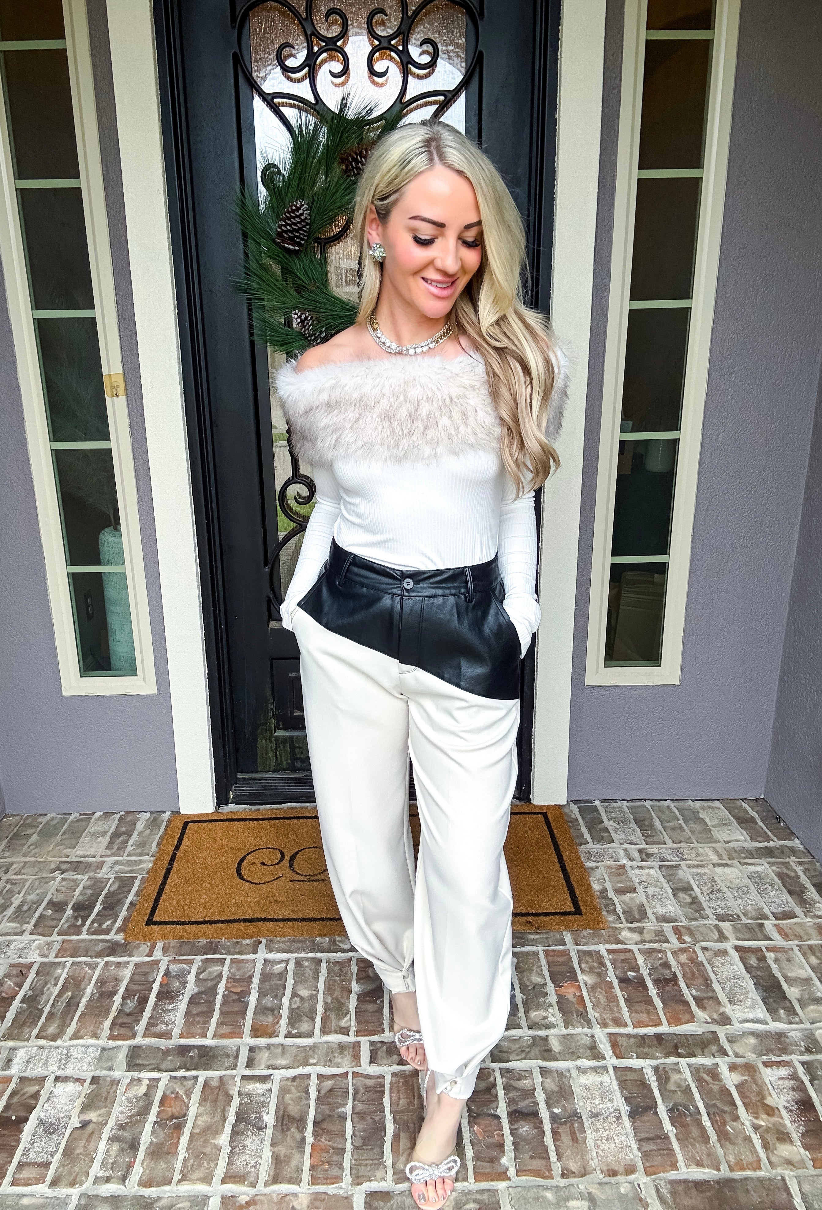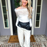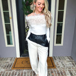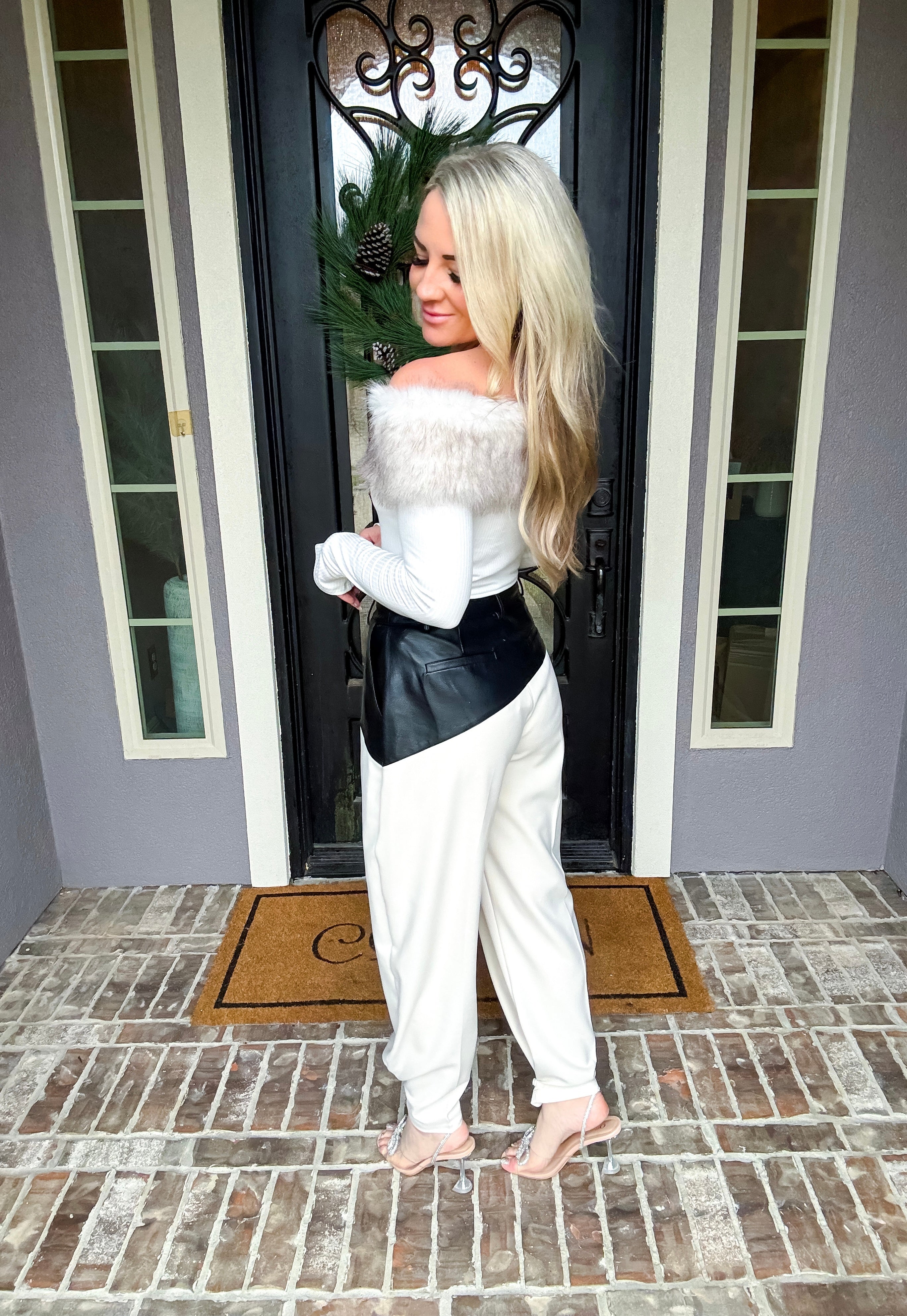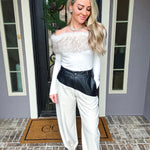 Office Rebel Leather Detail Trousers offer versatile styling in one sophisticated piece. Premium vegan leather trim at the waistband adds an edgy, polished touch, while functional buttons at the hem let you transition effortlessly between a sleek jogger silhouette and a flowing wide-leg trouser. Perfect for professionals who refuse to compromise on style or comfort, these trousers deliver the flexibility to dress up or down without changing outfits.