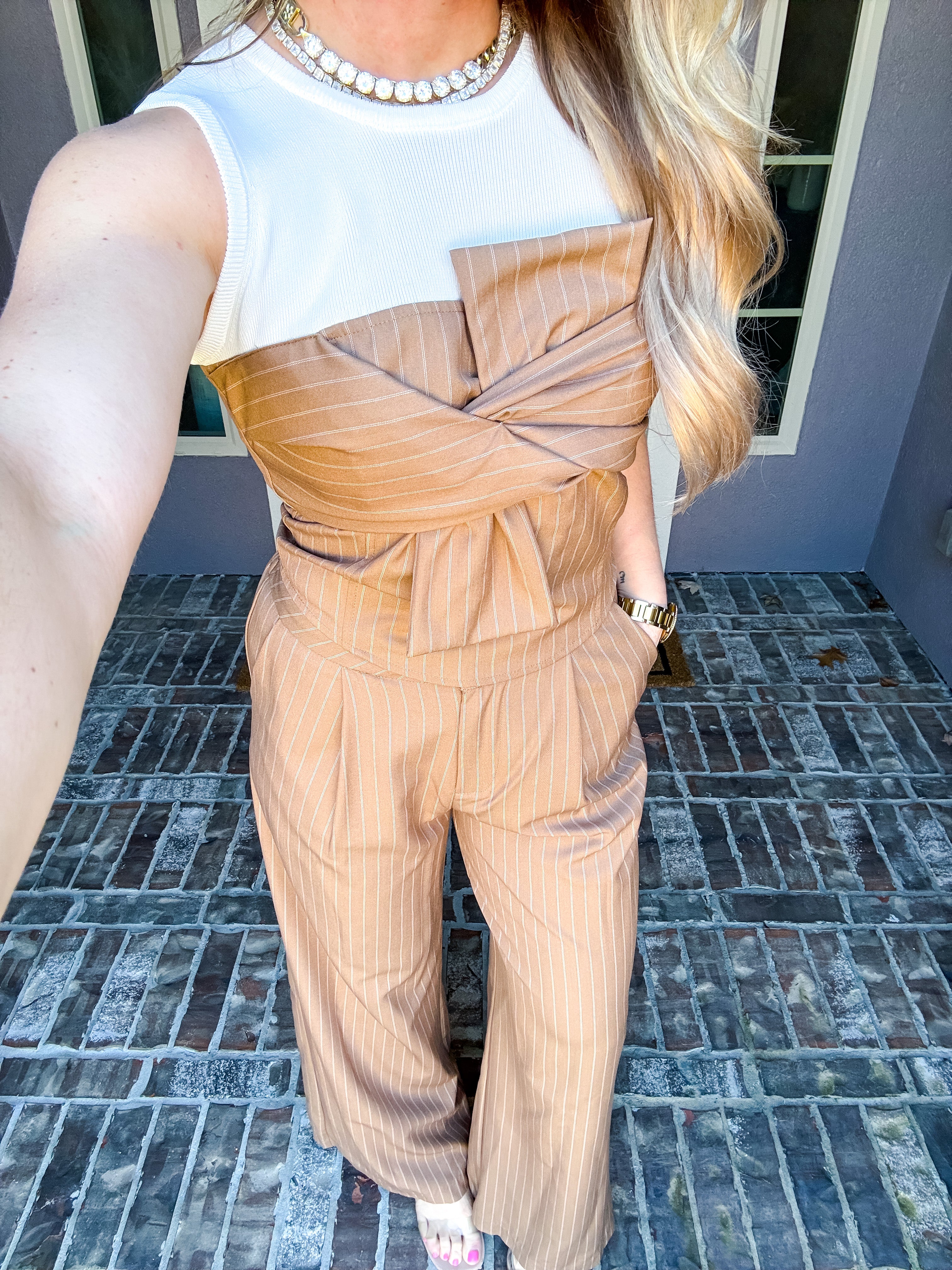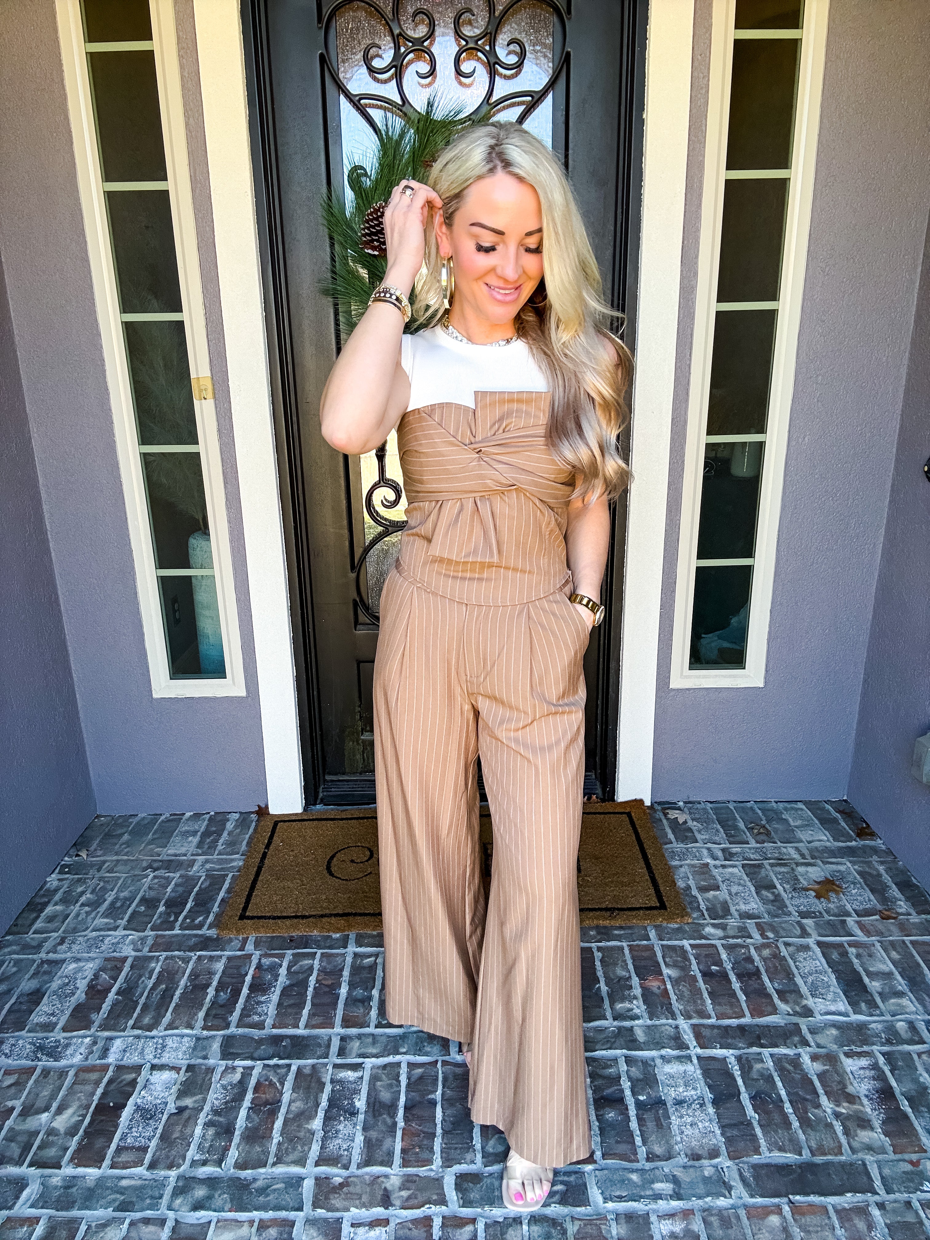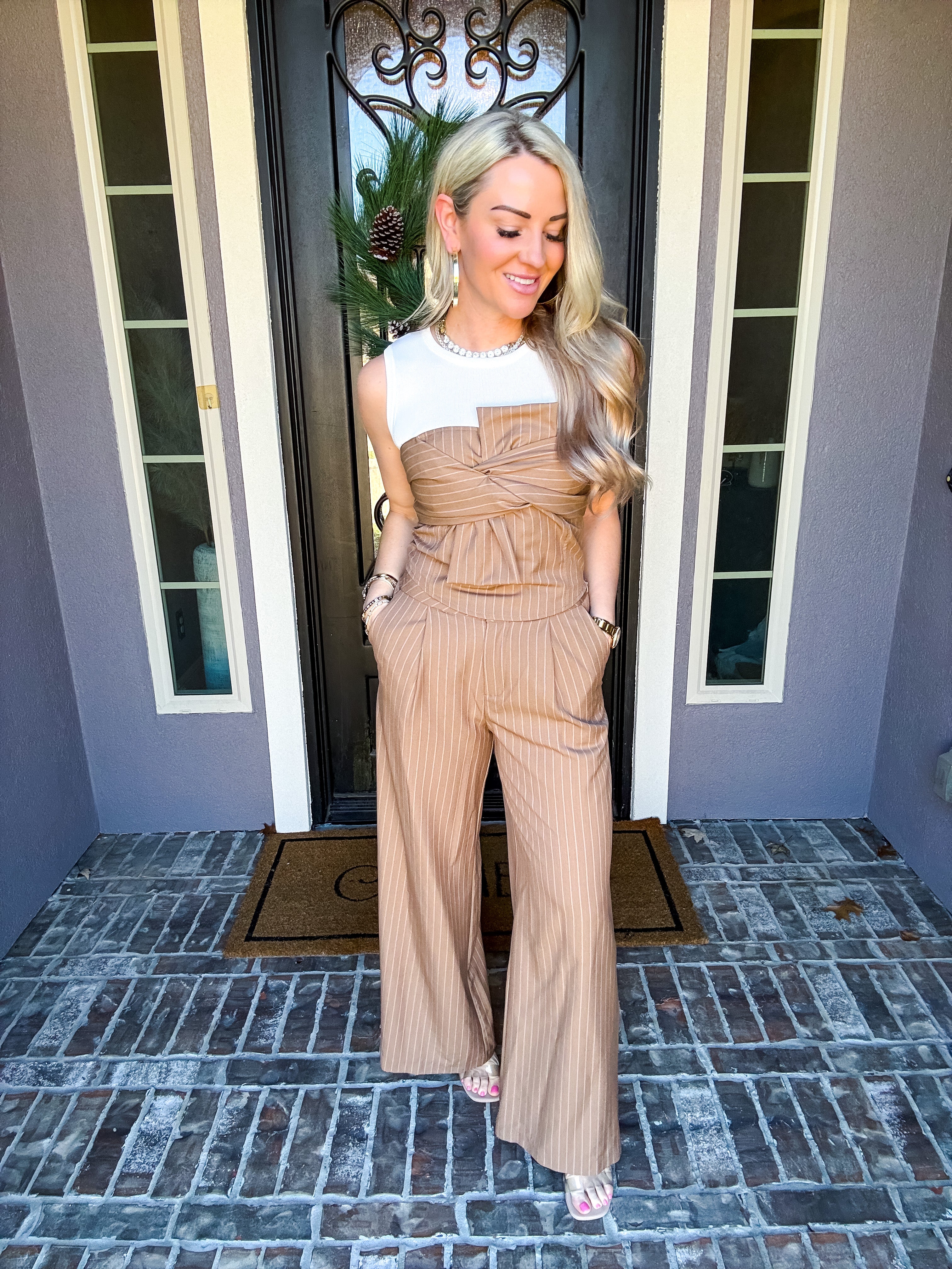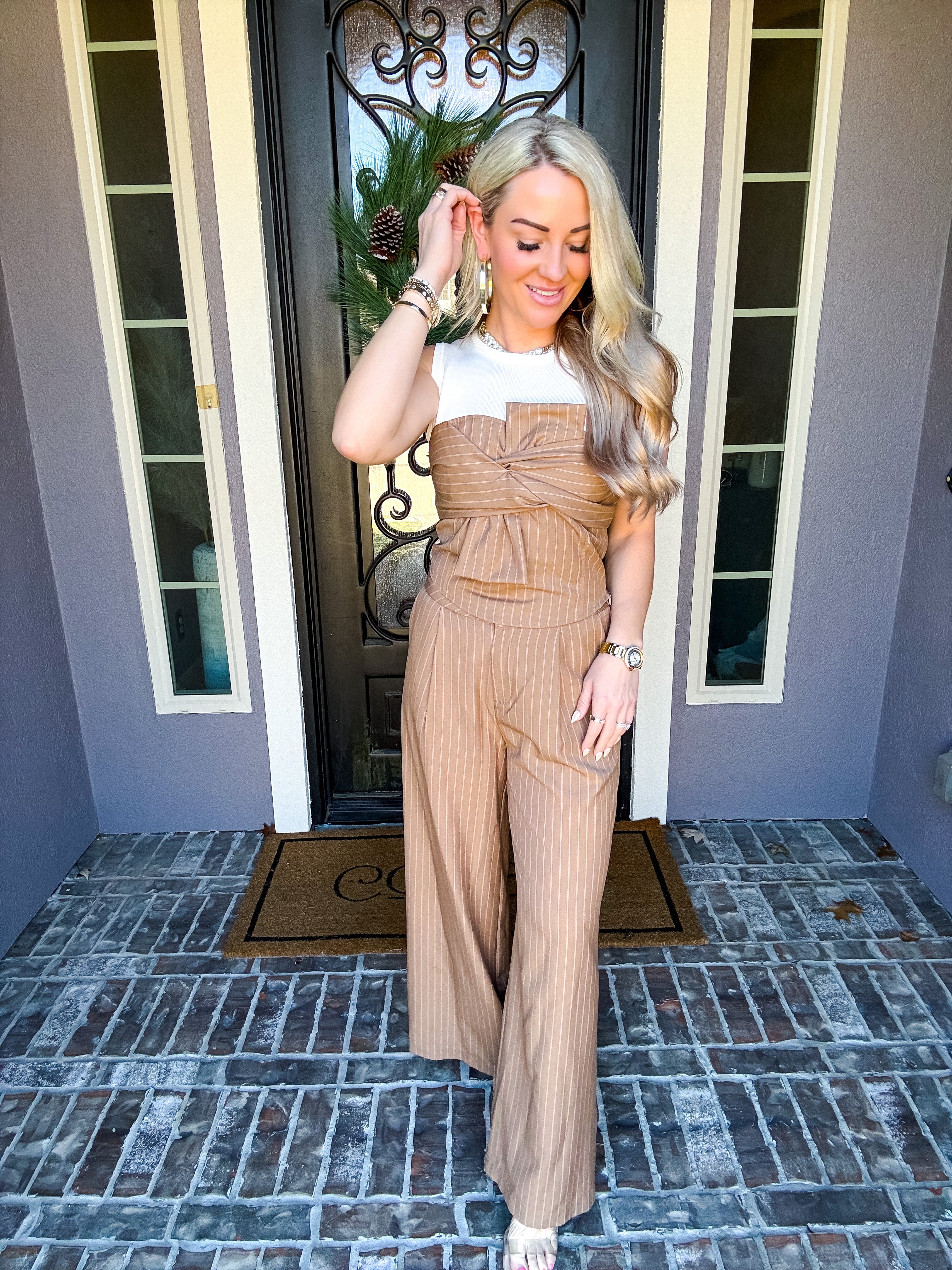 Pair with the Double Take Bow Pinstripe Top for the complete look!