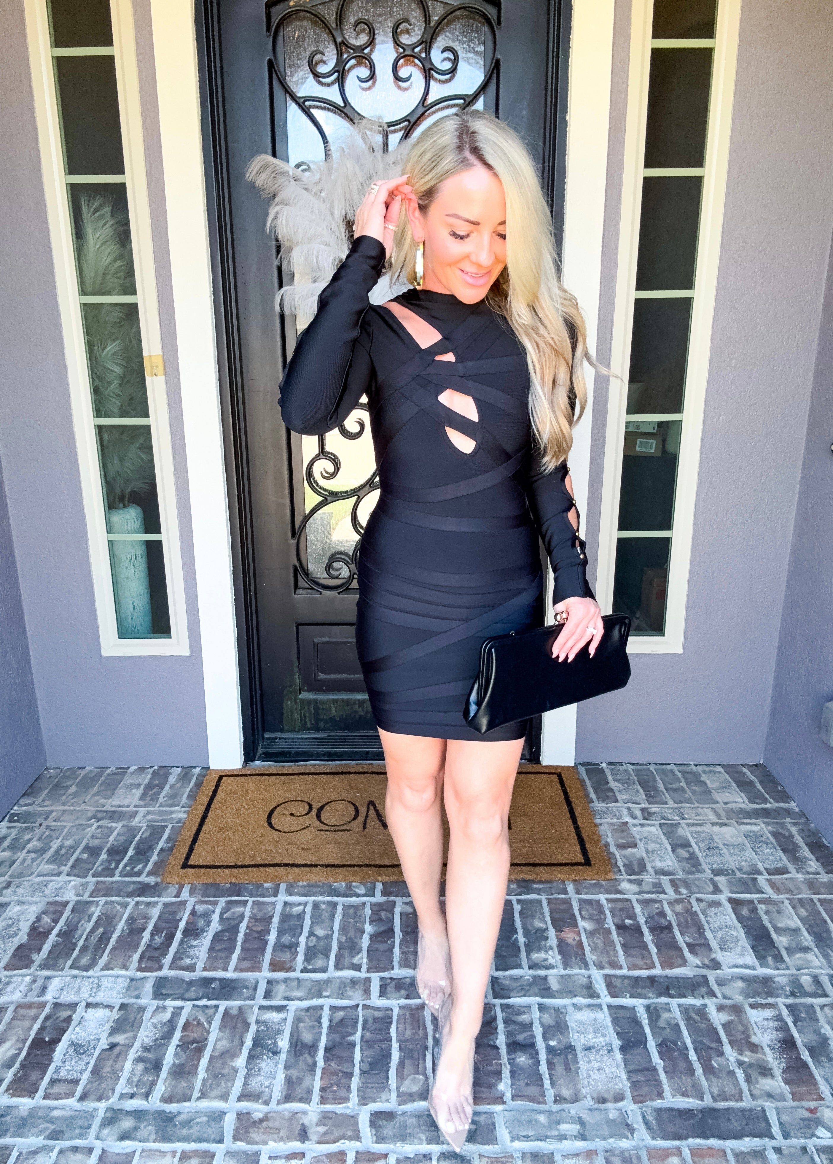 The Onyx Twilight Bodycon Dress expertly sculpts your silhouette with its figure-enhancing fit. Strategically placed cutouts accentuate your curves, adding a modern edge to this elegant piece. Finished with an exposed gold zipper at the back, it offers both secure closure and a touch of refined detail. Perfect for making a confident statement at any event.