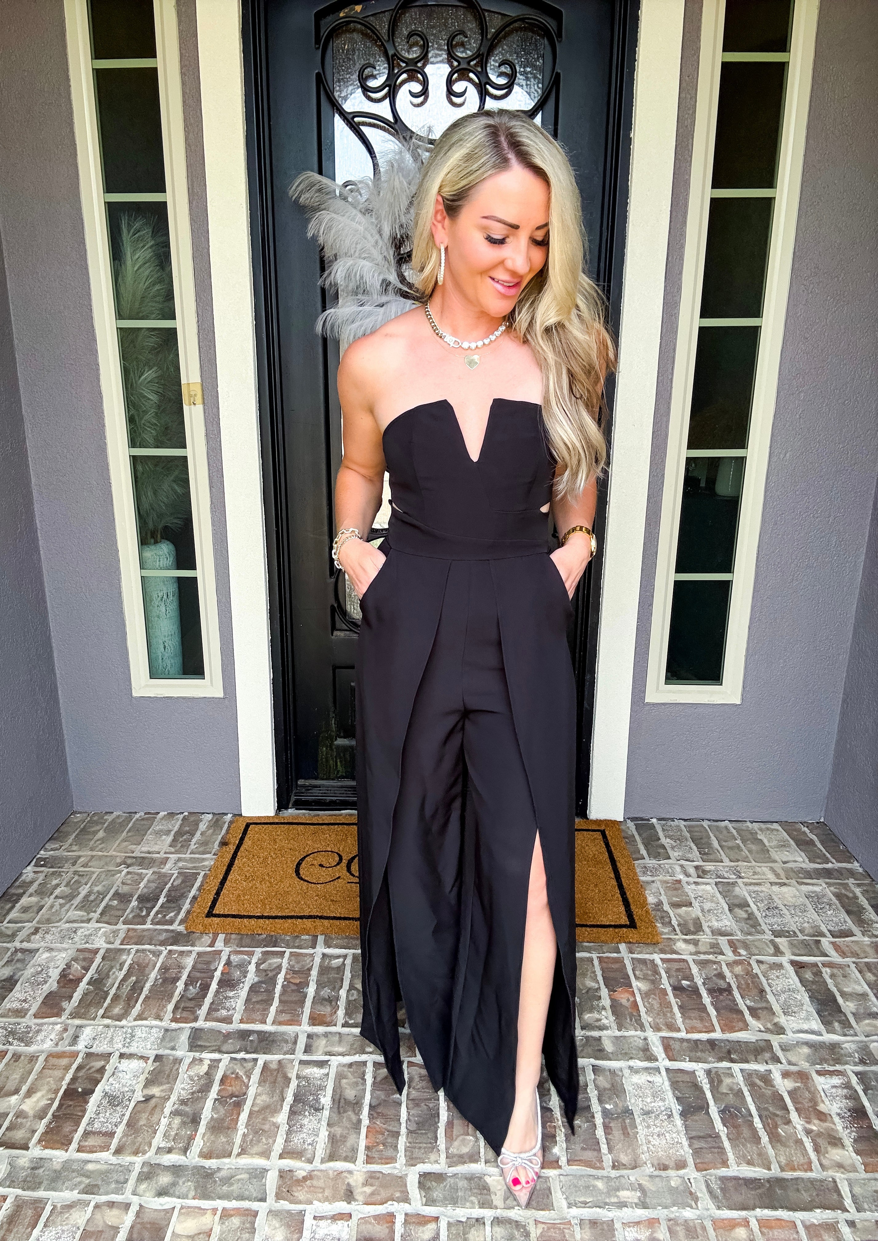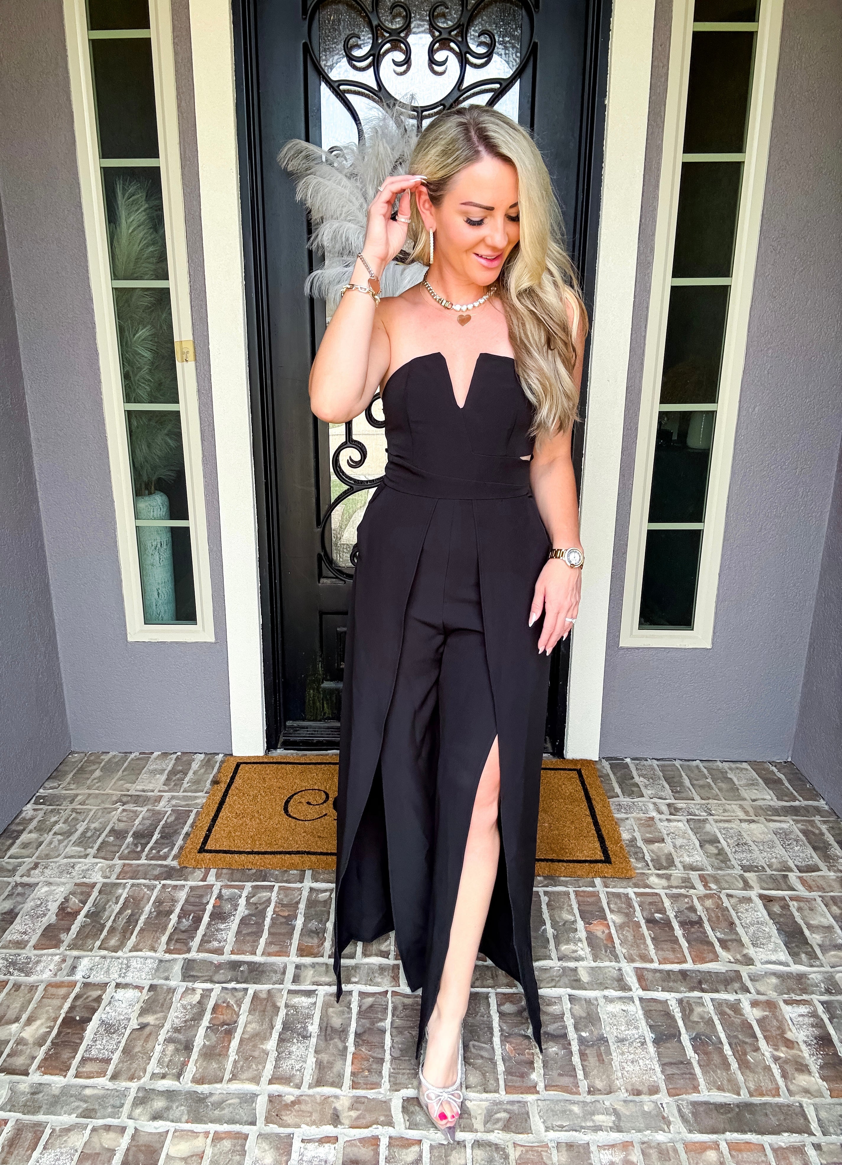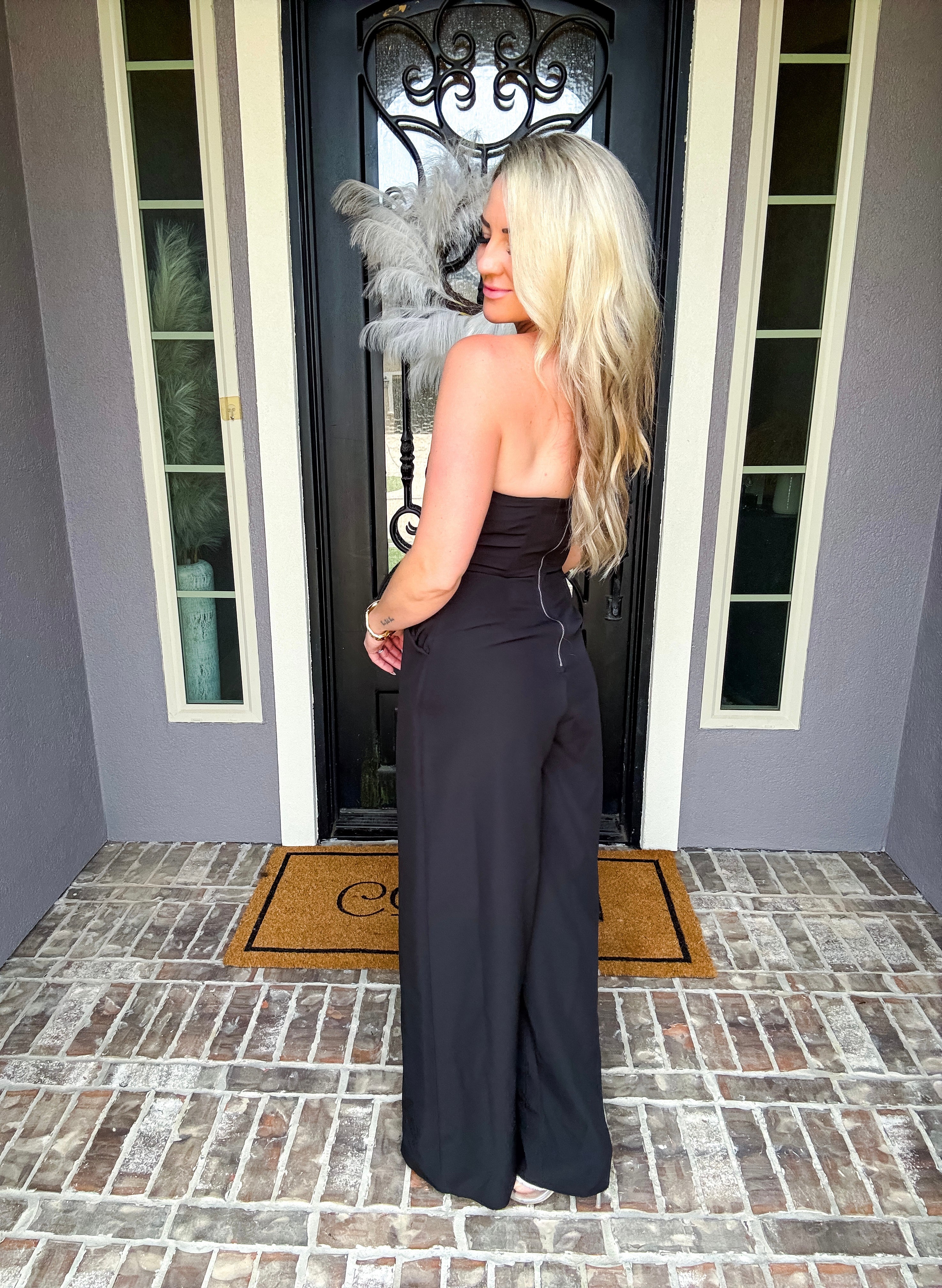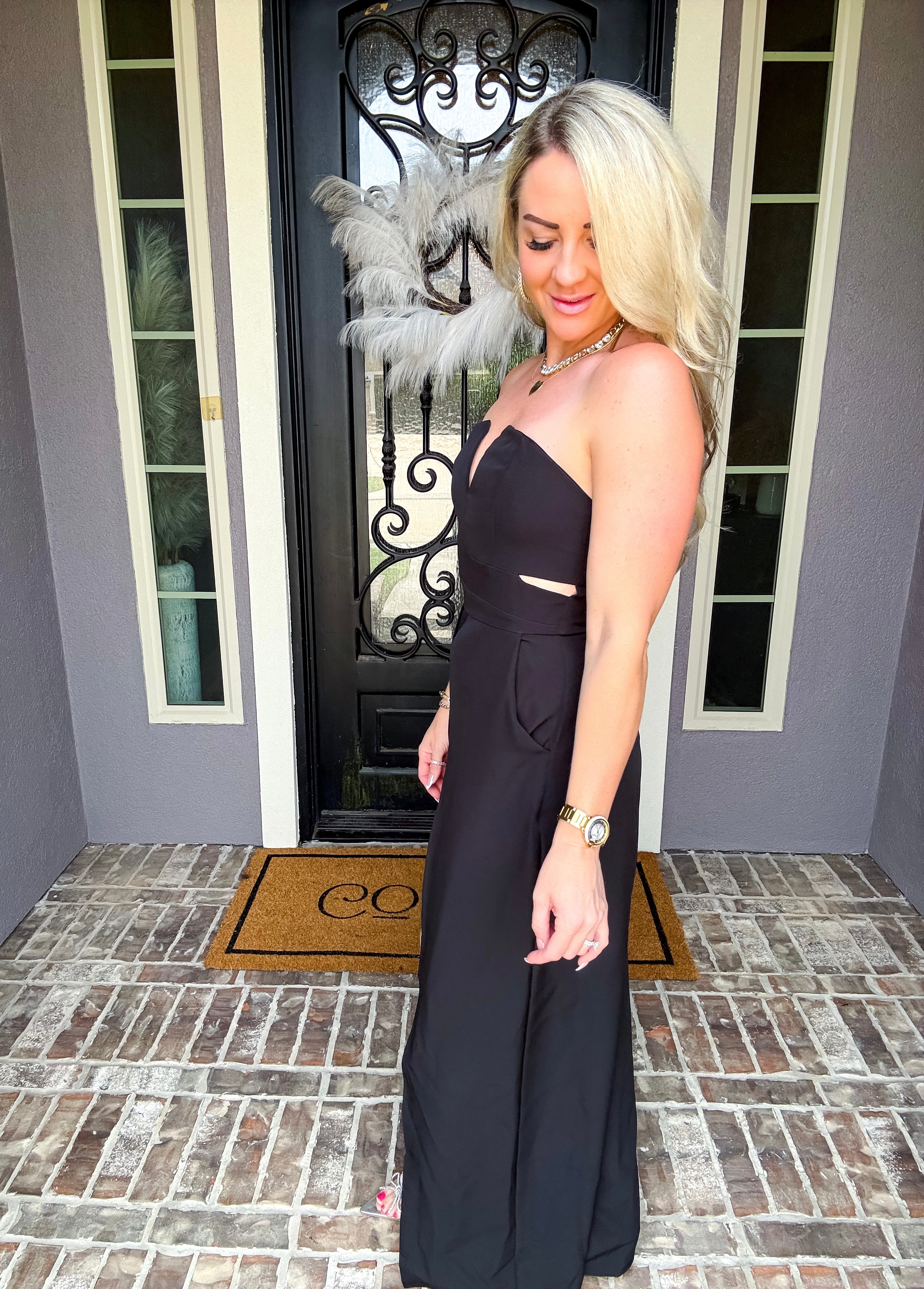 Elevate your wardrobe with the Raise A Toast Jumpsuit, expertly designed to combine style and functionality. This stunning piece features subtle cutout details at each side and front slits that gracefully reveal your legs with every step. Crafted without stretch and secured by a back zipper, it offers a structured fit that flatters your silhouette. Practicality meets elegance with convenient pockets, making this jumpsuit perfect for both day and evening occasions.