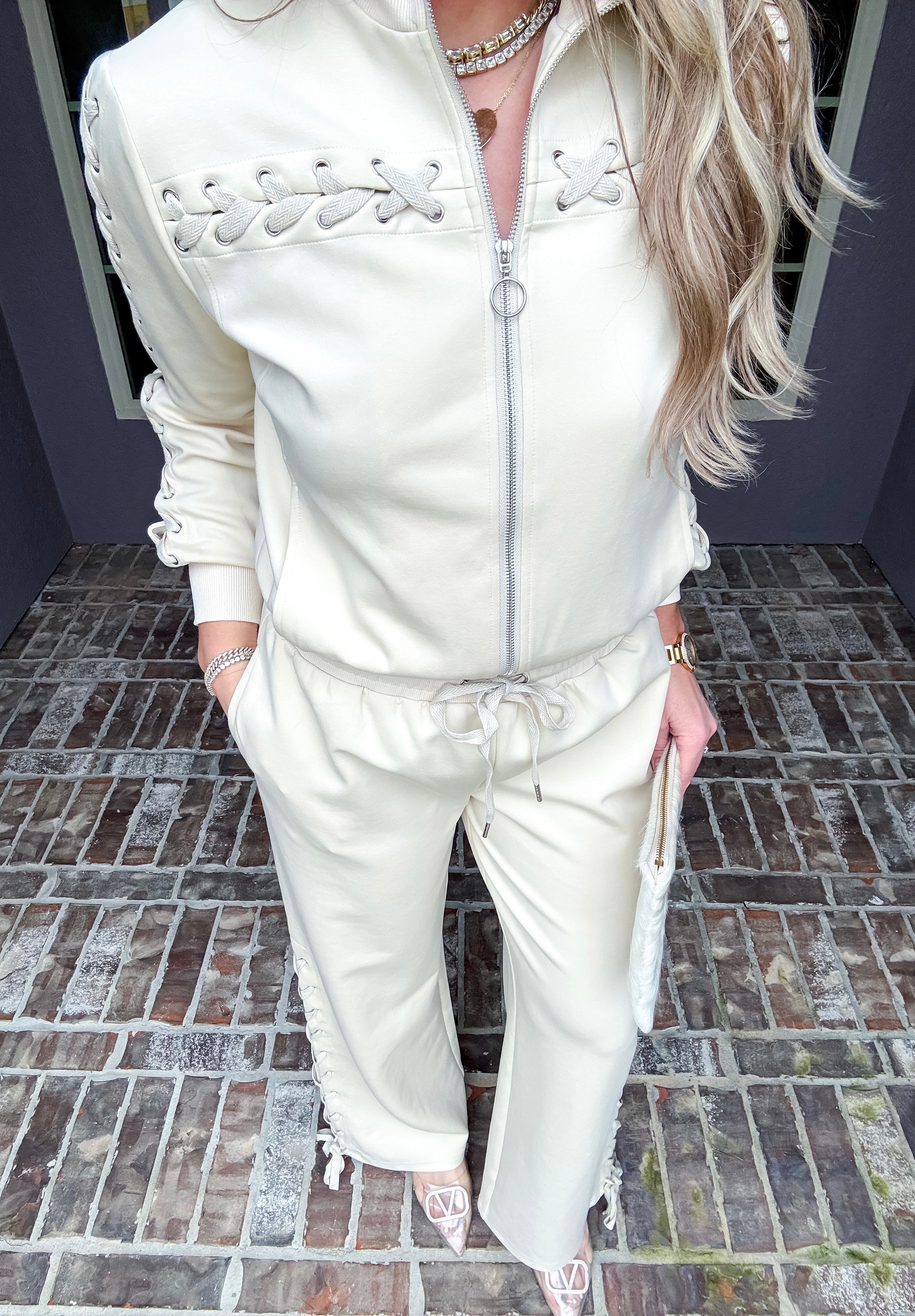 Elevate your loungewear game with these Chill Couture Lace-up Pants, where comfort meets contemporary style. Crafted for all-day ease, these pants feature a drawstring waist that lets you customize your fit perfectly. The signature lace-up detail at the ankles adds an unexpected fashion-forward touch, transforming casual comfort into a polished look. Whether you're working from home or stepping out for errands, these versatile pants deliver the cozy feel you crave without compromising on style.
