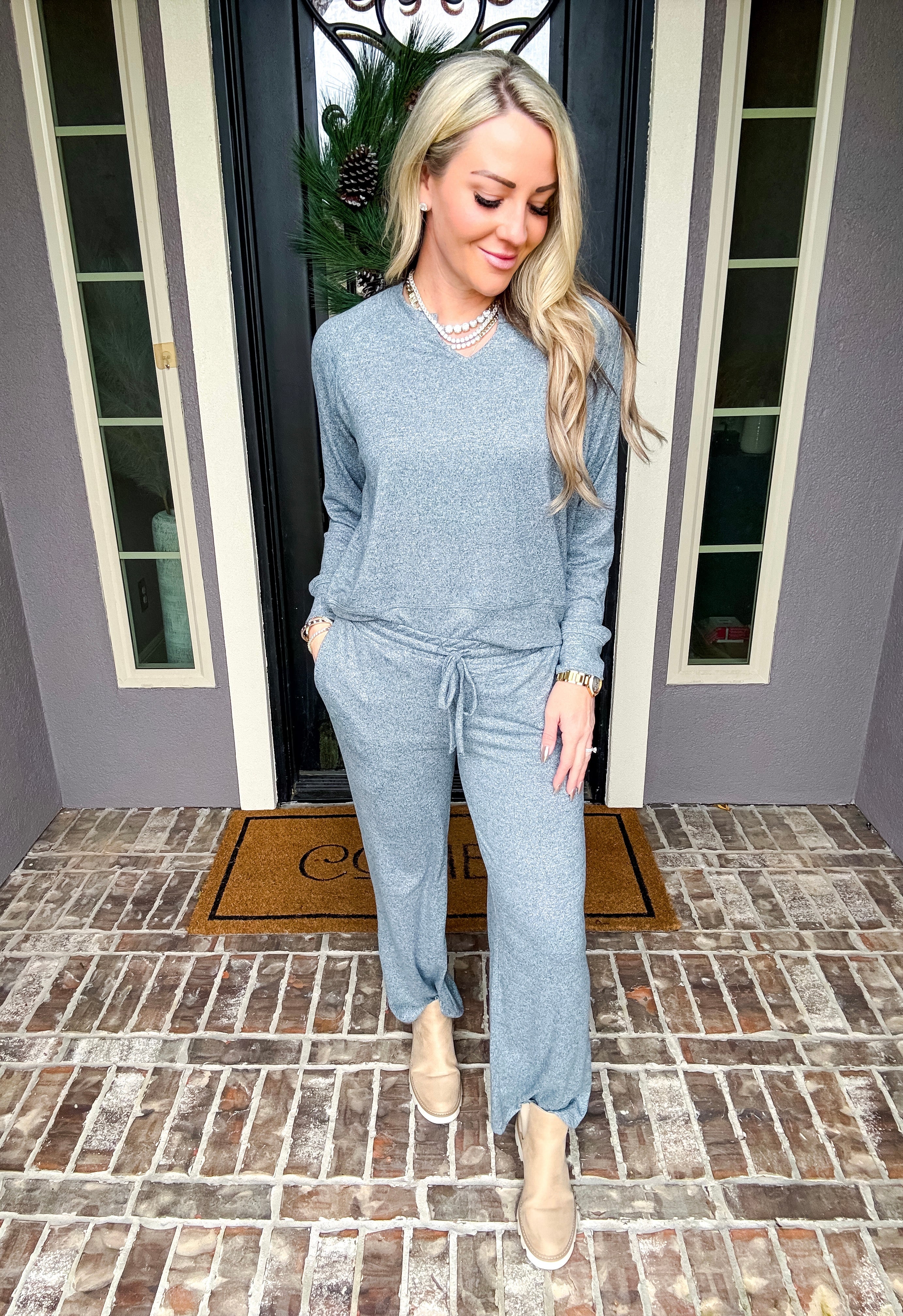 Sink into unparalleled comfort with this Dream Girl Soft Lounge Top in Charcoal. Crafted from an incredibly soft fabric, it's the versatile essential that transitions effortlessly from relaxed lounging to running errands. Layer it with the matching Dream Girl lounge pants for a coordinated set, or elevate the look by pairing with jeans for an understated, polished casual style. This is the go-to top that delivers both comfort and adaptability—a wardrobe staple you'll reach for again and again.