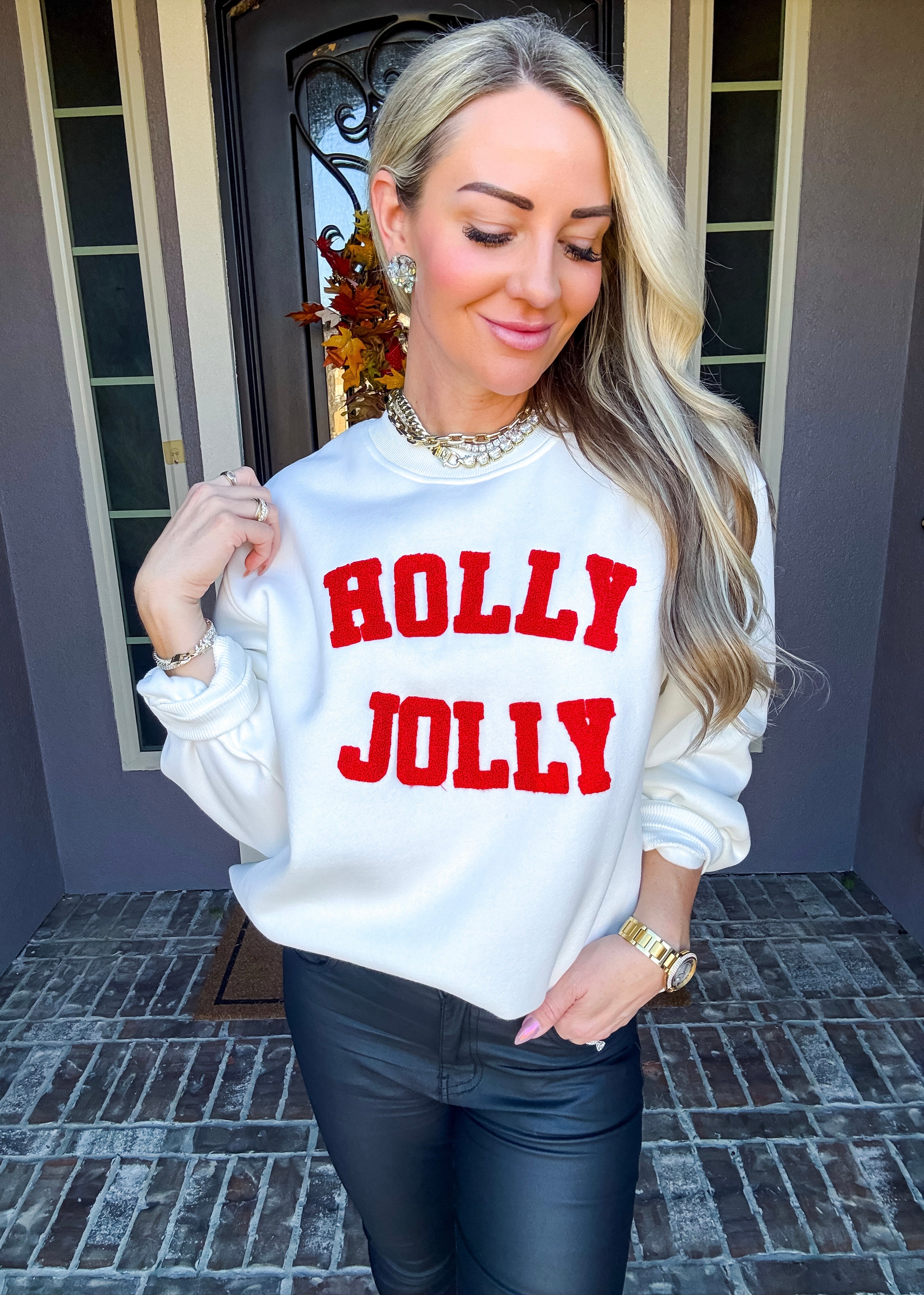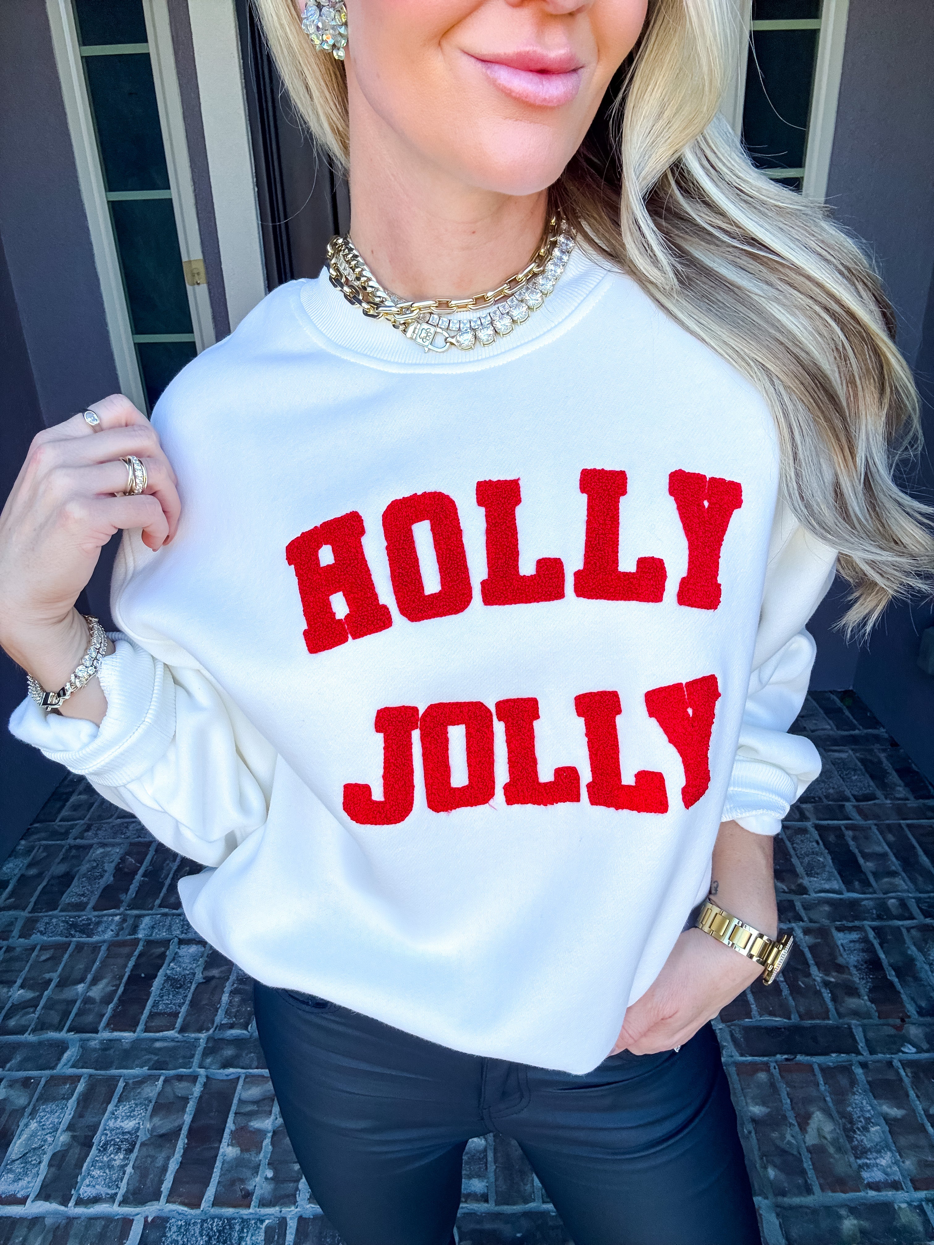 Embrace the season in this stunning white sweatshirt, elevated by dimensional holly jolly lettering that catches the eye. Crafted for comfort, it's the ideal layering piece for holiday gatherings, casual outings, or cozy nights in. The raised text detail adds visual interest while maintaining a sophisticated aesthetic. Perfect for spreading festive cheer without sacrificing style or comfort.