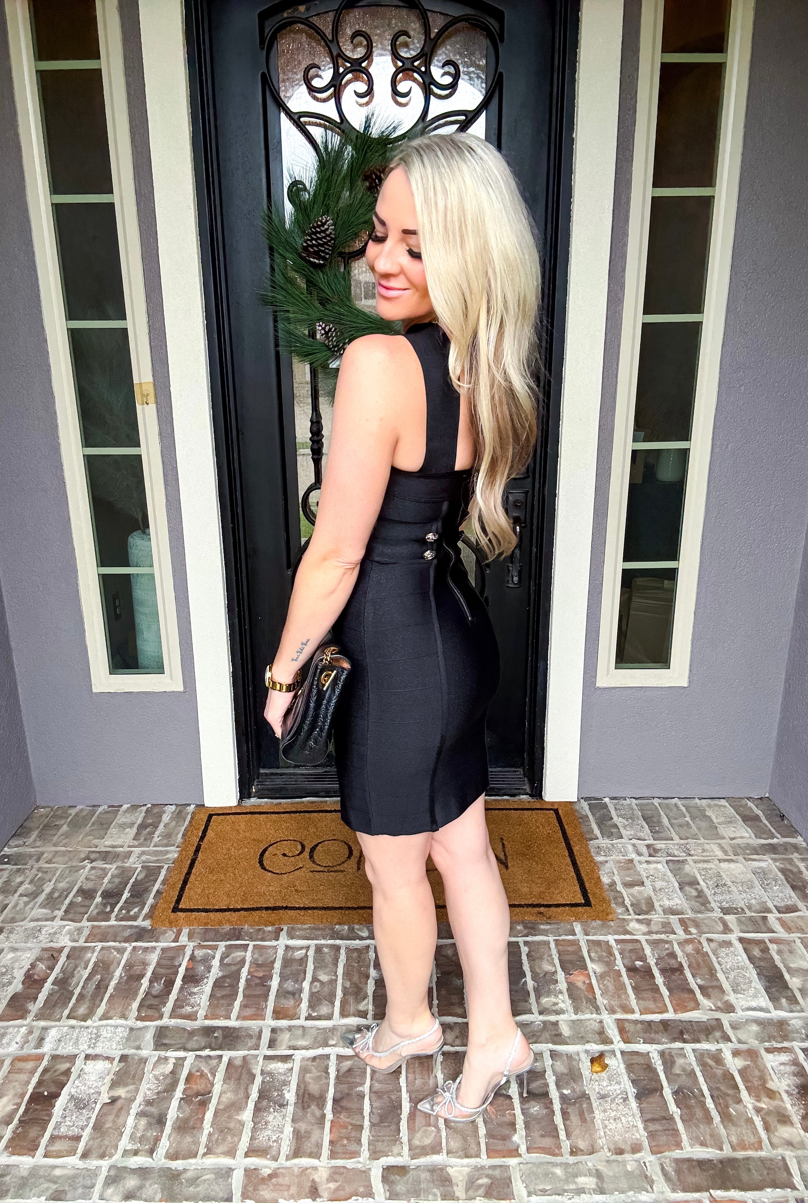 The Milan After Dark Bandage Dress combines sleek sophistication with strategic shaping. Crafted from premium stretchy material, this bodycon silhouette provides Spanx-like compression that smooths and flatters your figure while maintaining comfort throughout the night. A striking back zip closure pairs with intricate front detailing that commands attention, making this dress perfect for upscale evenings and special occasions. The engineered fit ensures you look polished and confident from every angle.