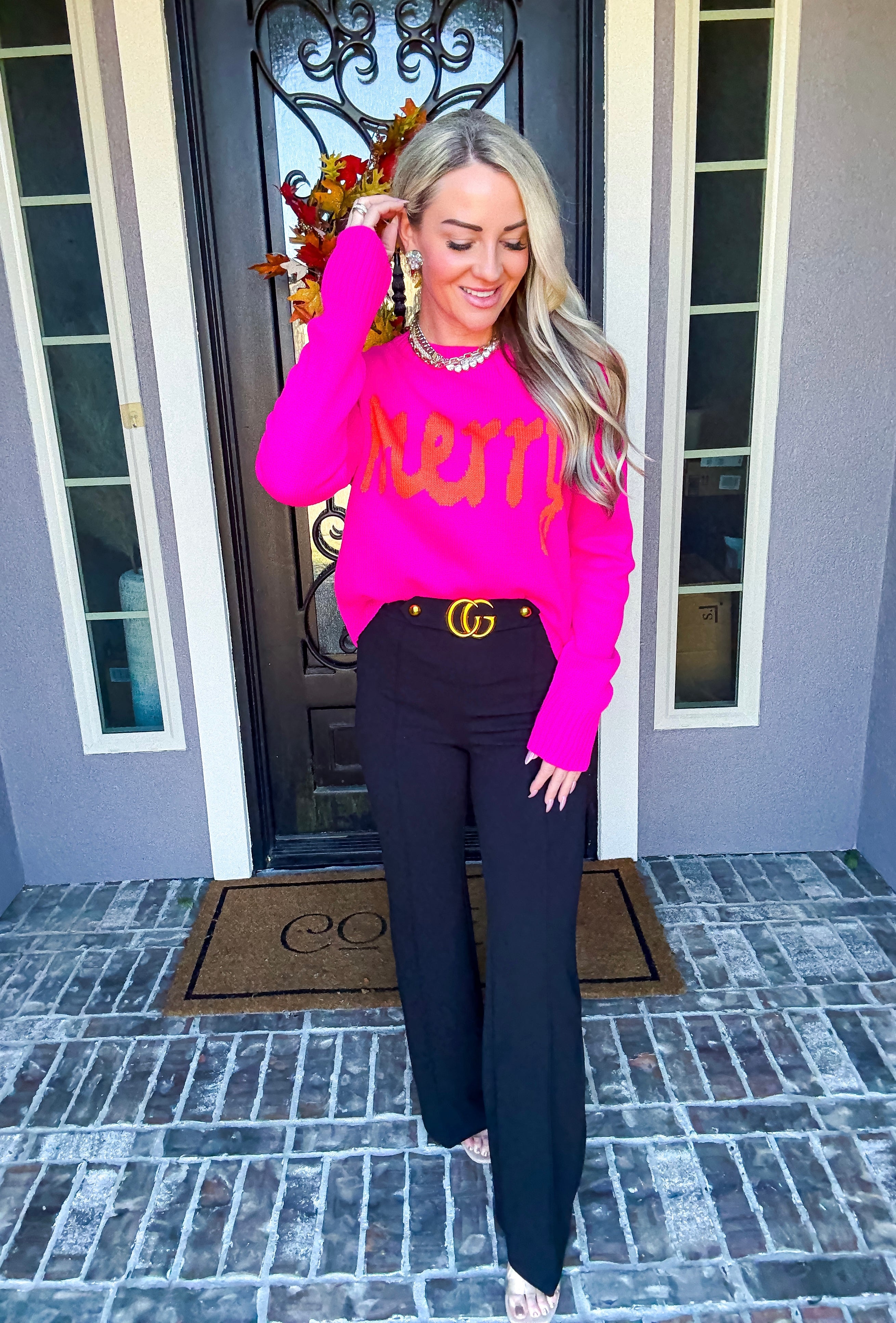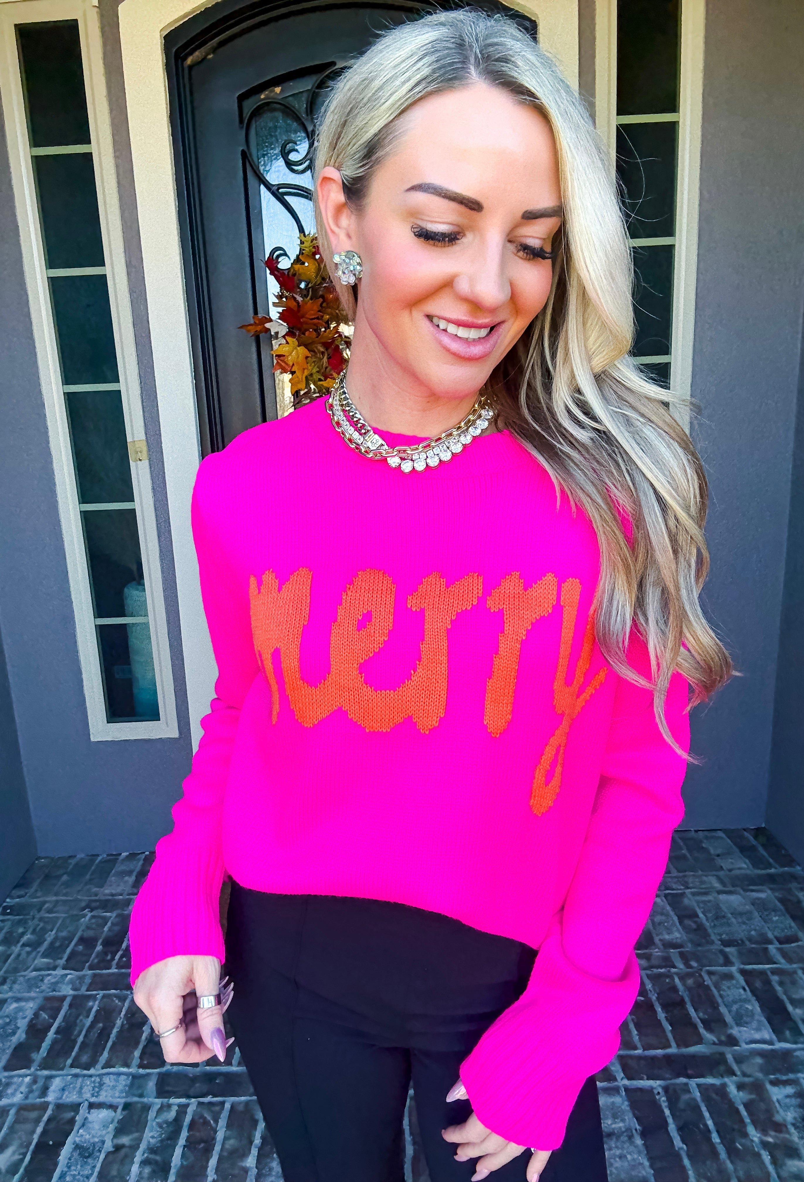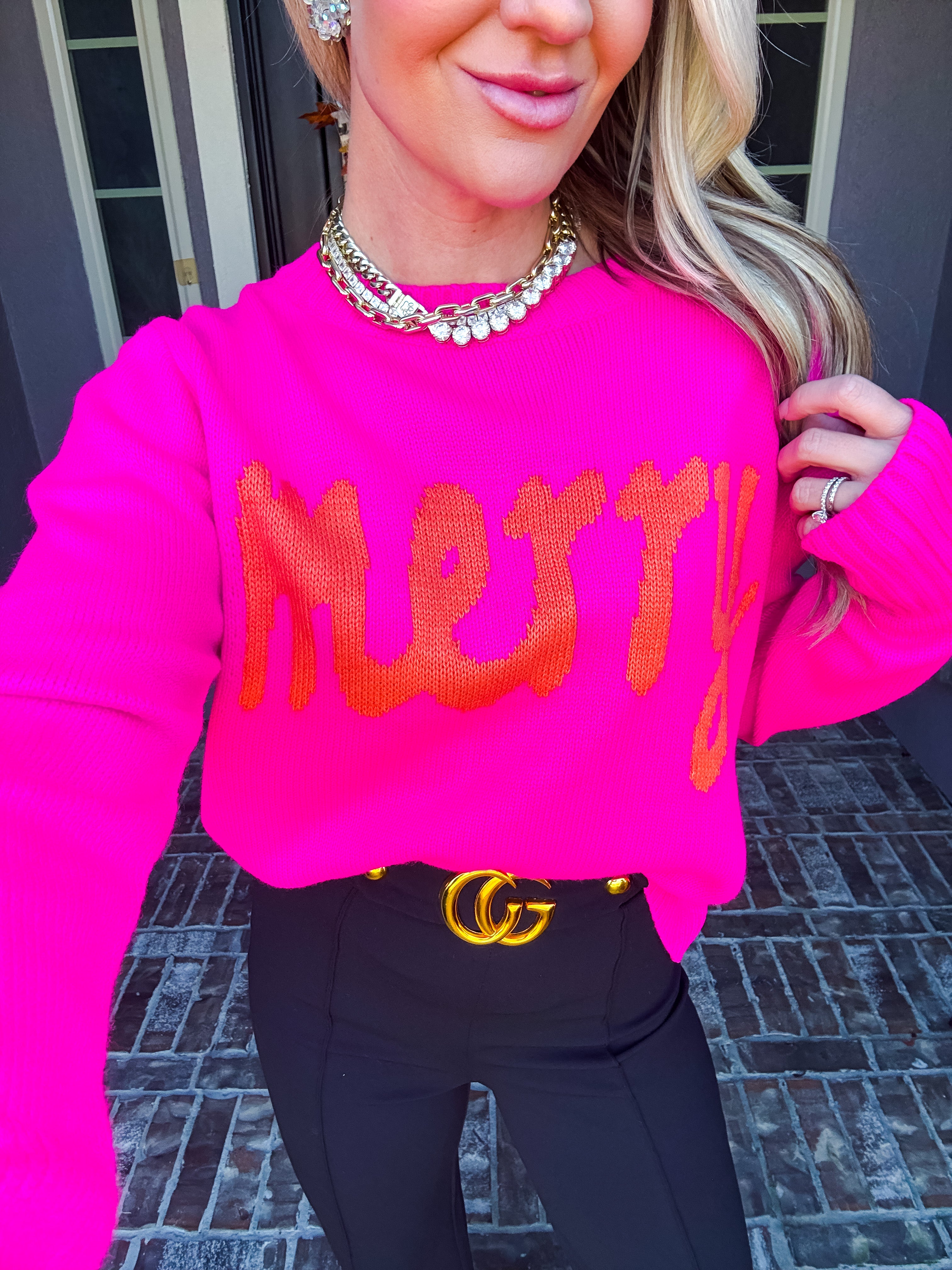 Celebrate the season in style with this charming pink merry sweater, a customer favorite that combines festive spirit with everyday comfort. The rich pink knit serves as the perfect canvas for eye-catching orange lettering that adds a playful, modern twist to traditional holiday wear. Whether you're heading to a seasonal gathering or keeping things cozy at home, this sweater delivers warmth and personality in one adorable package. A bestseller for good reason—it's the effortless way to spread cheer while looking undeniably cute.