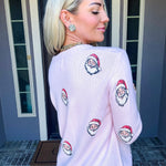 Embrace holiday cheer with this delightful Santa Sweater in soft pink. Adorned with charming Santa heads scattered throughout, this festive knit brings playful personality to your seasonal wardrobe. Perfect for holiday gatherings, casual celebrations, or cozy winter days, it combines comfort with whimsical style. The cheerful design captures the spirit of the season while the gentle pink hue offers a modern twist on traditional holiday wear. An ideal choice for anyone seeking to add warmth and festive flair to their collection.