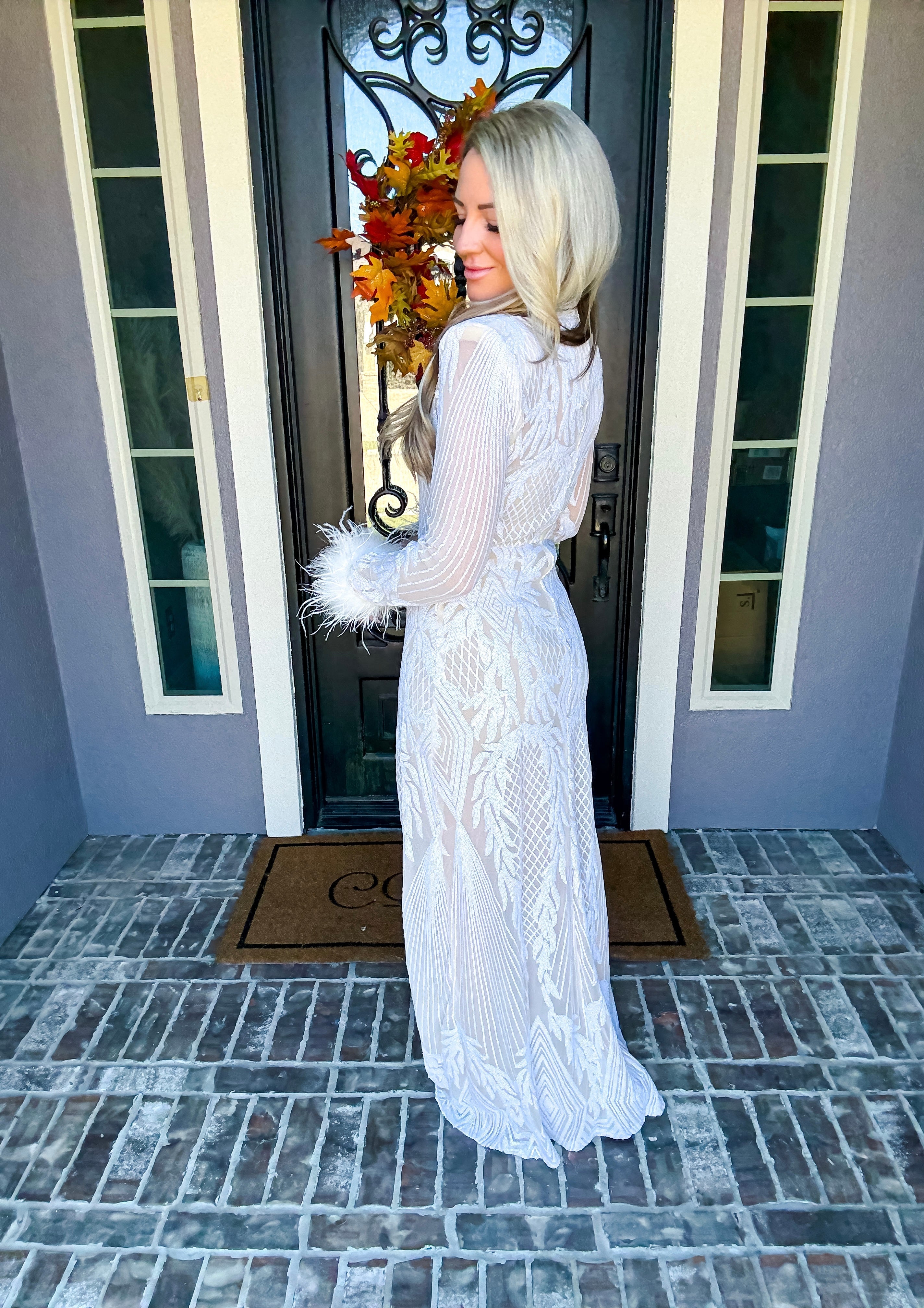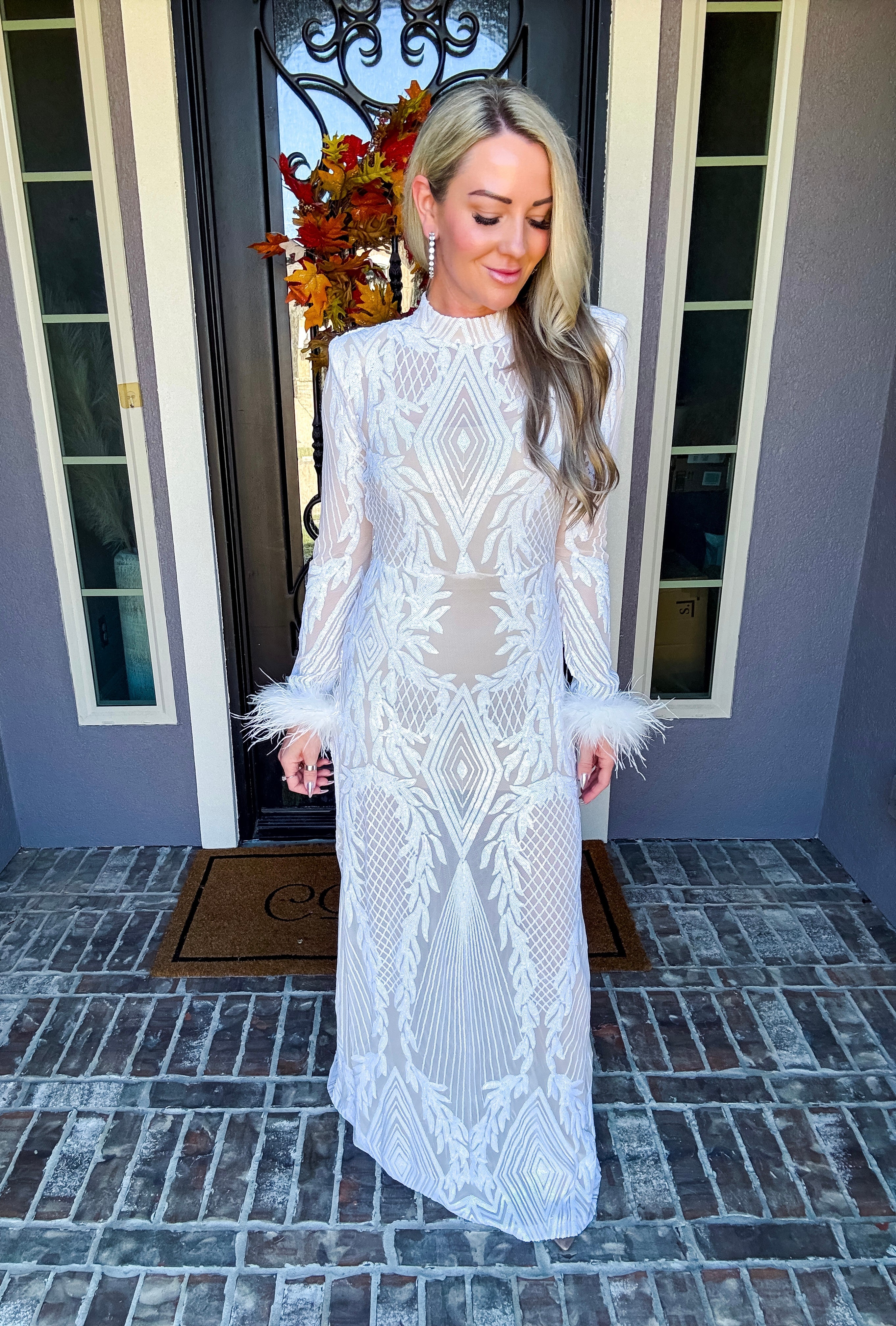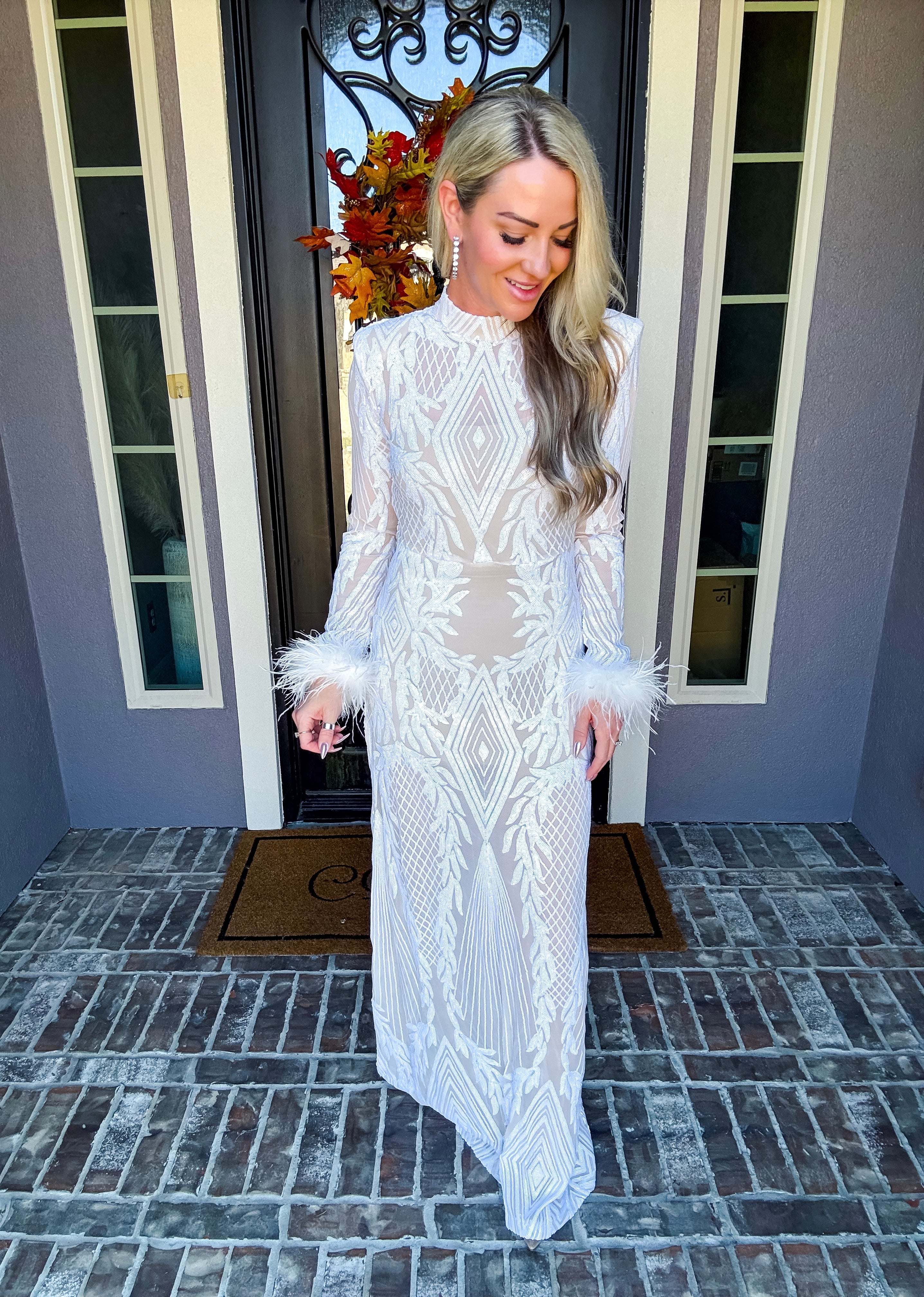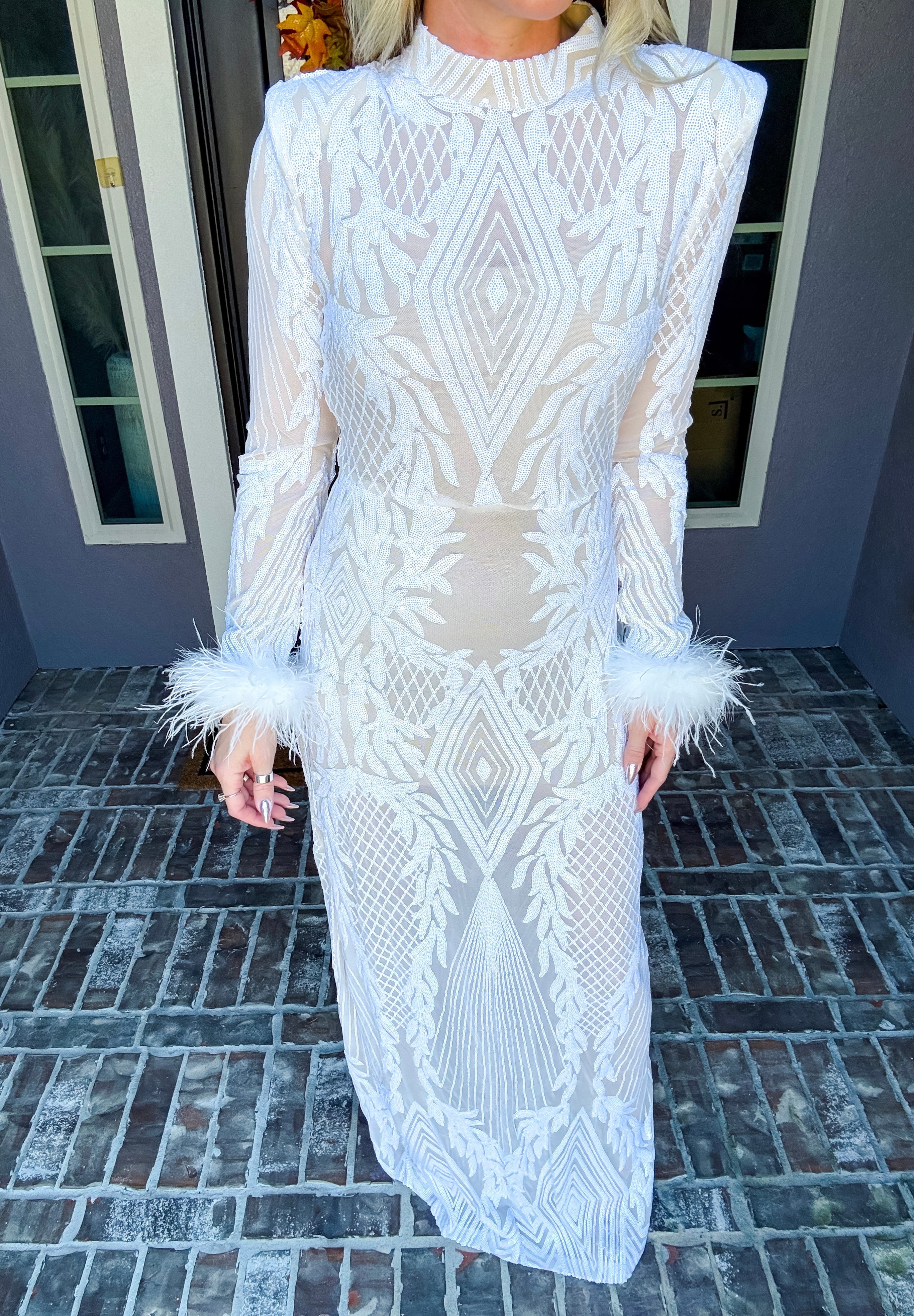 Elevate your evening look with the Snow Princess Sequin Dress, designed with shimmering sequins throughout and luxurious fur cuffs for a touch of elegance. Its back zipper ensures a sleek fit, while the stretchy fabric offers comfortable movement. The dress’s sheer material calls for a slip dress underneath, adding a subtle layer of sophistication. Perfect for special occasions where you want to stand out, this stunning piece truly sparkles in person beyond what photos can capture.