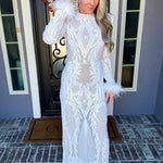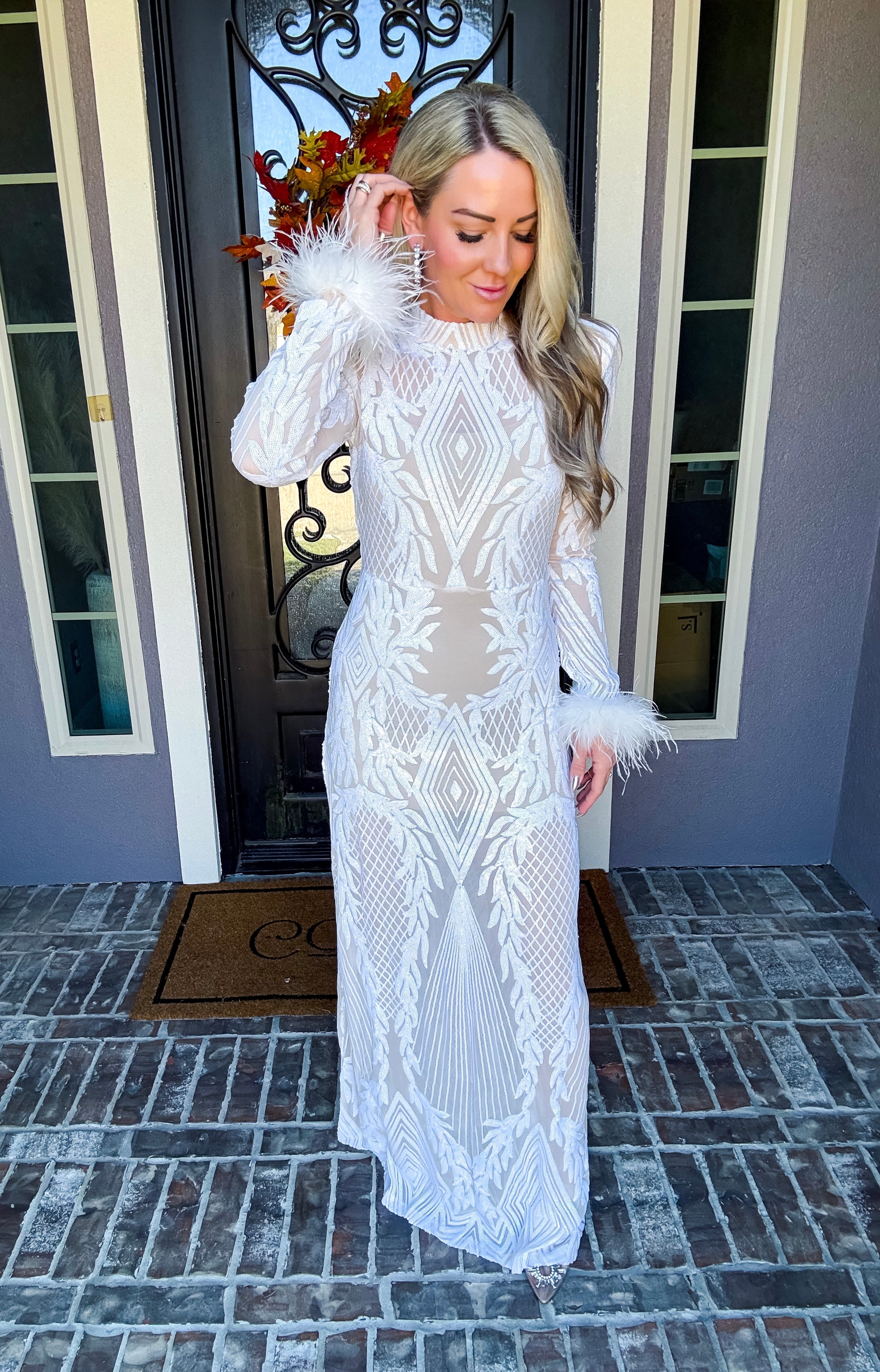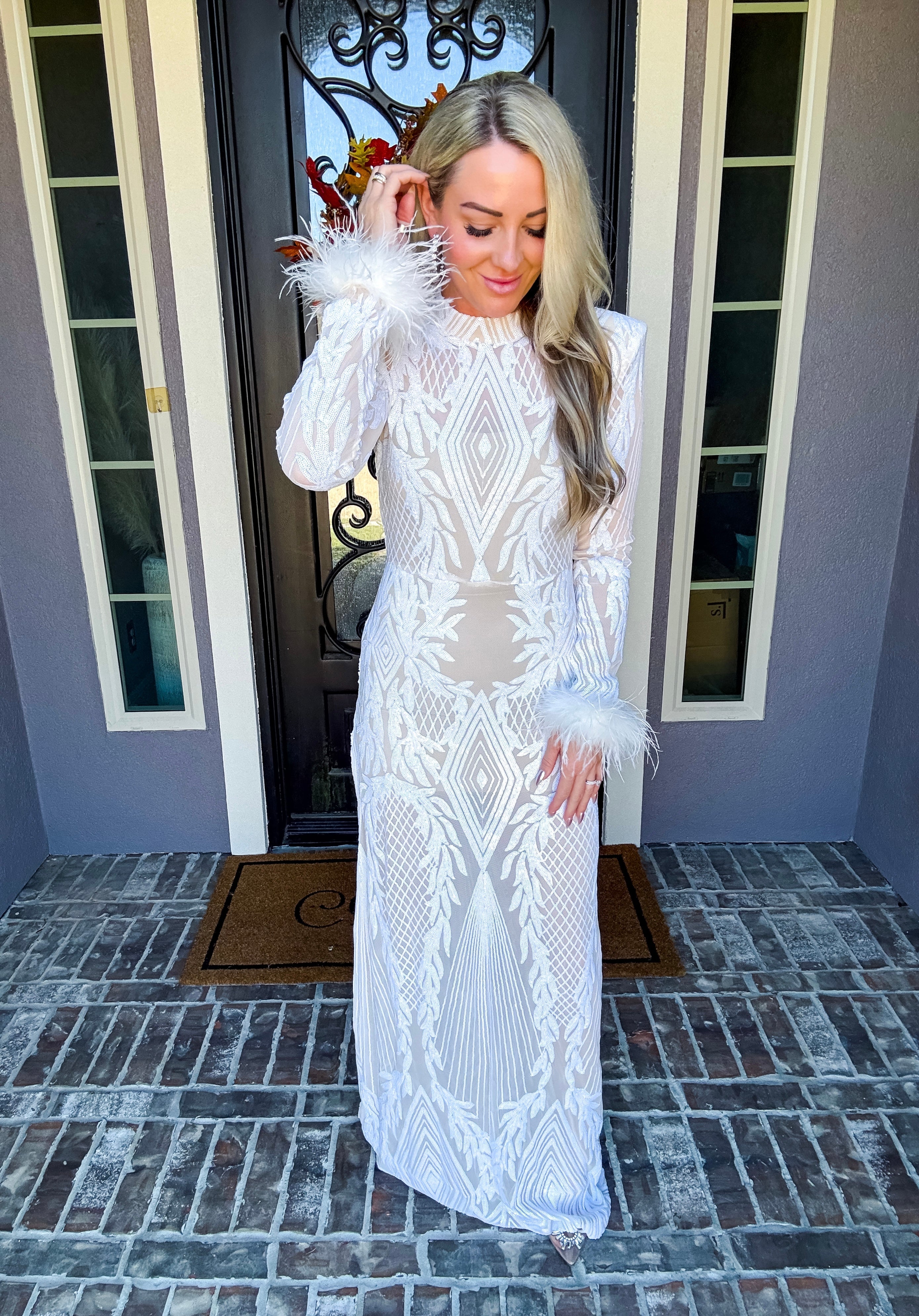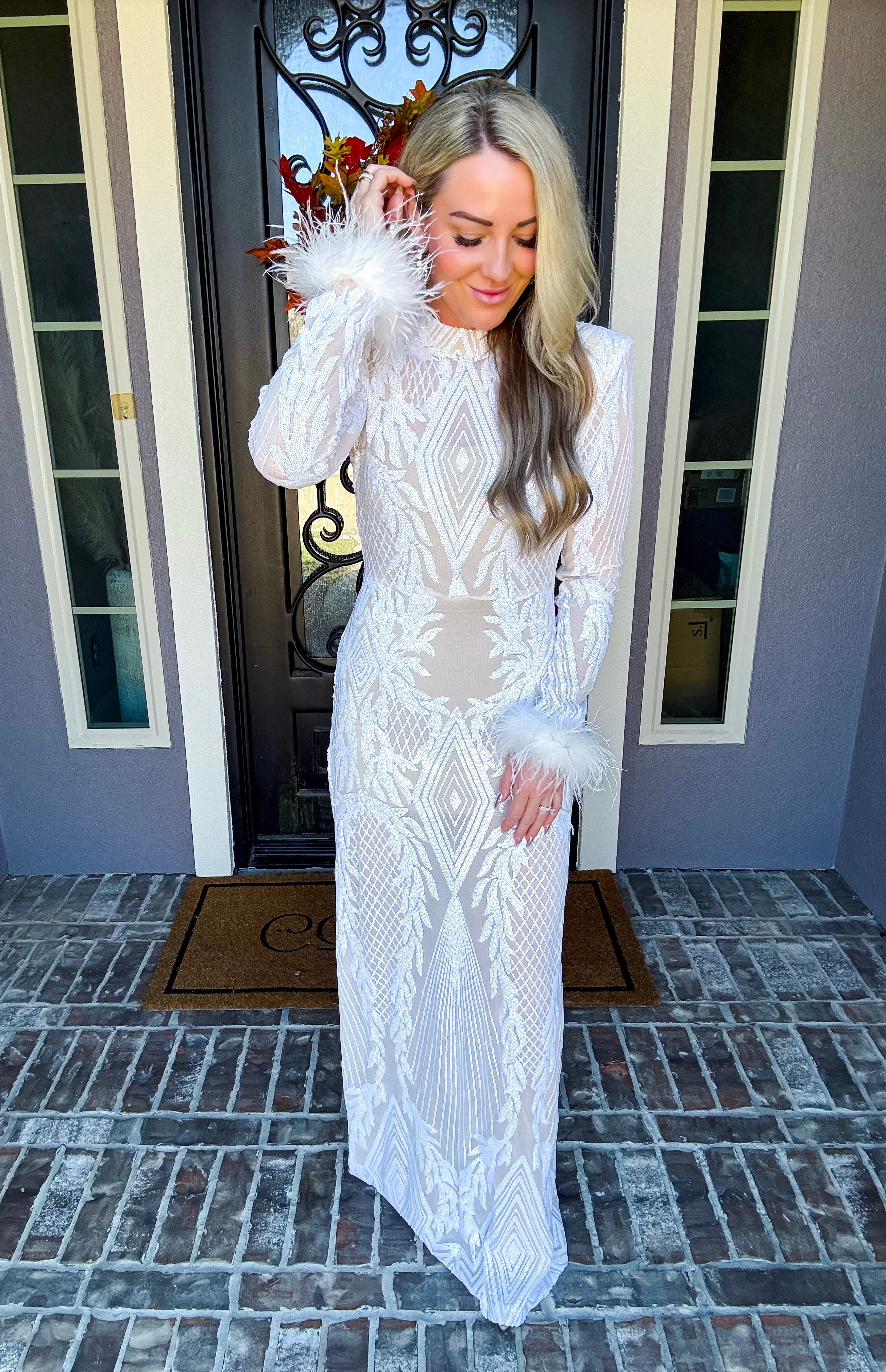 Elevate your evening look with the Snow Princess Sequin Dress, designed with shimmering sequins throughout and luxurious fur cuffs for a touch of elegance. Its back zipper ensures a sleek fit, while the stretchy fabric offers comfortable movement. The dress’s sheer material calls for a slip dress underneath, adding a subtle layer of sophistication. Perfect for special occasions where you want to stand out, this stunning piece truly sparkles in person beyond what photos can capture.