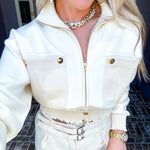 Experience unparalleled comfort and sophistication with the Polished Luxury Cream Jacket. Crafted for those who appreciate refined style, this jacket combines the softest fabric with elegant gold buttons and zippers, creating a look that is both timeless and distinguished. Perfect for elevating your wardrobe, it offers exceptional comfort without compromising on a high-class appearance.