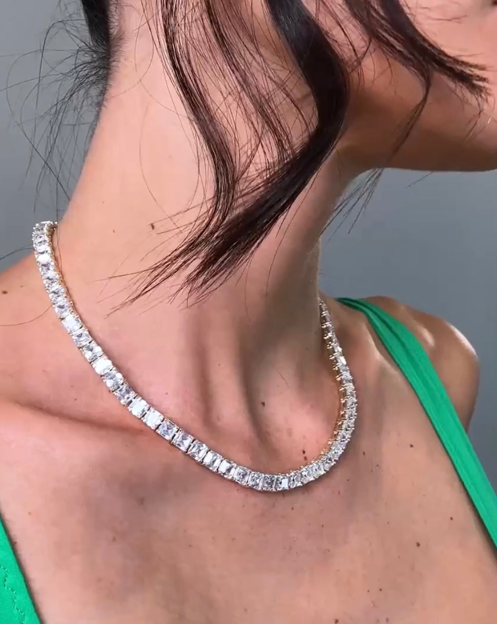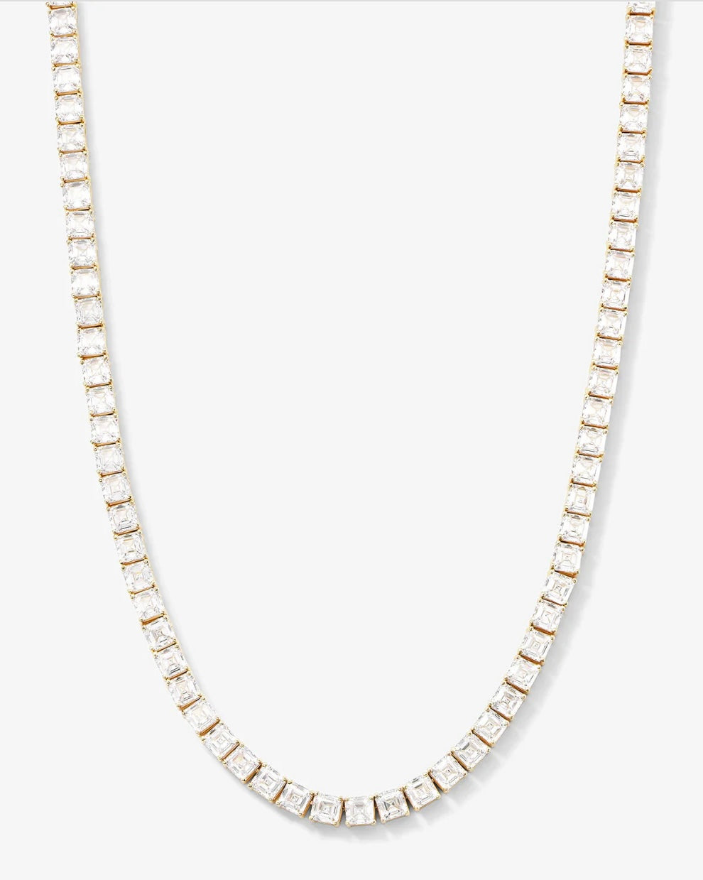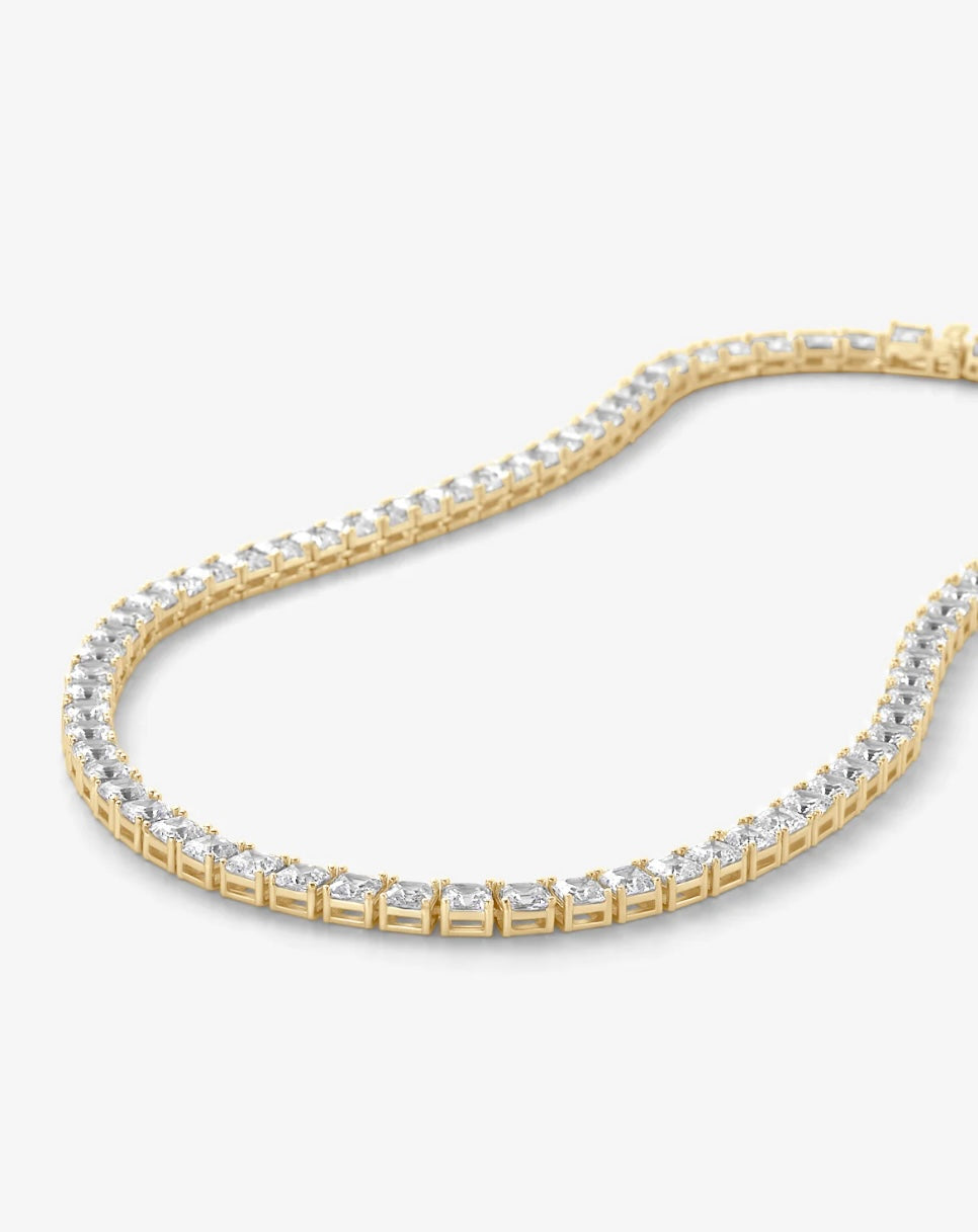 Indulge in regal elegance with our 16 inch Queen's Tennis Necklace to spice up your look. Our queen's necklace features intricate craftsmanship and can be a remarkable gesture of devotion for your loved one. Tennis chains create an effortlessly chic look that mirrors the grandeur of royalty. The Queen's Necklace from Melinda Maria is more than a diamond necklace; it commands attention unlike anything else. Our jewelry designs embrace modernity and classic styles at Melinda Maria.