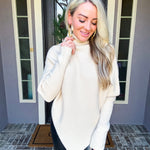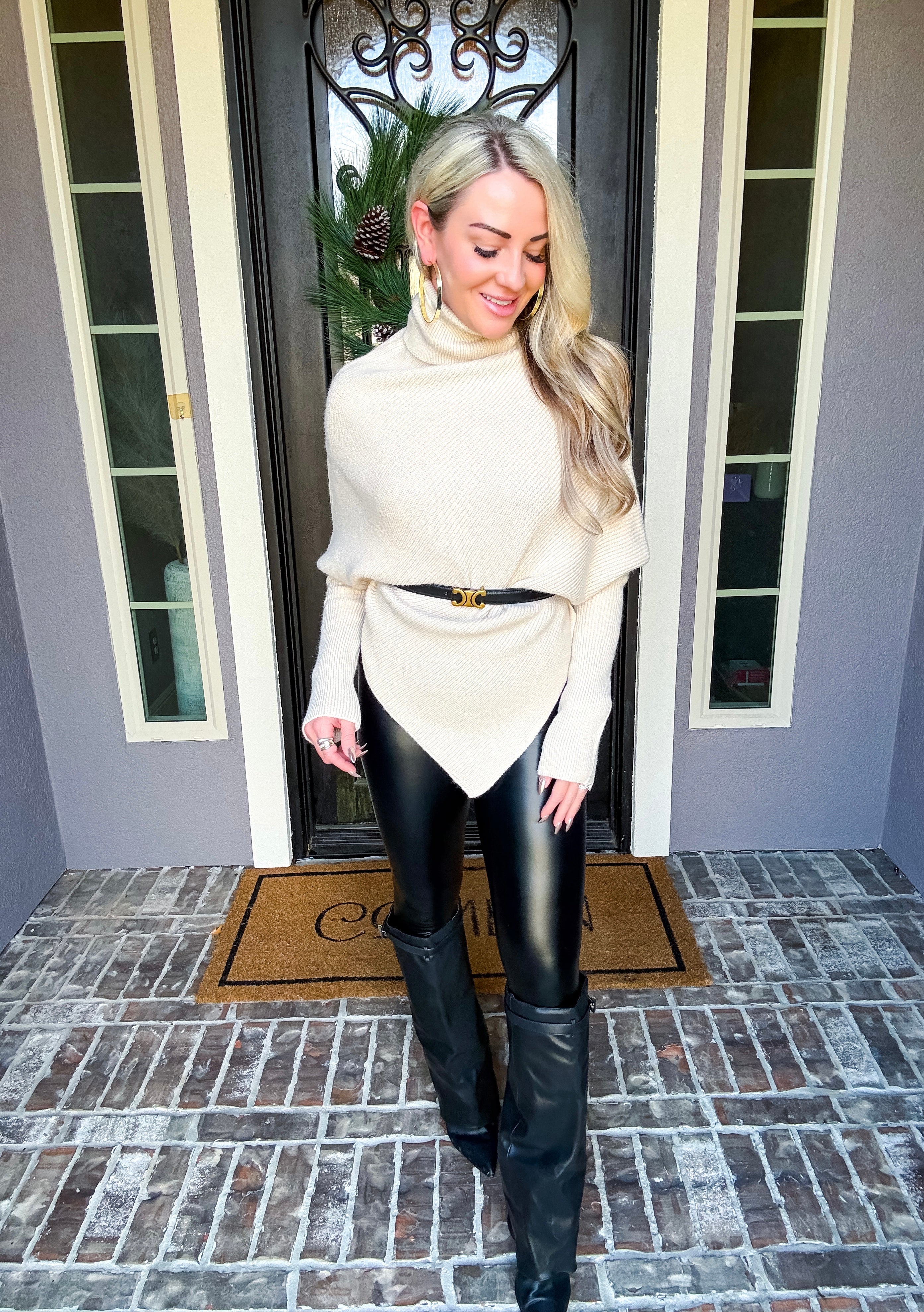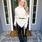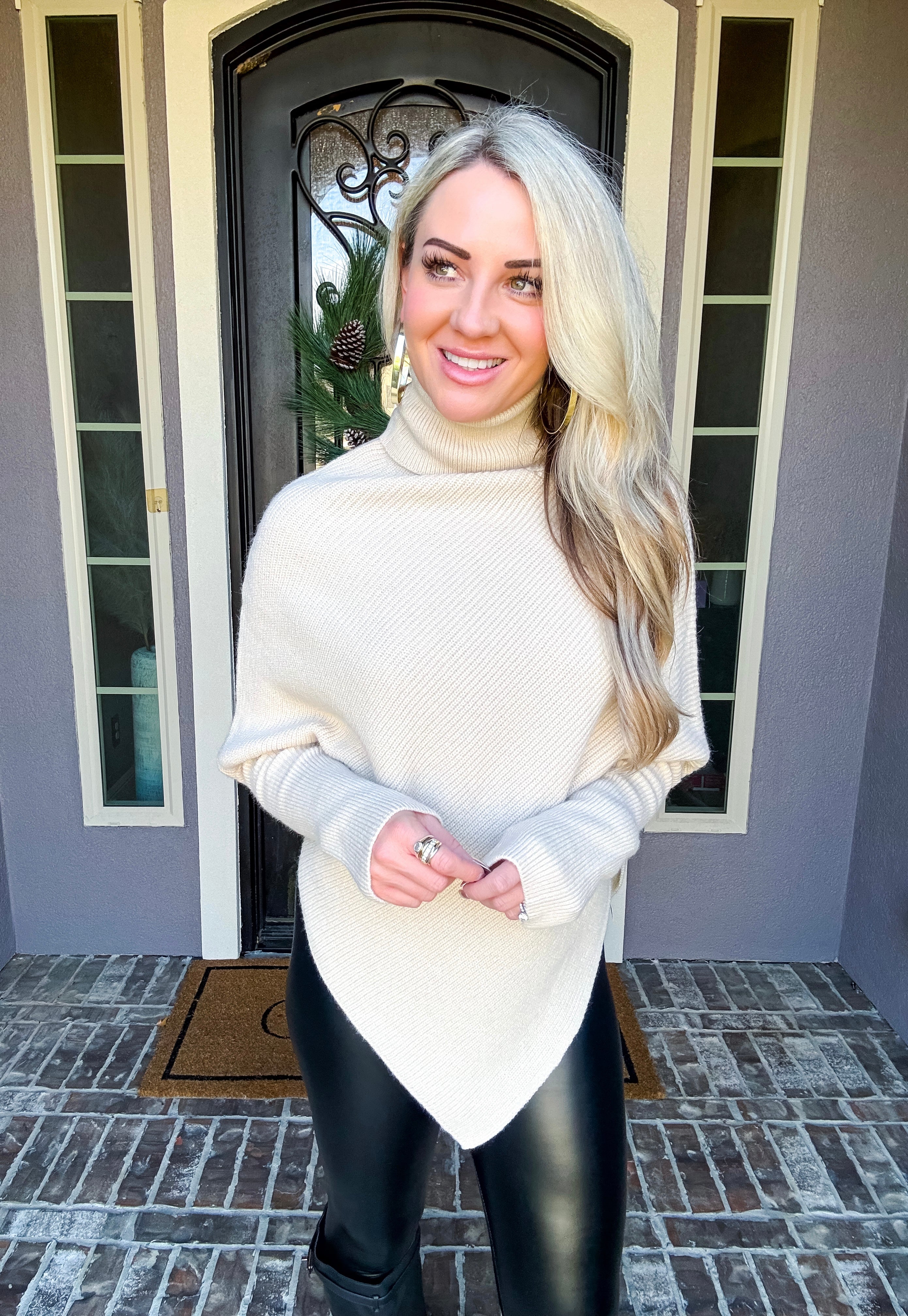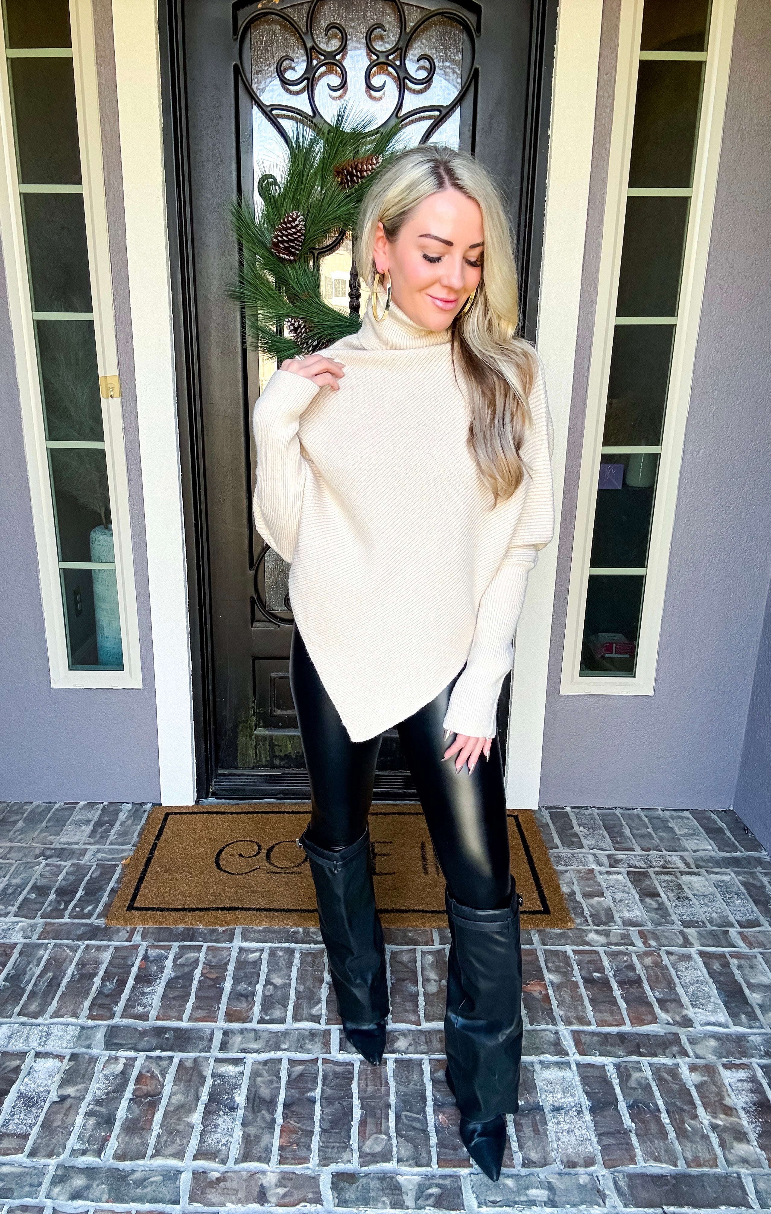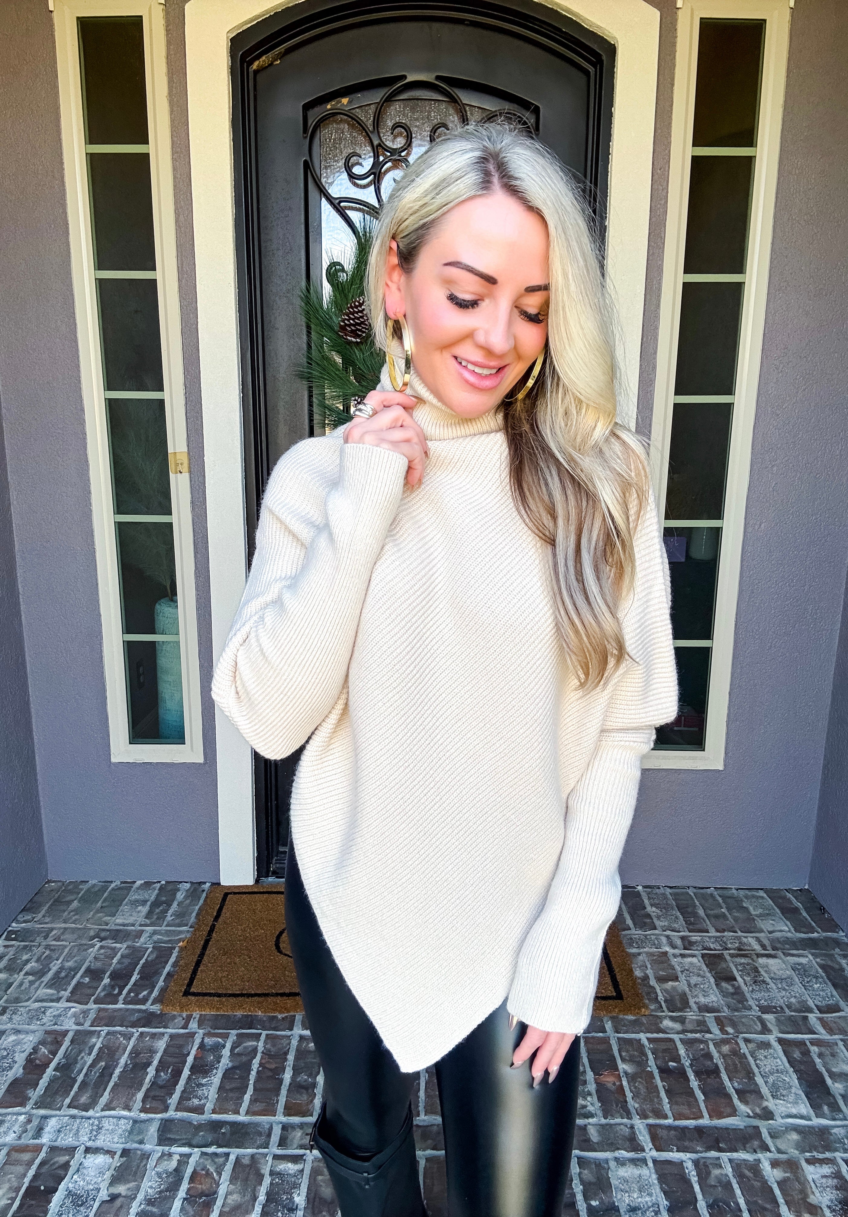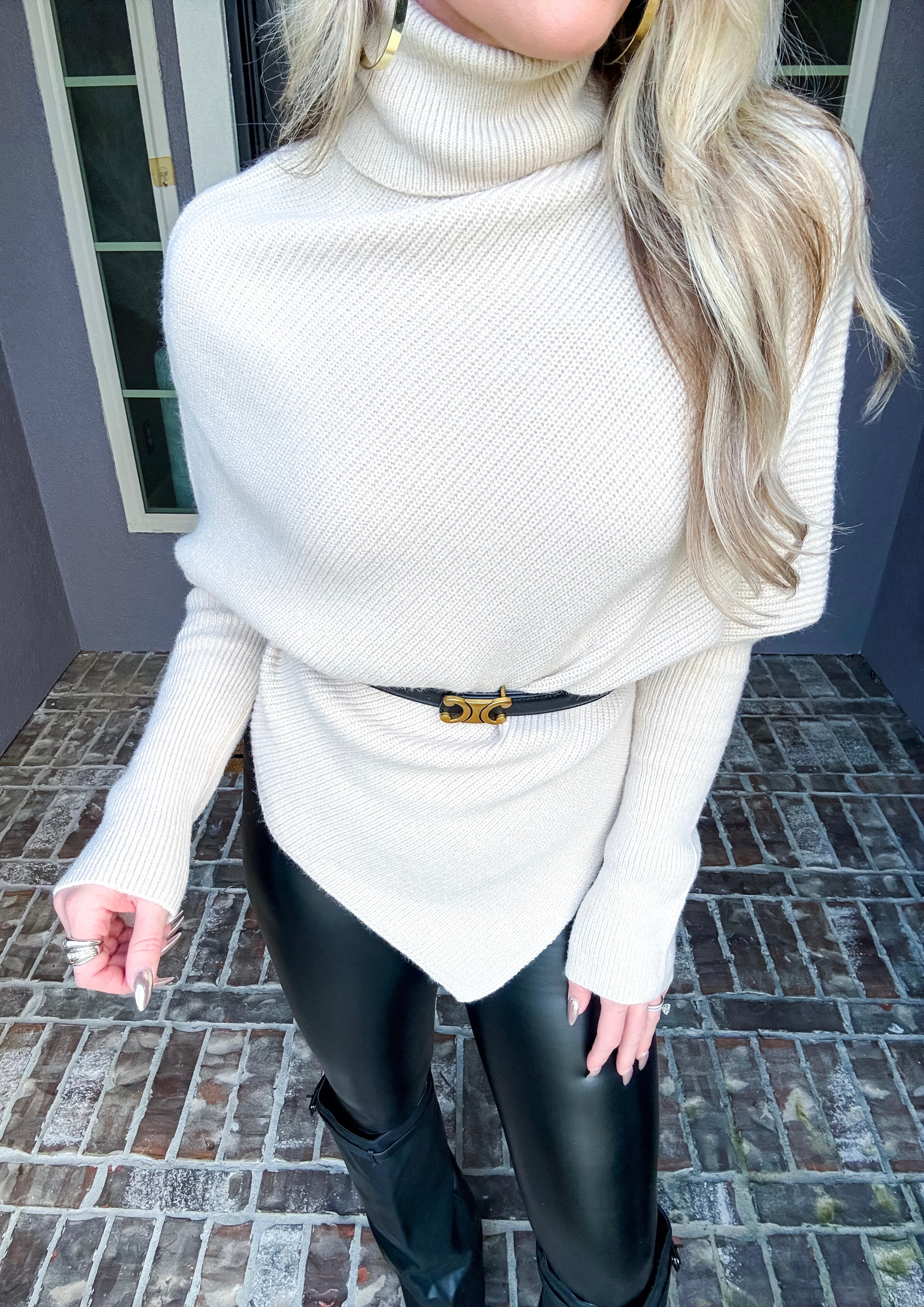 Casual Glam Asymmetrical Batwing Turtleneck - Beige