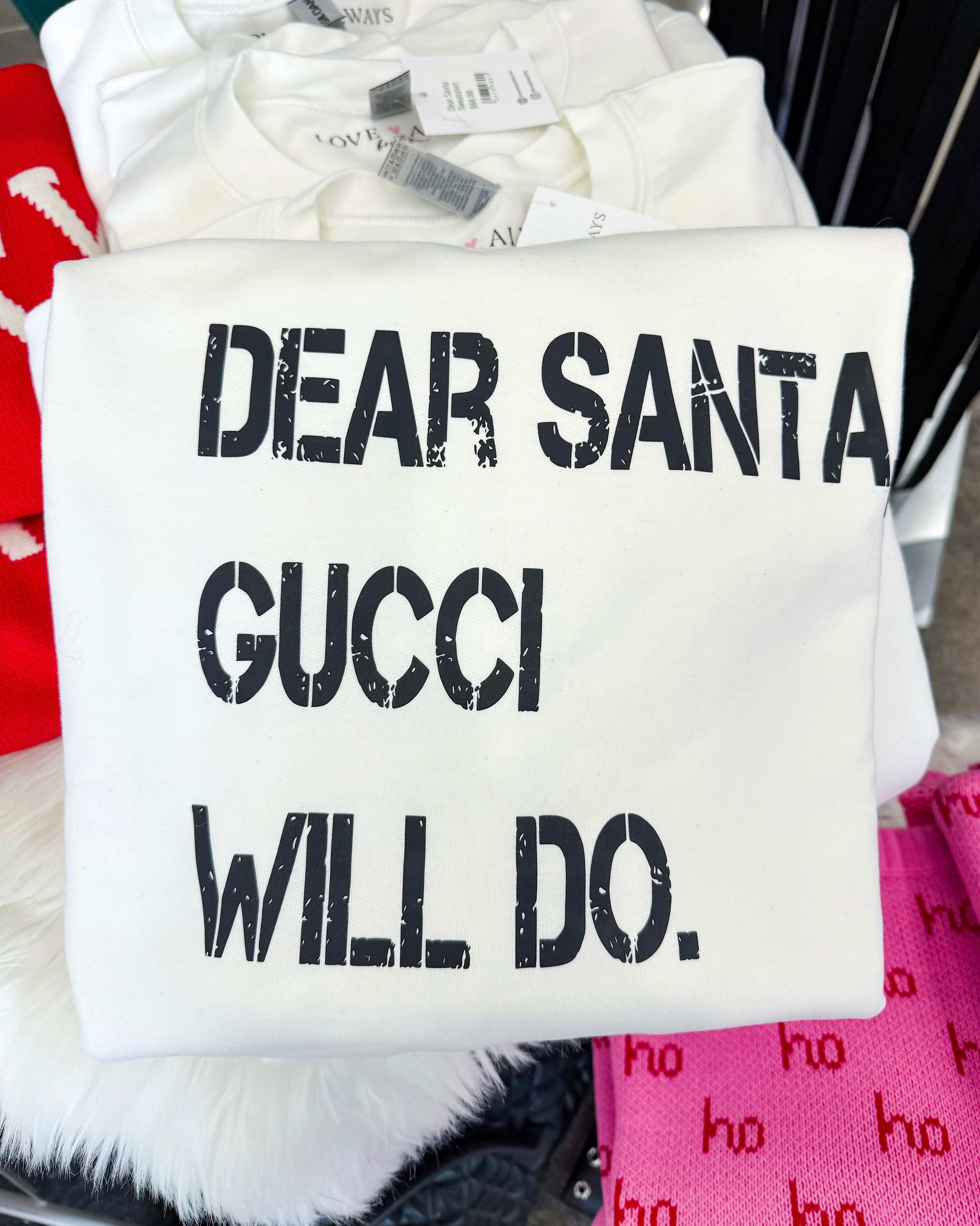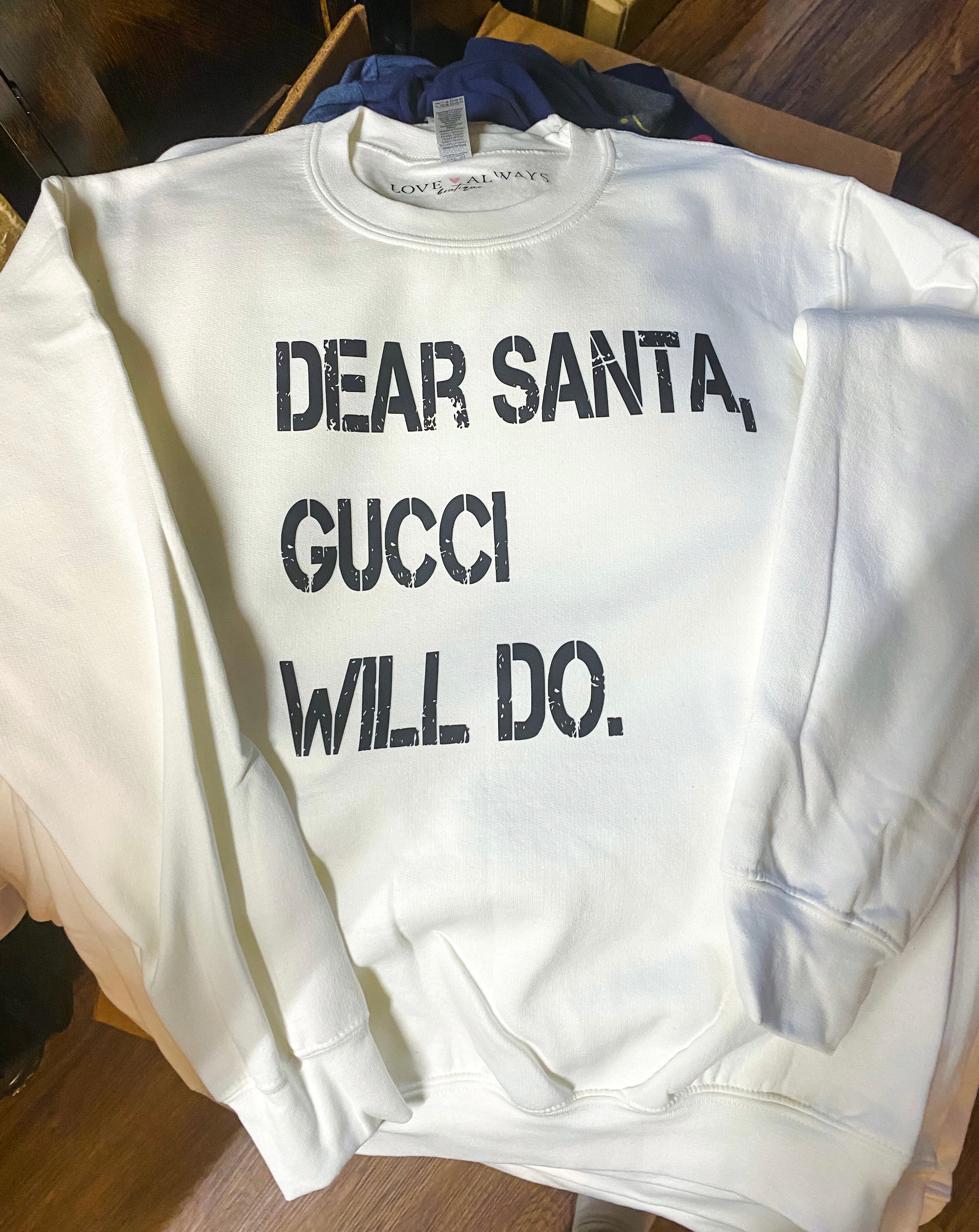 Manifest your Christmas gift in the cutest sweatshirt! It's a light weight sweatshirt thats easy to style any way you want to wear it!