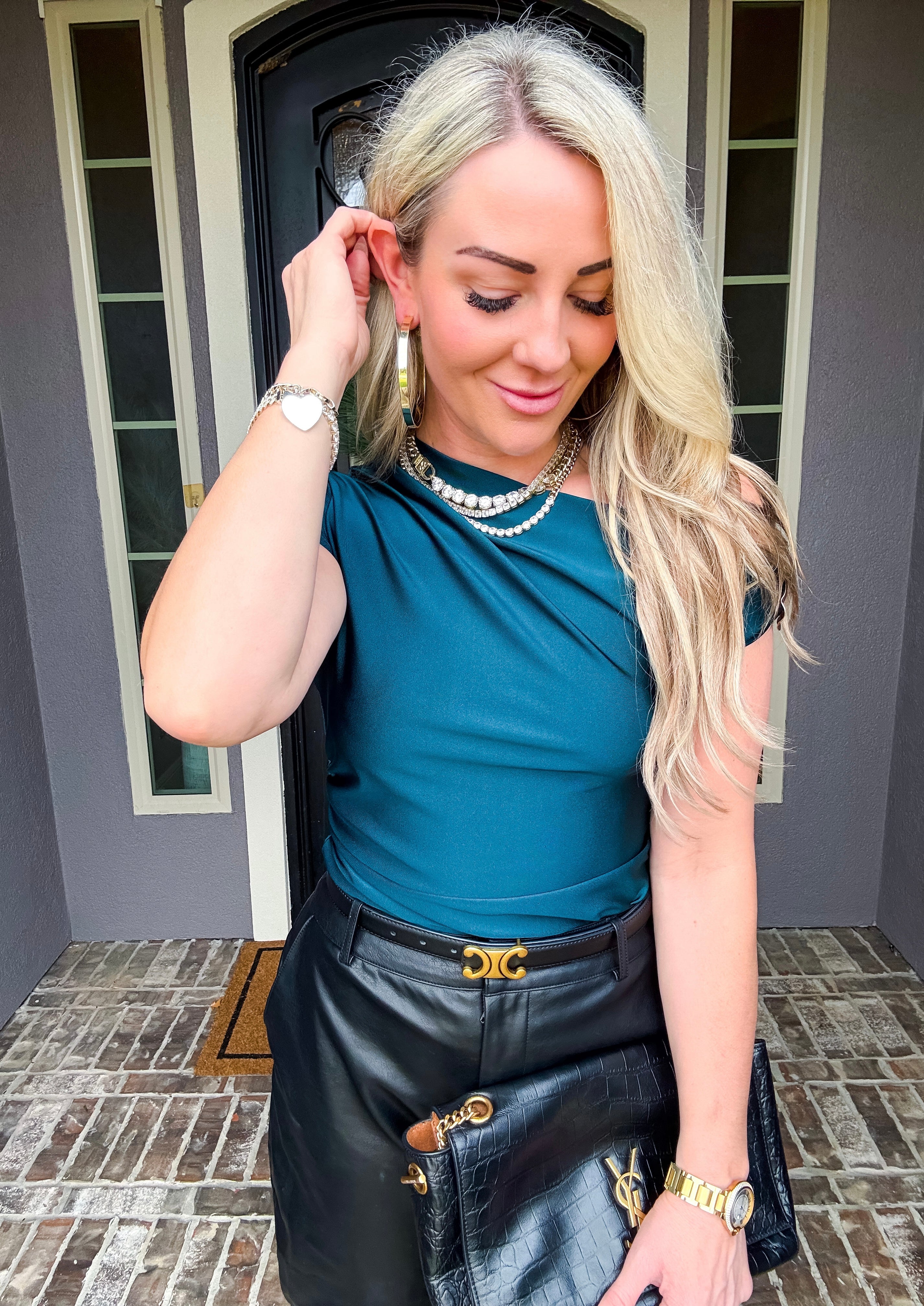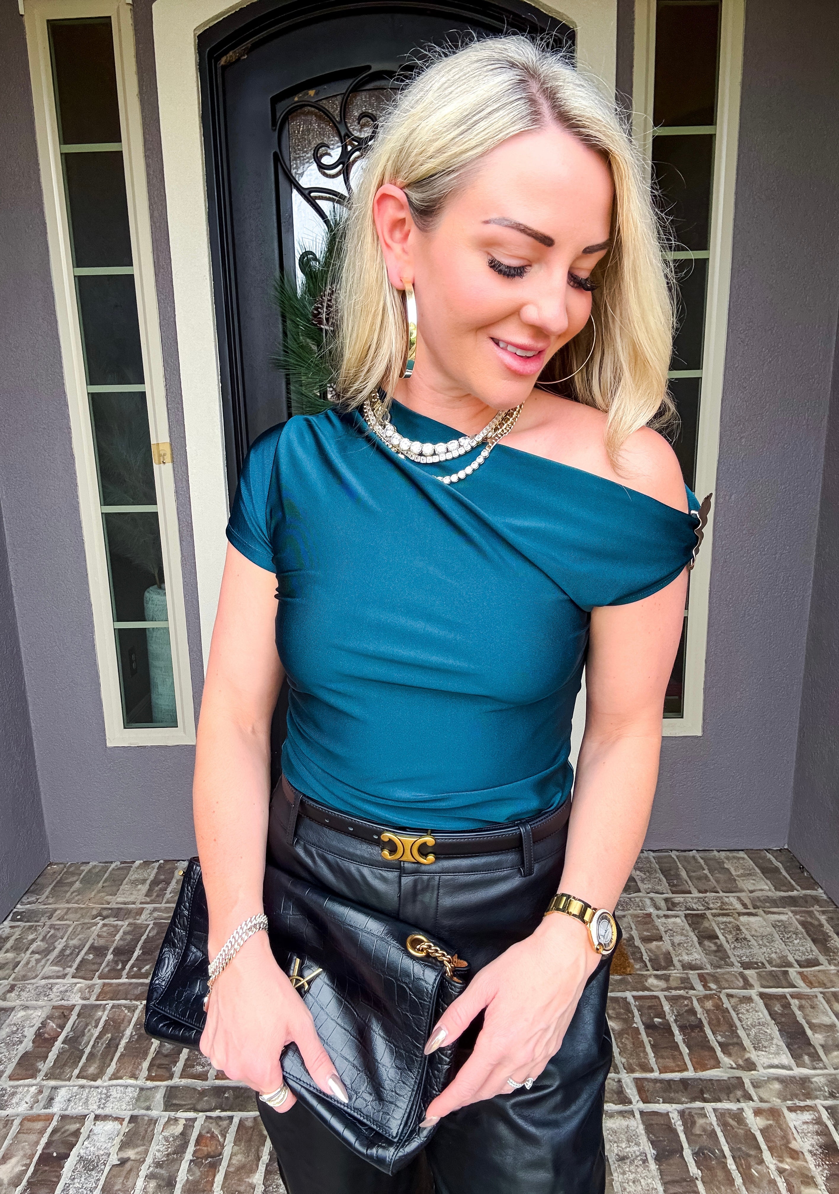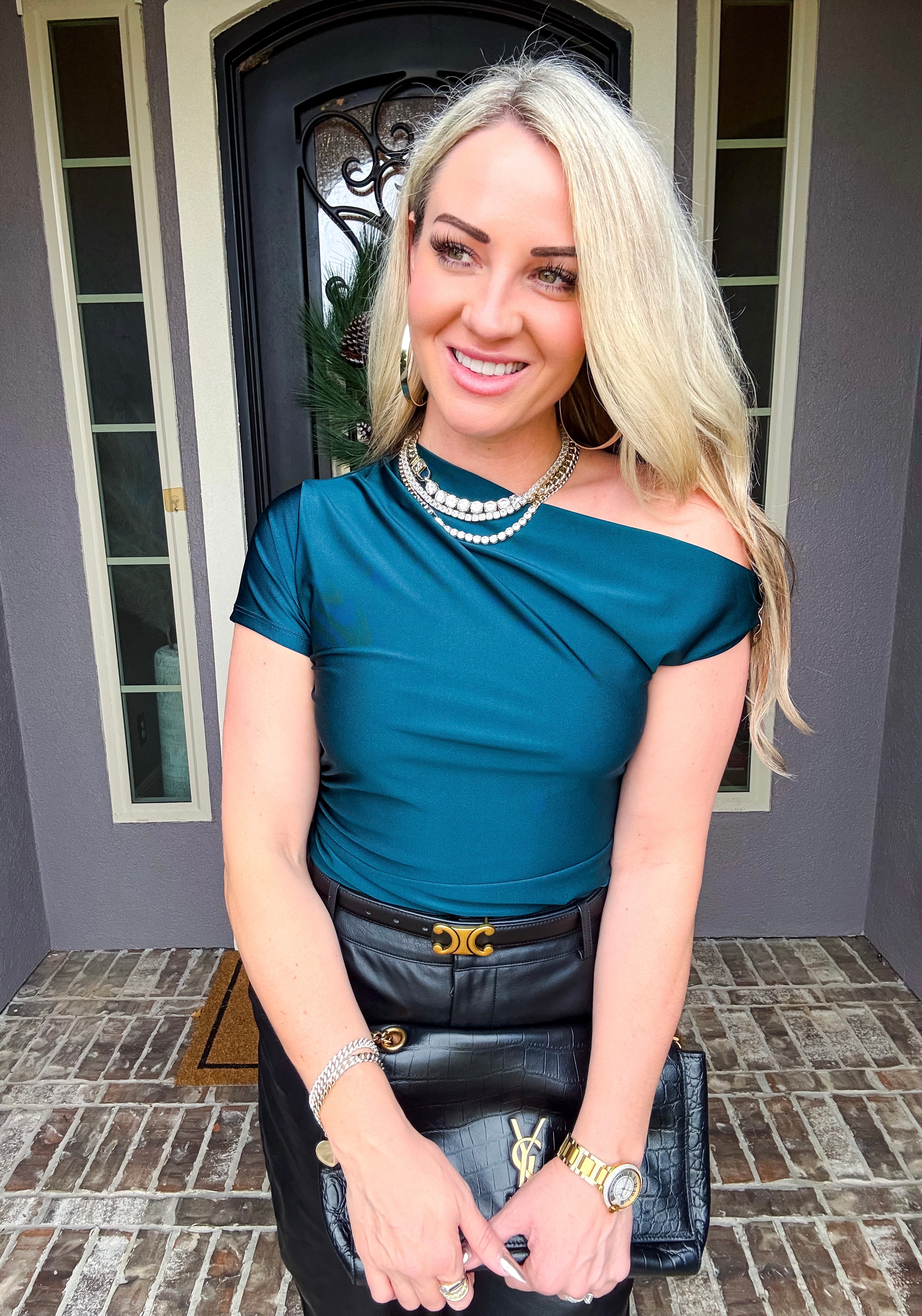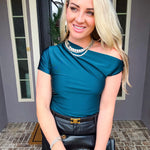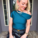 Elevate your wardrobe with this stunning off-shoulder top, crafted from luxuriously stretchy fabric that moves with you. The mauve hue provides a sophisticated backdrop for the eye-catching gold detailing at the shoulder, adding an instant touch of glamour to any ensemble. Perfect for date nights, special occasions, or whenever you want to feel confident and radiant. The comfortable stretch ensures all-day wearability without compromising on style.
