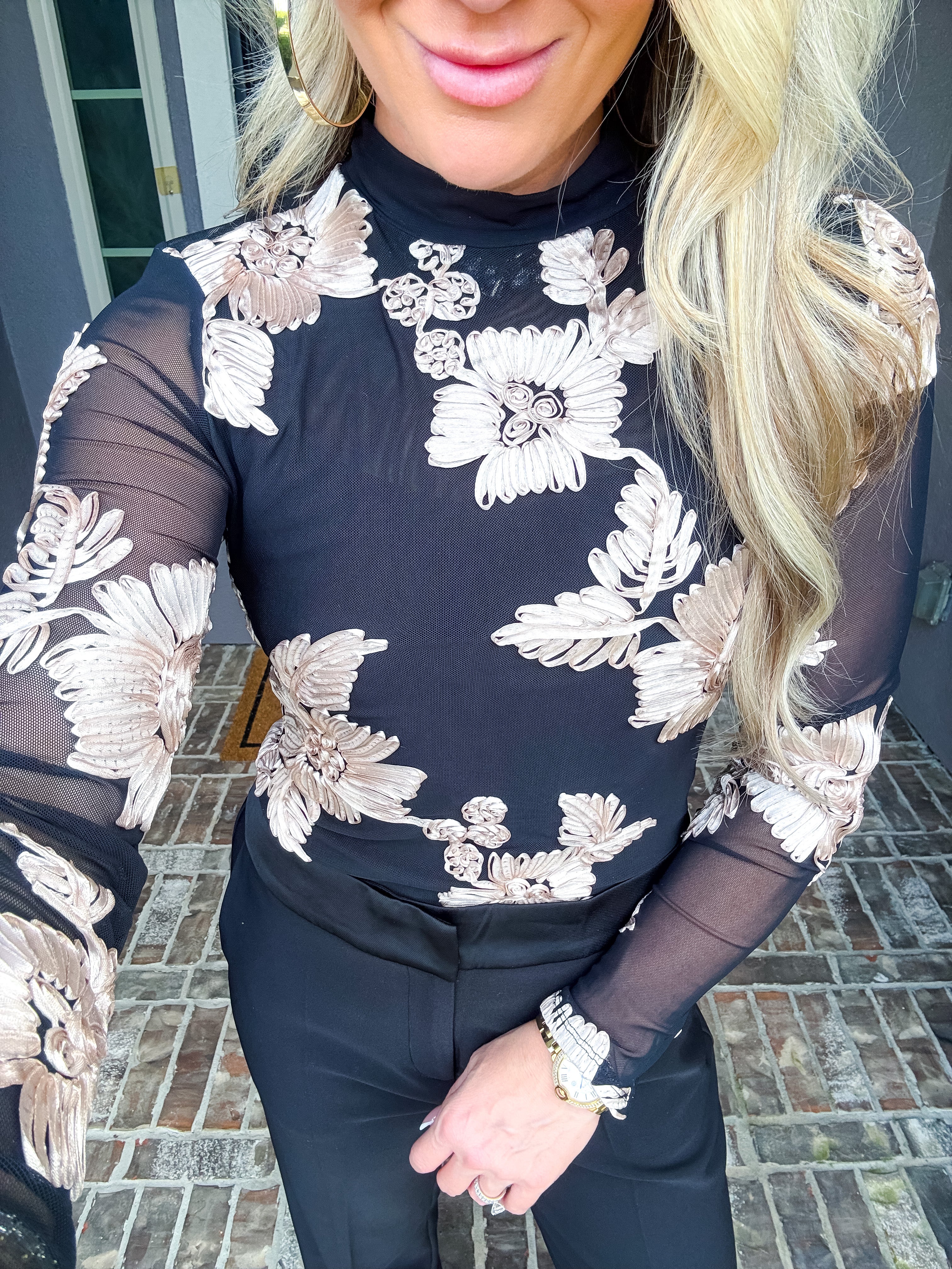 Midnight Bloom Sheer Flower Top