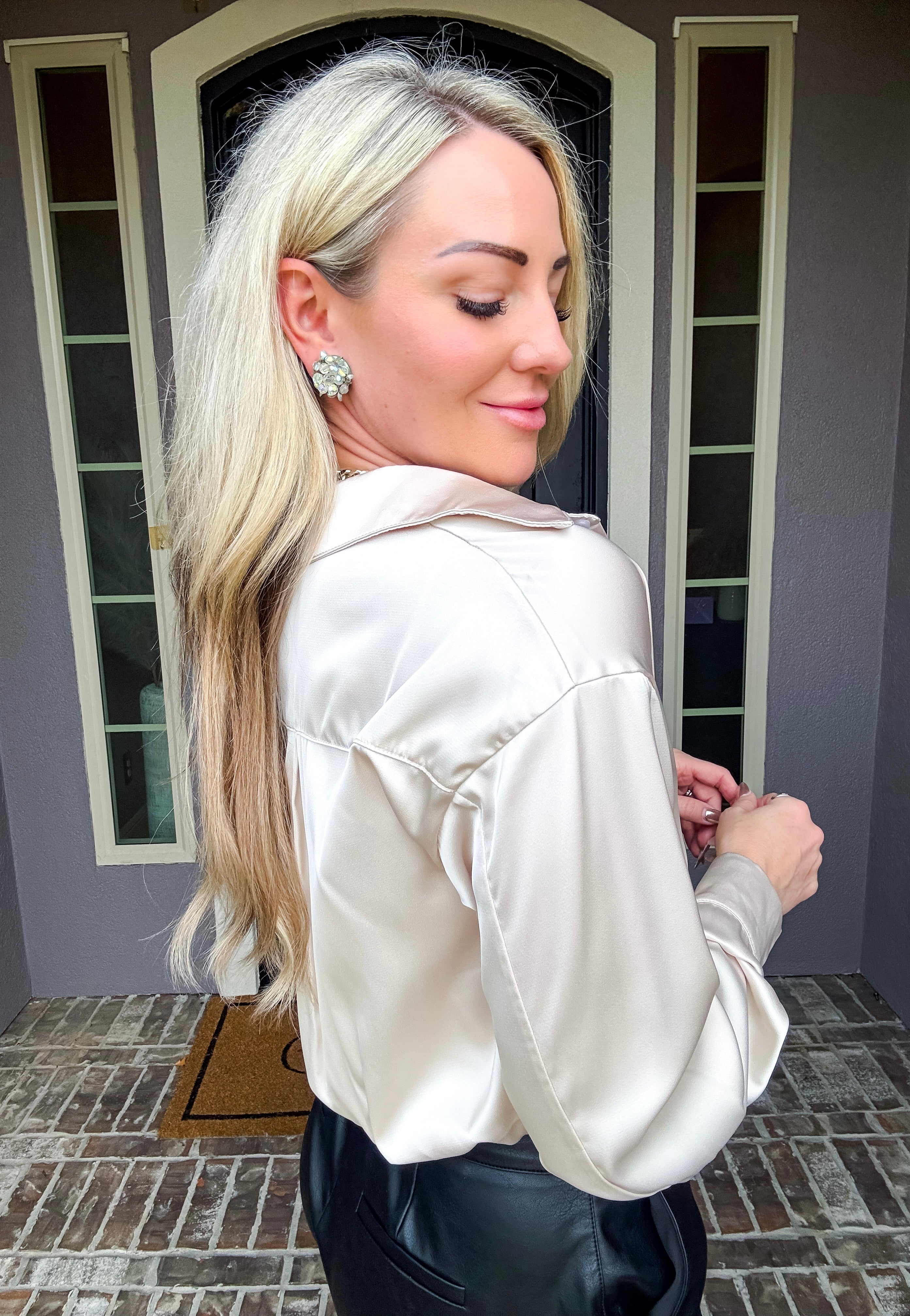 Elevate your wardrobe with this Modern Romance Lace Satin Blouse, where sophisticated design meets wearable elegance. The lustrous satin exterior pairs seamlessly with an integrated lace cami, creating a layered silhouette that works beautifully on its own or styled over basics. Front button closure allows for effortless dressing and versatile styling options. Perfect for transitioning from office to evening occasions, this piece delivers polished femininity with thoughtful construction that eliminates the need for additional layering pieces.