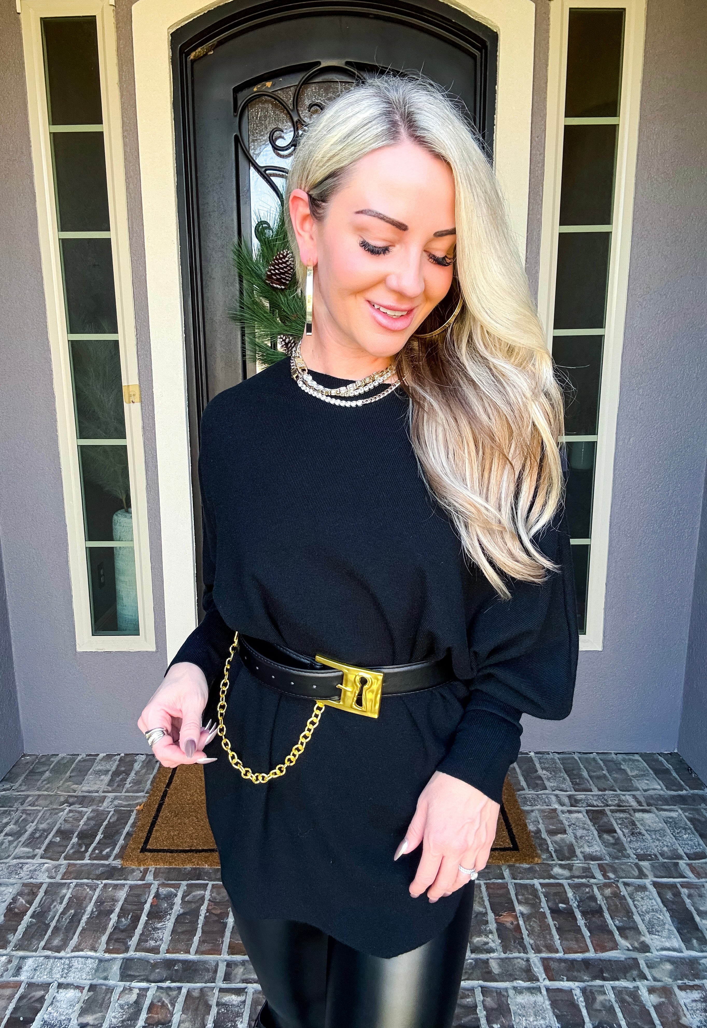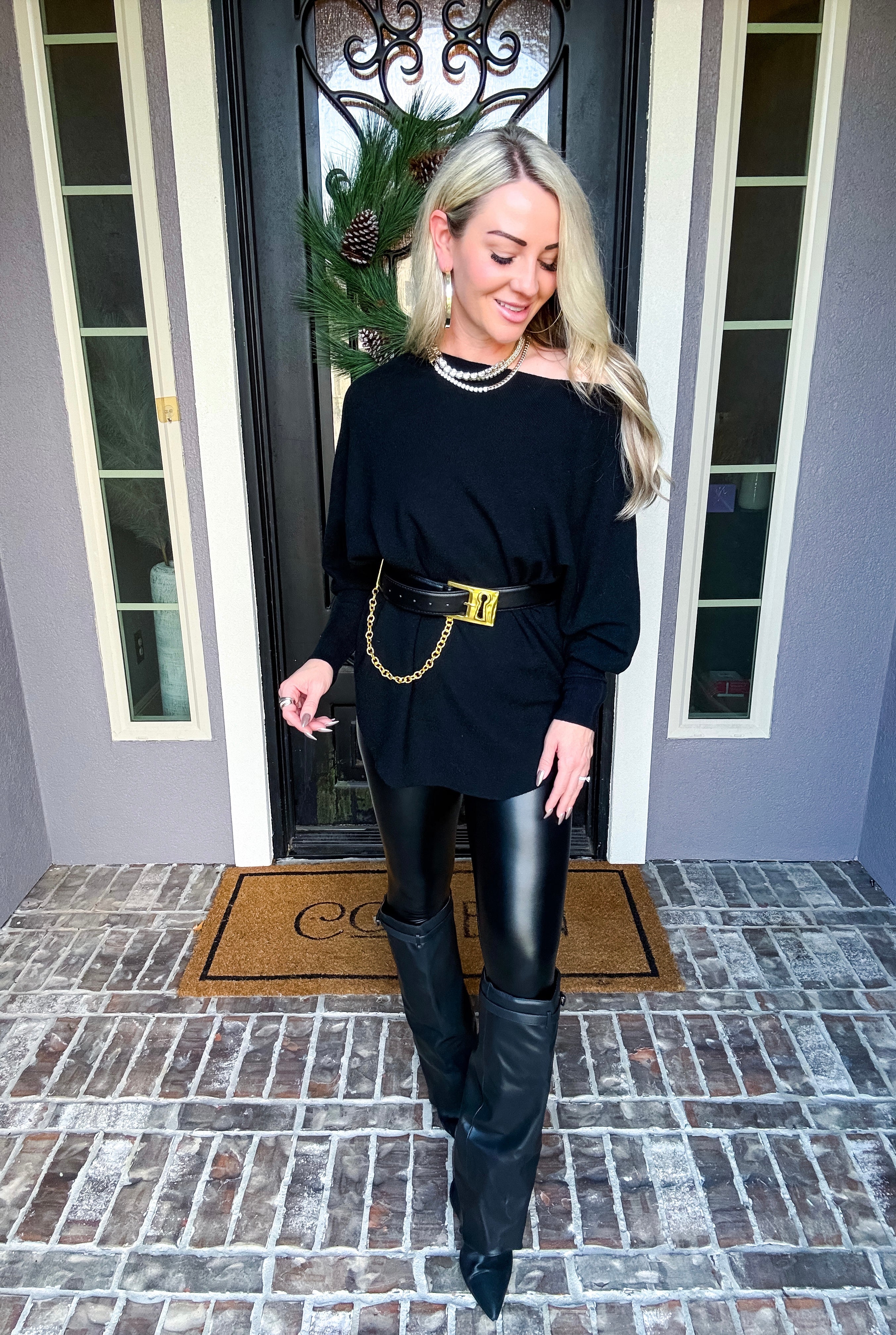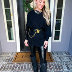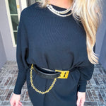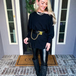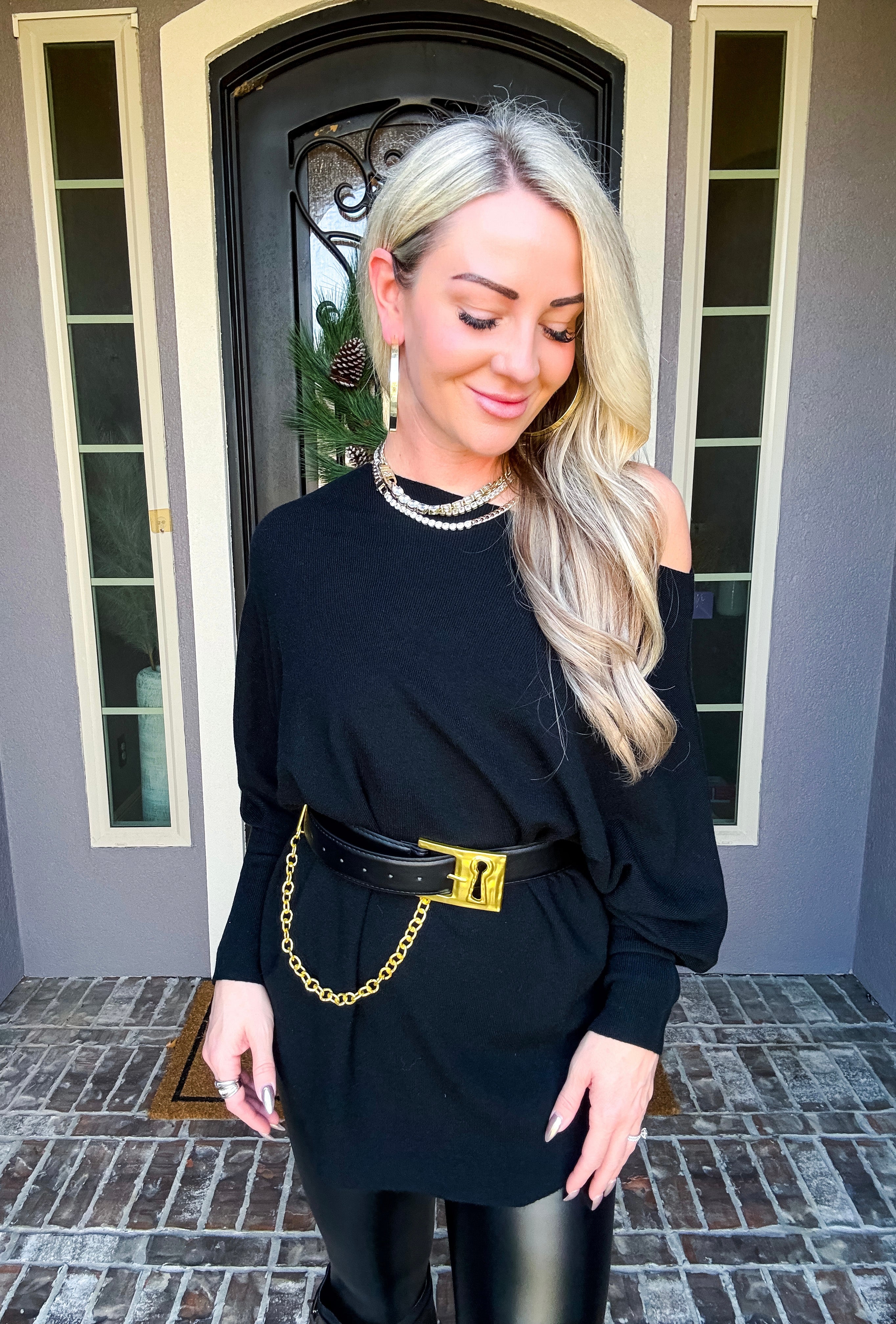 The Onyx Belted Off Shoulder Top combines effortless elegance with versatile styling. This super soft top features a flattering off-shoulder silhouette that works beautifully on its own or paired with the included belt—a statement piece adorned with gold detailing at the front. Wear it casually for everyday comfort or dress it up for a night out. The included belt adds dimension and definition, while the soft fabric ensures all-day wearability. Style it your way, with or without the belt.