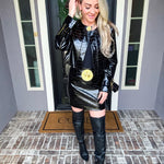 Elevate your wardrobe with the Savage Elegance Crocodile Skirt, a striking piece that merges bold animal print with refined sophistication. Crafted from premium vegan crocodile material, this skirt delivers texture and visual impact without compromise. The front features lustrous gold detailing that catches the light, while a discreet back zip ensures a seamless silhouette. Perfect for those who command attention through intentional style choices, this skirt transitions effortlessly from statement evening wear to confident daytime dressing.