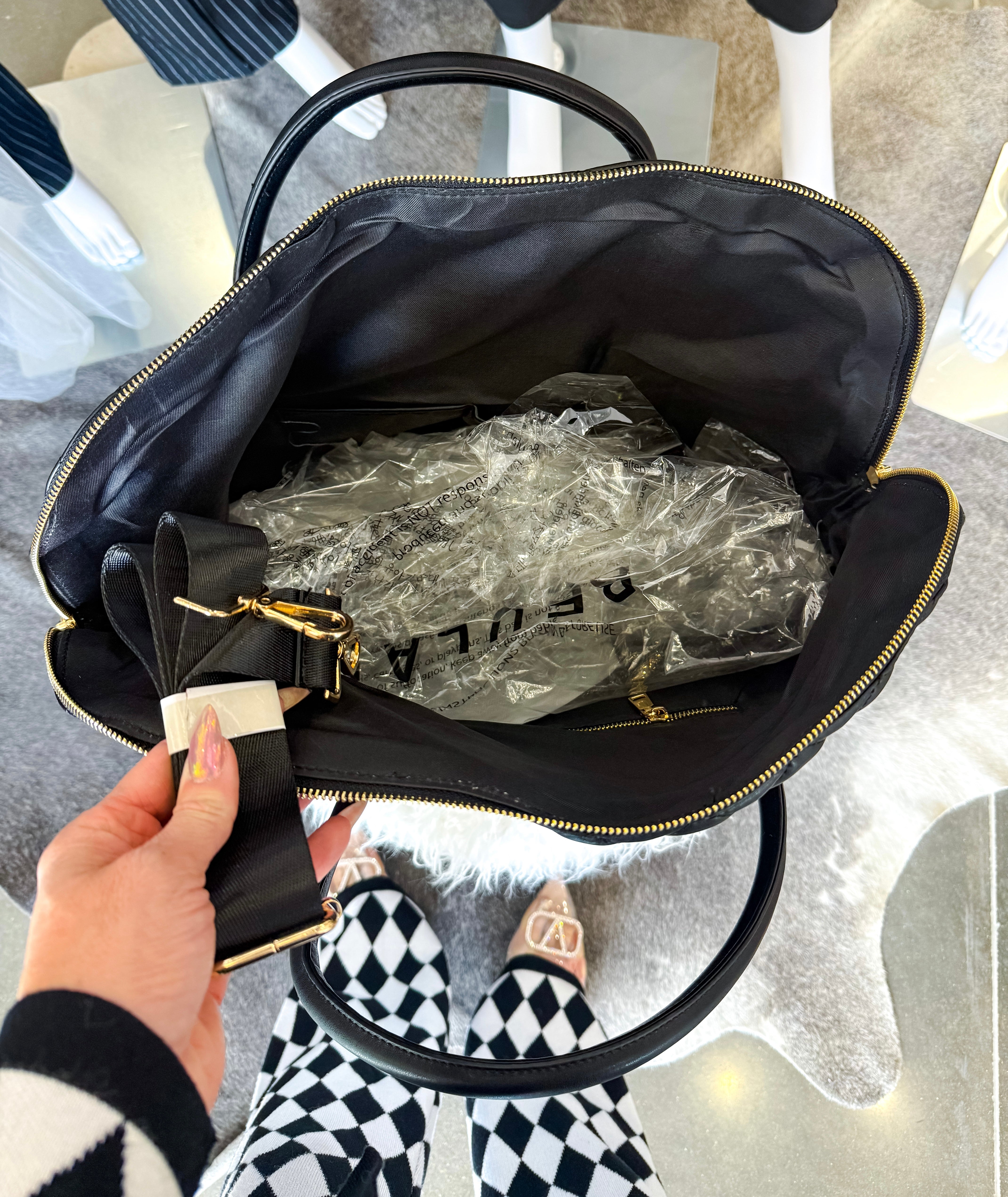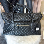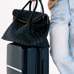 Elevate your travel experience with the Vacay Mode Quilted Travel Bag, crafted from luxurious vegan leather with a sophisticated quilted design. This versatile companion features an adjustable crossbody strap for hands-free convenience and a thoughtfully engineered suitcase sleeve that glides effortlessly over your luggage handle. Navigate airports and destinations with ease, keeping your essentials organized and accessible. Perfect for the conscious traveler who refuses to compromise on style or sustainability.