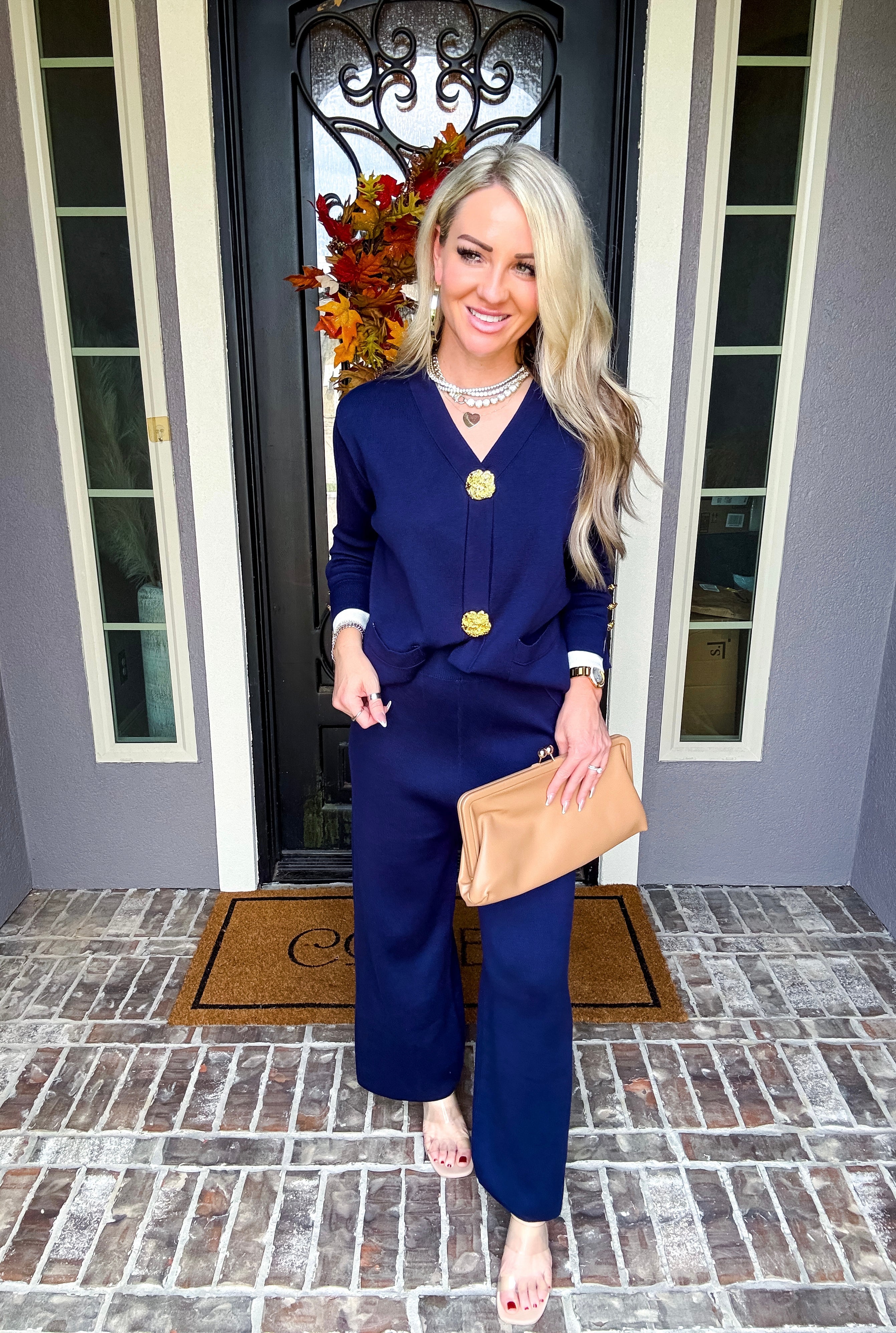Experience the perfect blend of comfort and style with the Nautical Nights Knit Pants. Crafted from a stretchy fabric, these pants offer a flattering fit that moves with you throughout the day. Their rich blue hue adds a sophisticated touch, making them versatile for both casual and polished looks. Ideal for those seeking effortless comfort without sacrificing chic appeal.