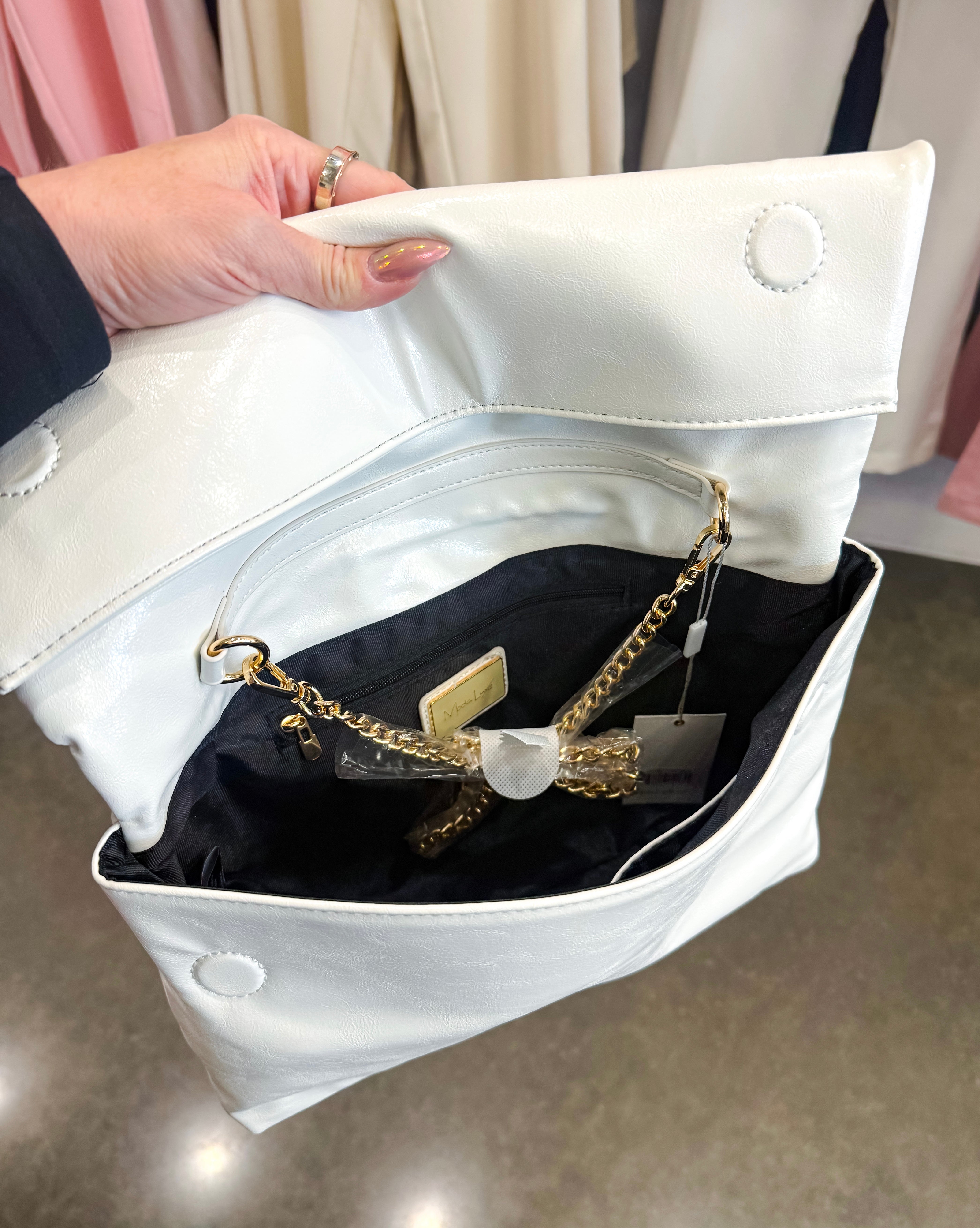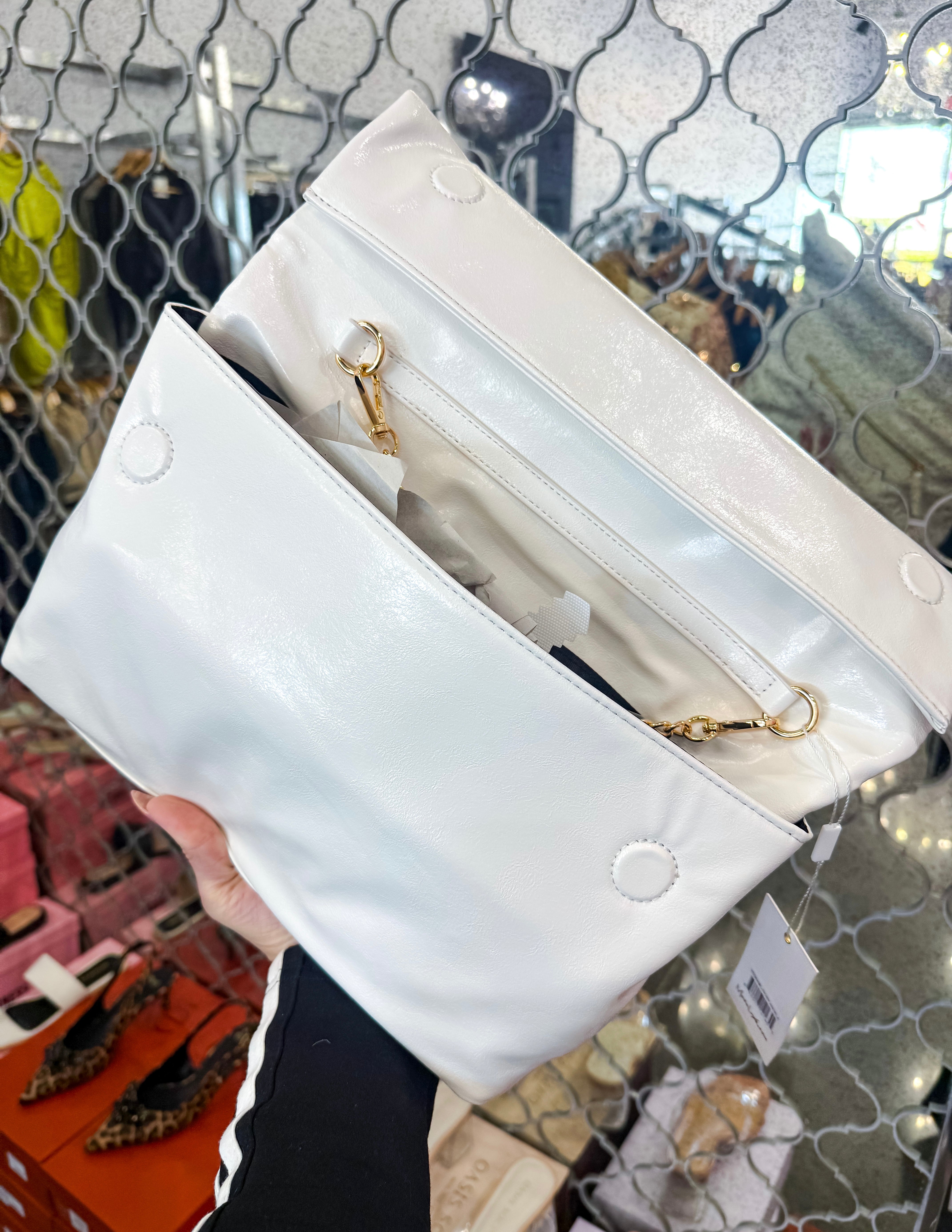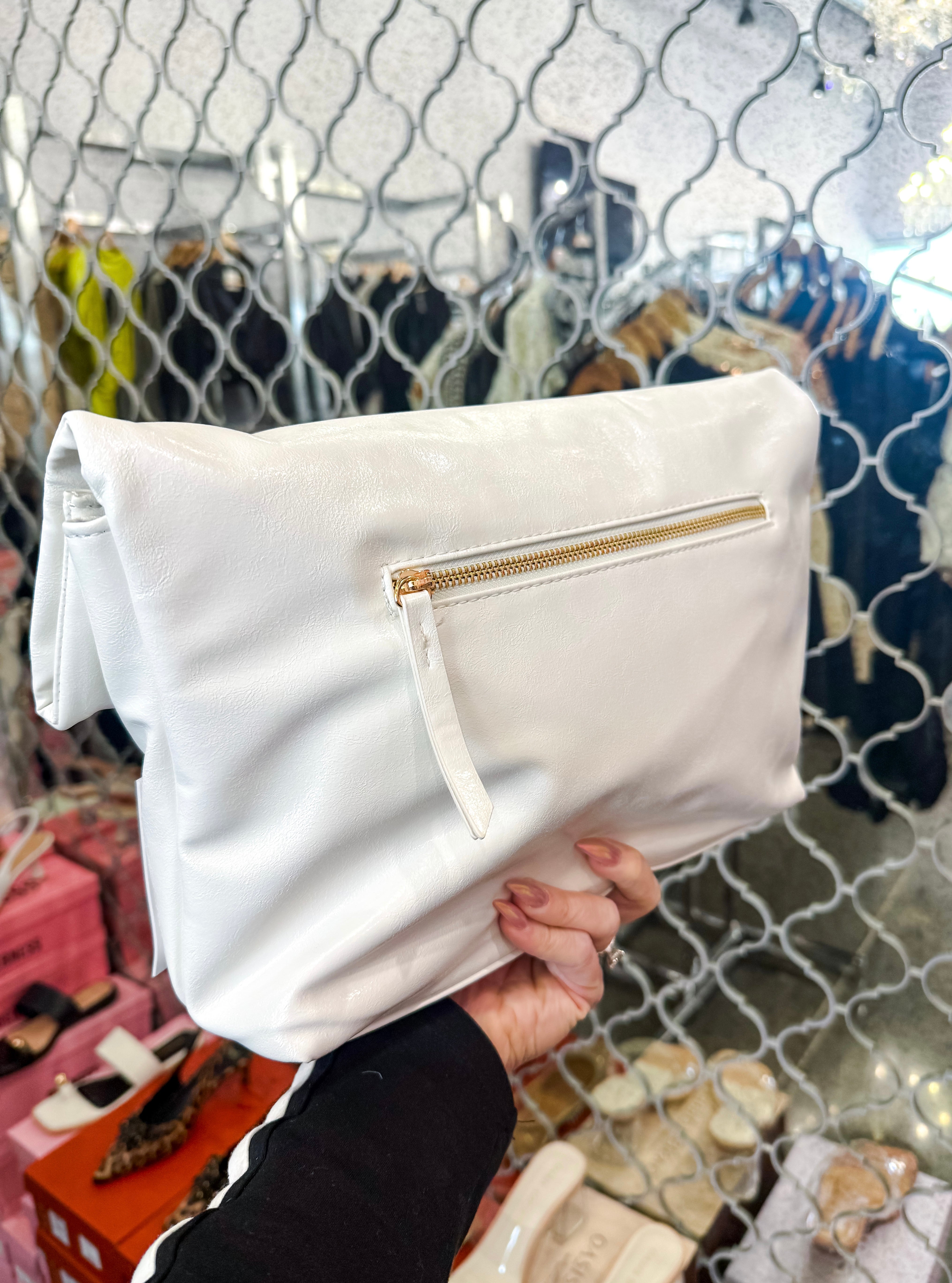 The Monte Carlo Clutch is an elegant statement piece designed for the modern woman. Its exaggerated silhouette and dramatic foldover detail create an instantly sophisticated look, while the detachable crossbody chain offers versatile styling—carry it as a clutch or wear it hands-free. Crafted with refined elegance in mind, this black beauty transitions seamlessly from day to evening, making it the perfect accessory for any occasion.