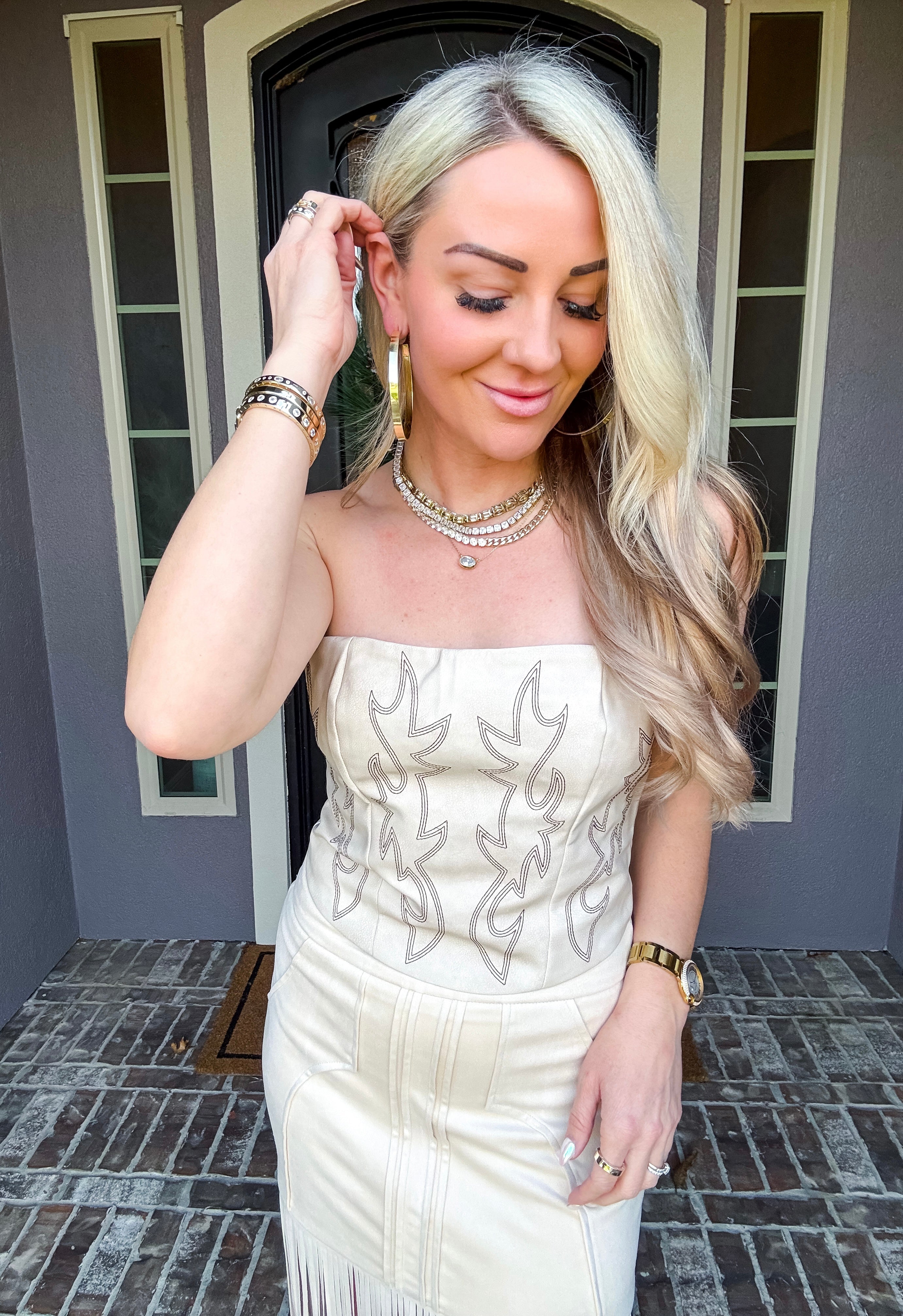 Elevate your western wardrobe with this stunning corset top, designed to turn heads whether you're dressing it down with jeans or up with a flowing skirt. The rich brown hue complements any complexion, while the structured corset silhouette creates a flattering, defined look. Perfect for rodeos, country nights out, or anyone who loves bold, feminine western style. Versatile enough for casual wear yet polished enough for special occasions.