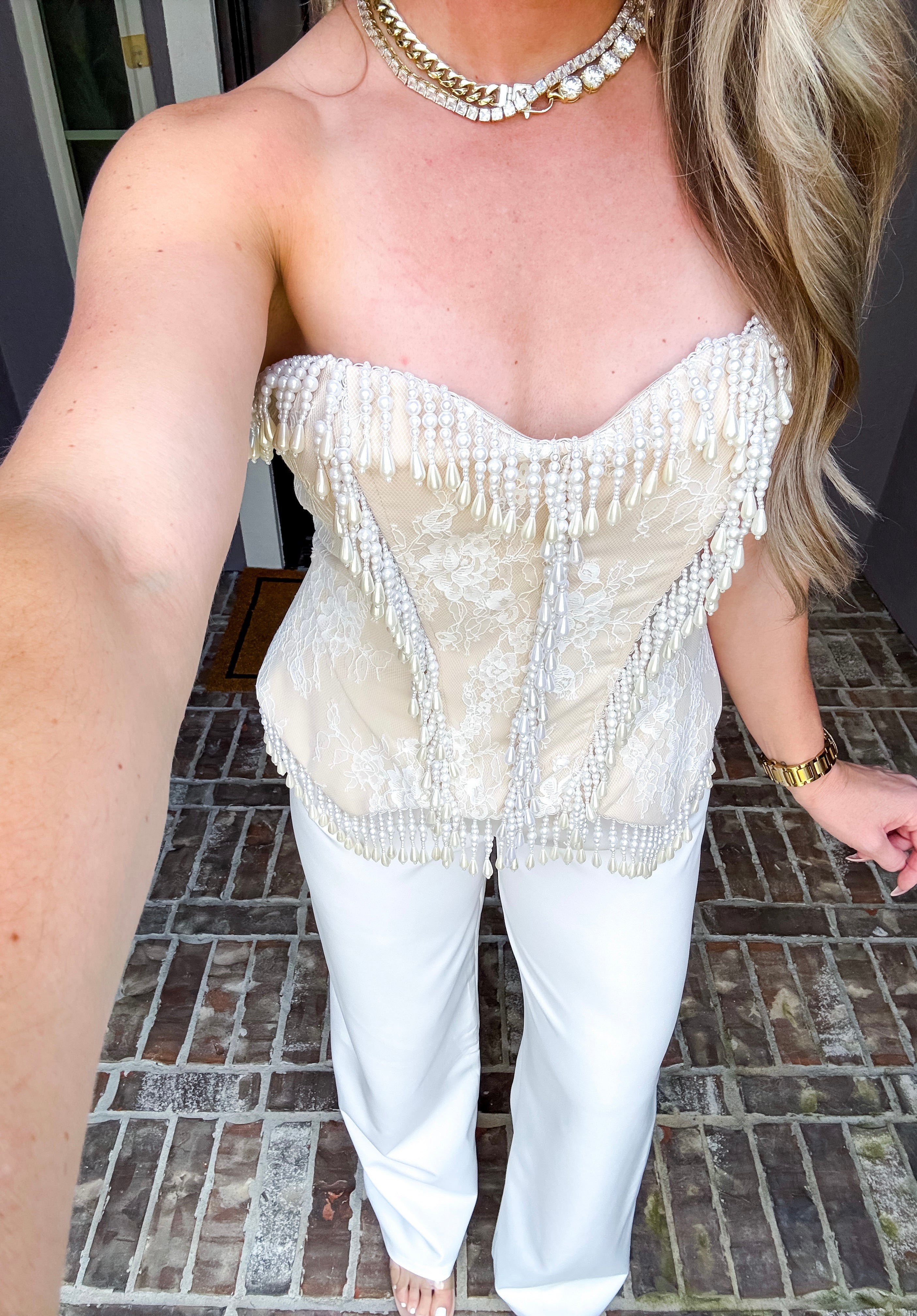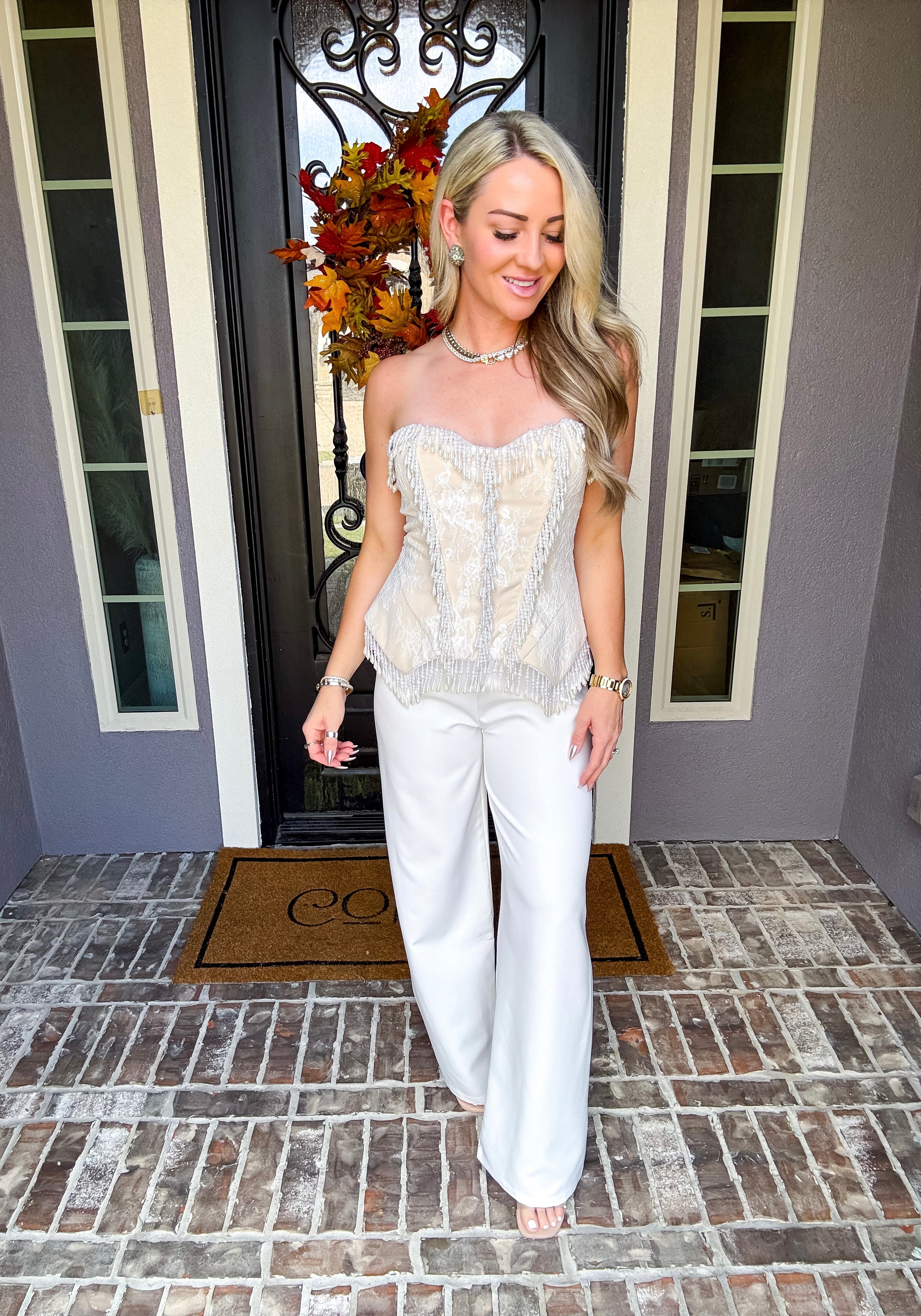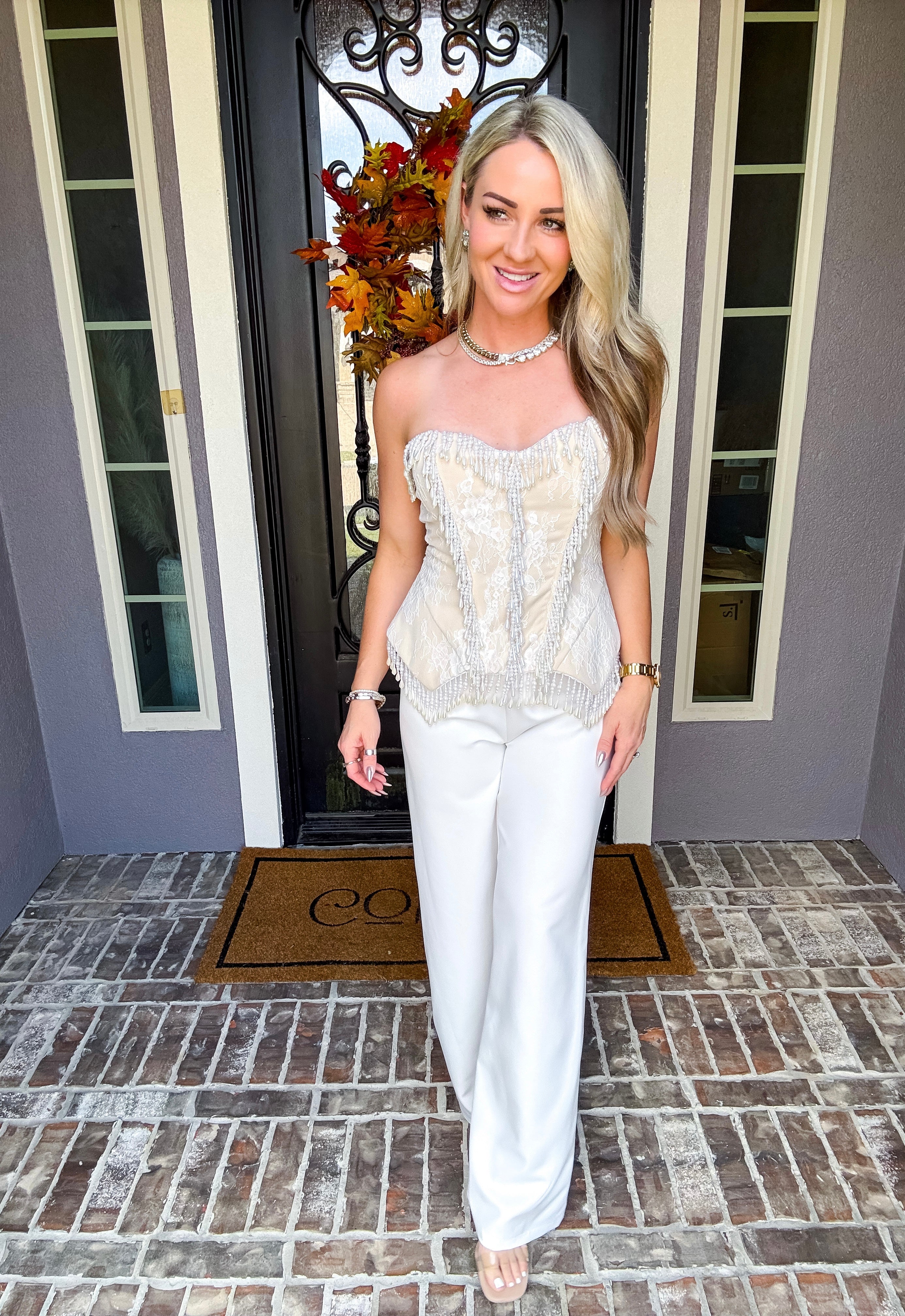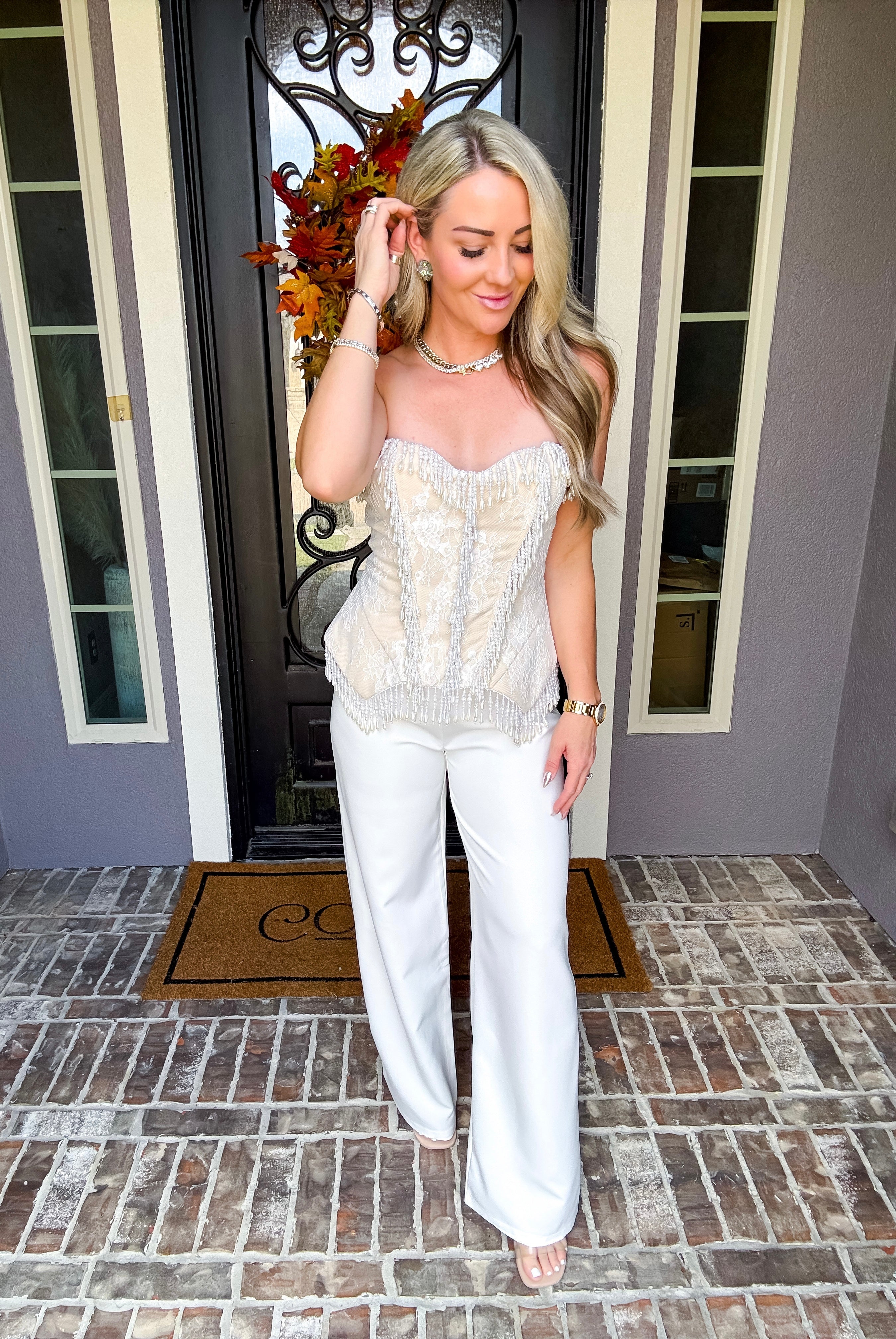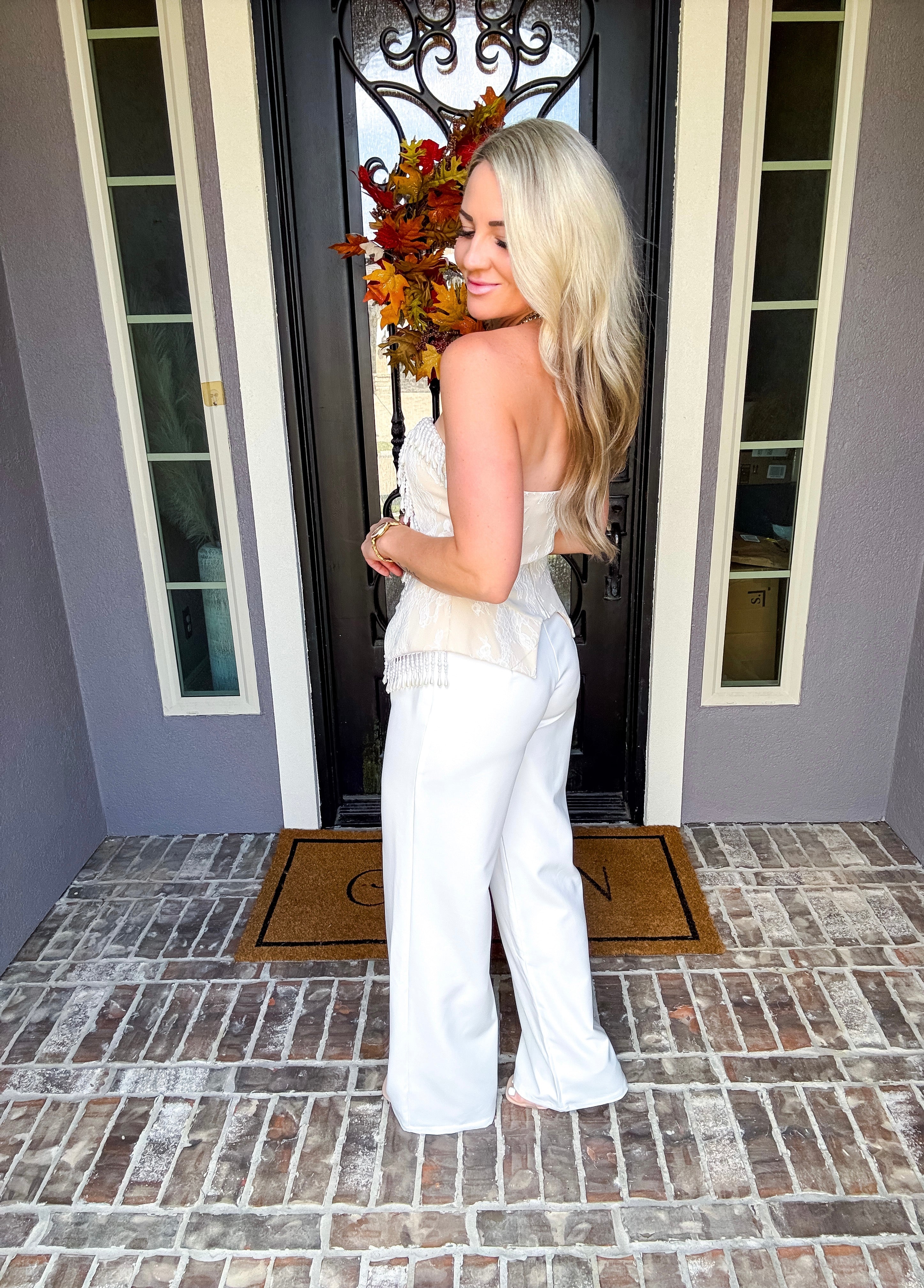 These Pearl Royale Trousers feature a refined cream color with a tailored fit designed for a polished, professional look. Crafted from a non-stretch fabric, they provide structure without compromise. The trousers are not see through to ensure confidence in wear, and a discrete back zipper offers a sleek finish, combining style with practicality. Perfect for dressing up or elevating everyday attire.