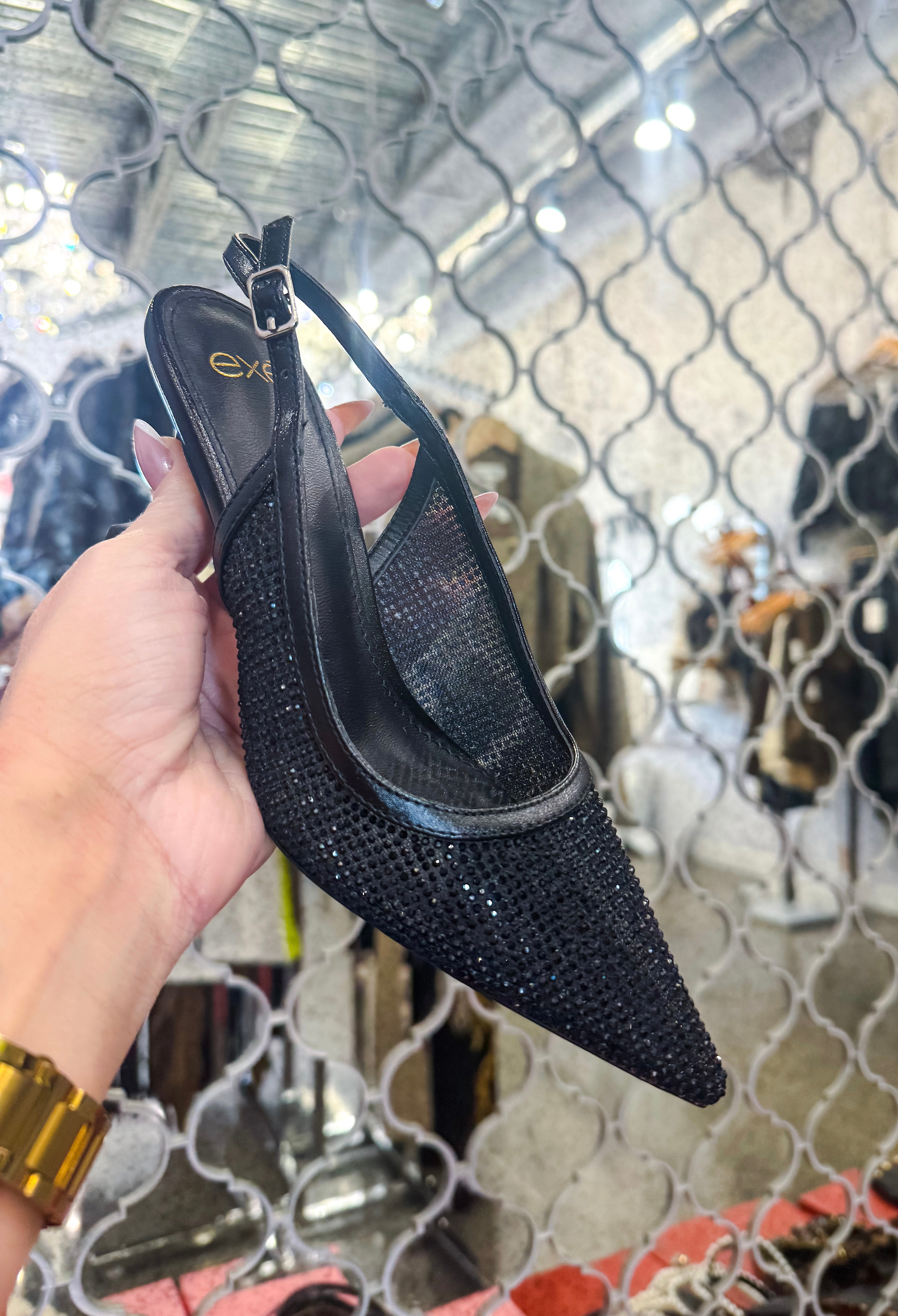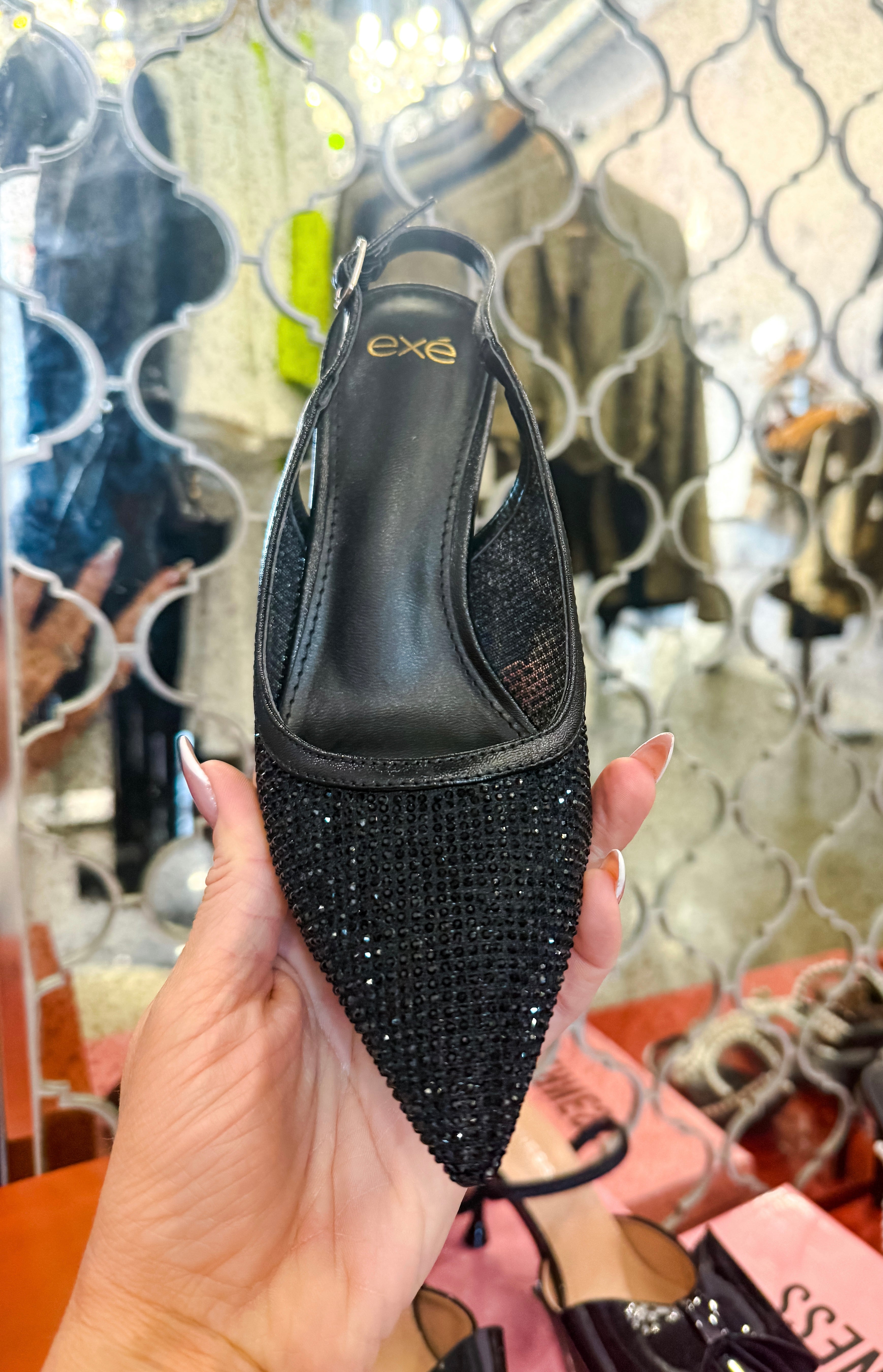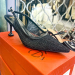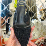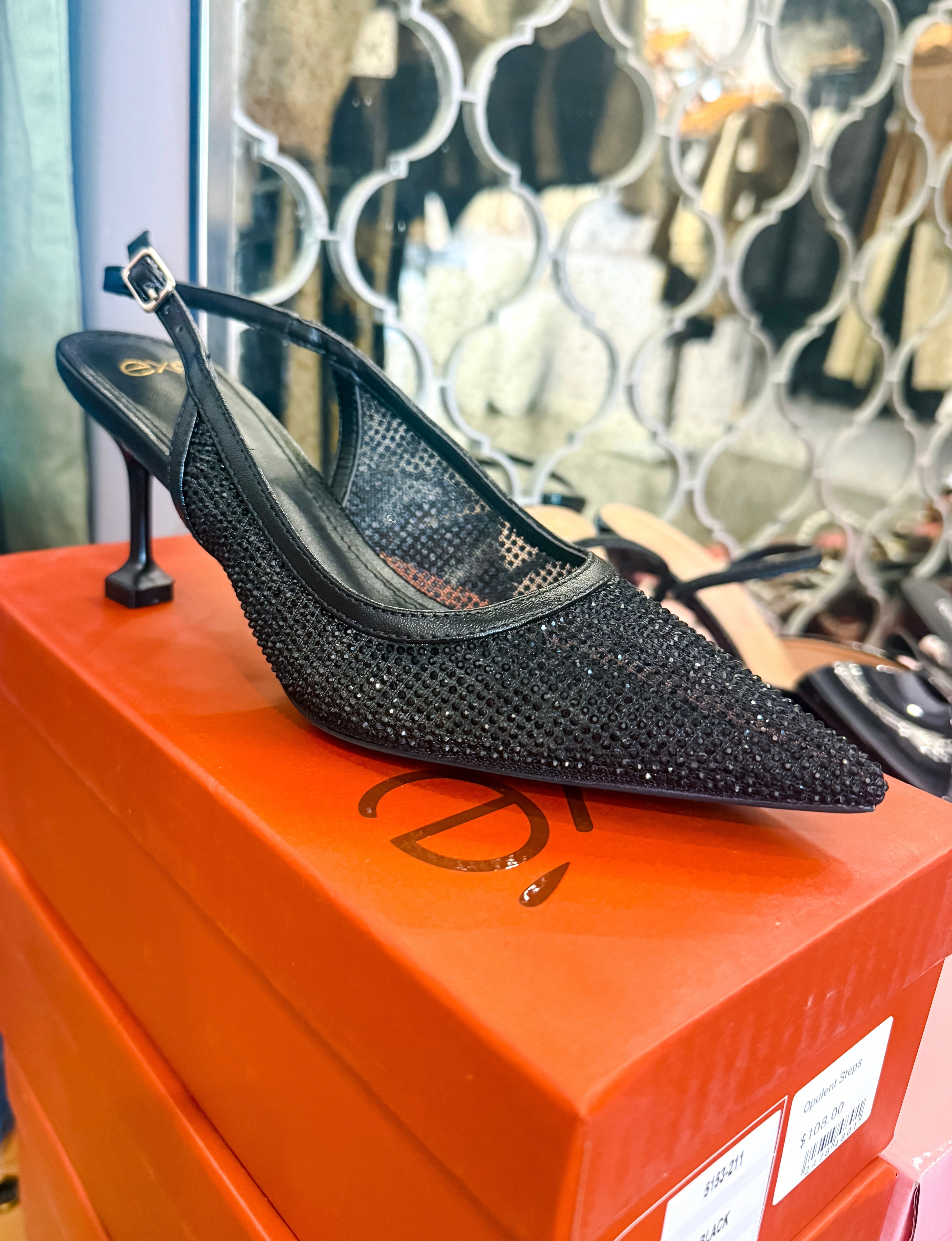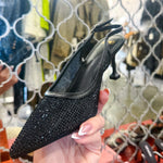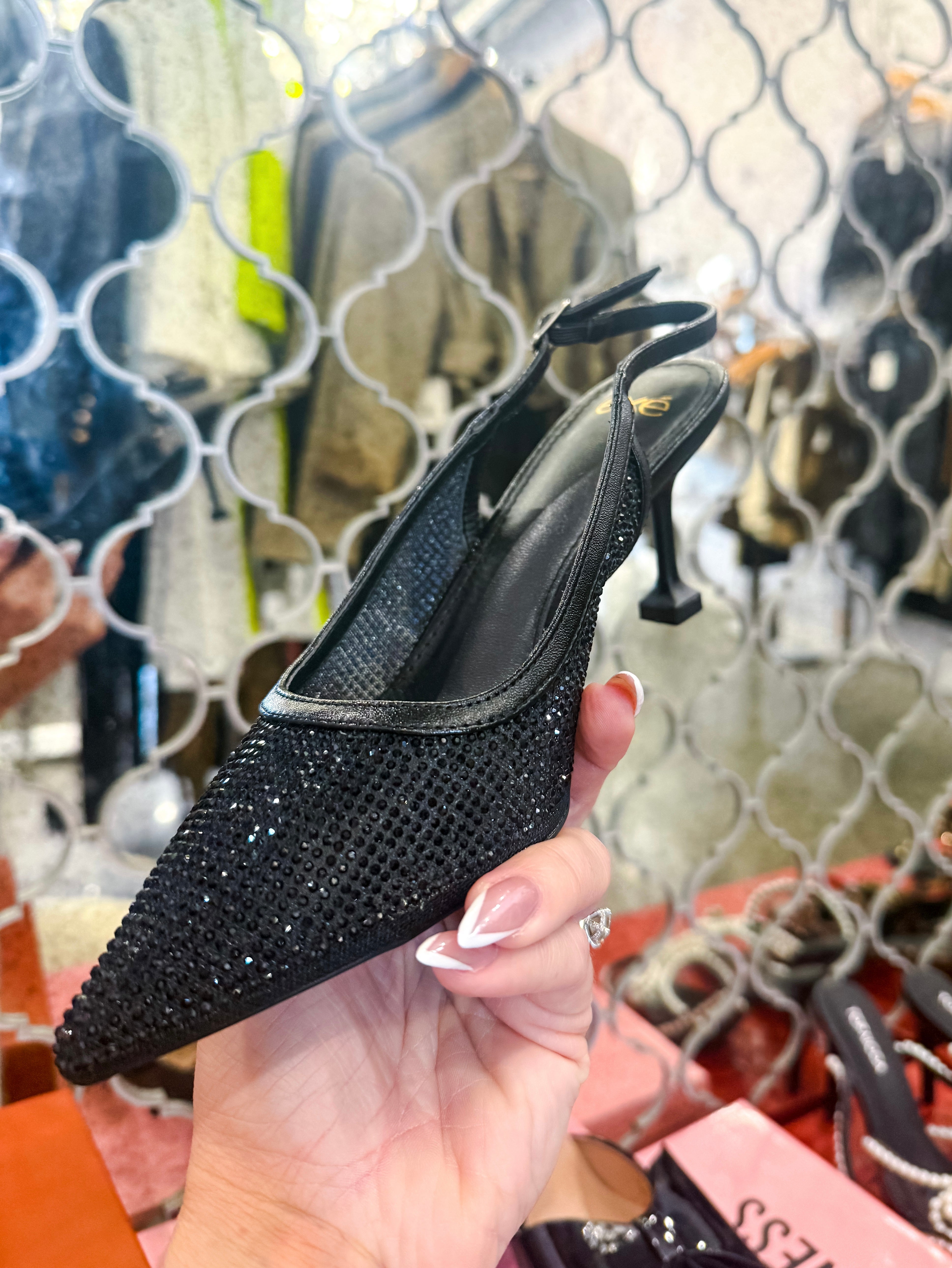 Elevate your evening look with these sophisticated kitten heels, designed for all-day comfort without sacrificing style. The shimmery black glitter detail catches light beautifully, while the slingback strap ensures a secure fit. A wider, stable heel provides confident support, making these heels perfect for those who prefer a lower profile without compromising on elegance. Ideal for dinners, events, or whenever you want to add a touch of glamour to your wardrobe.