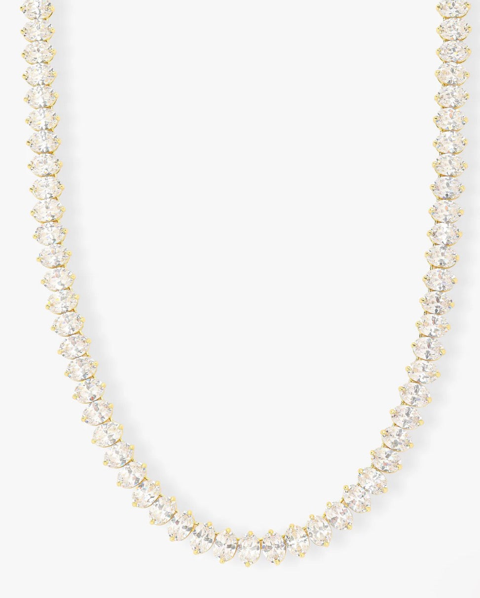 BIG DIAMOND ENERGY. Everything you love about the best-selling pendant necklace in the tennis necklace you NEED. With hand-cut oval simulated diamonds this is the perfect BIG go-to—every day—totally obsessed—never take it off tennis necklace