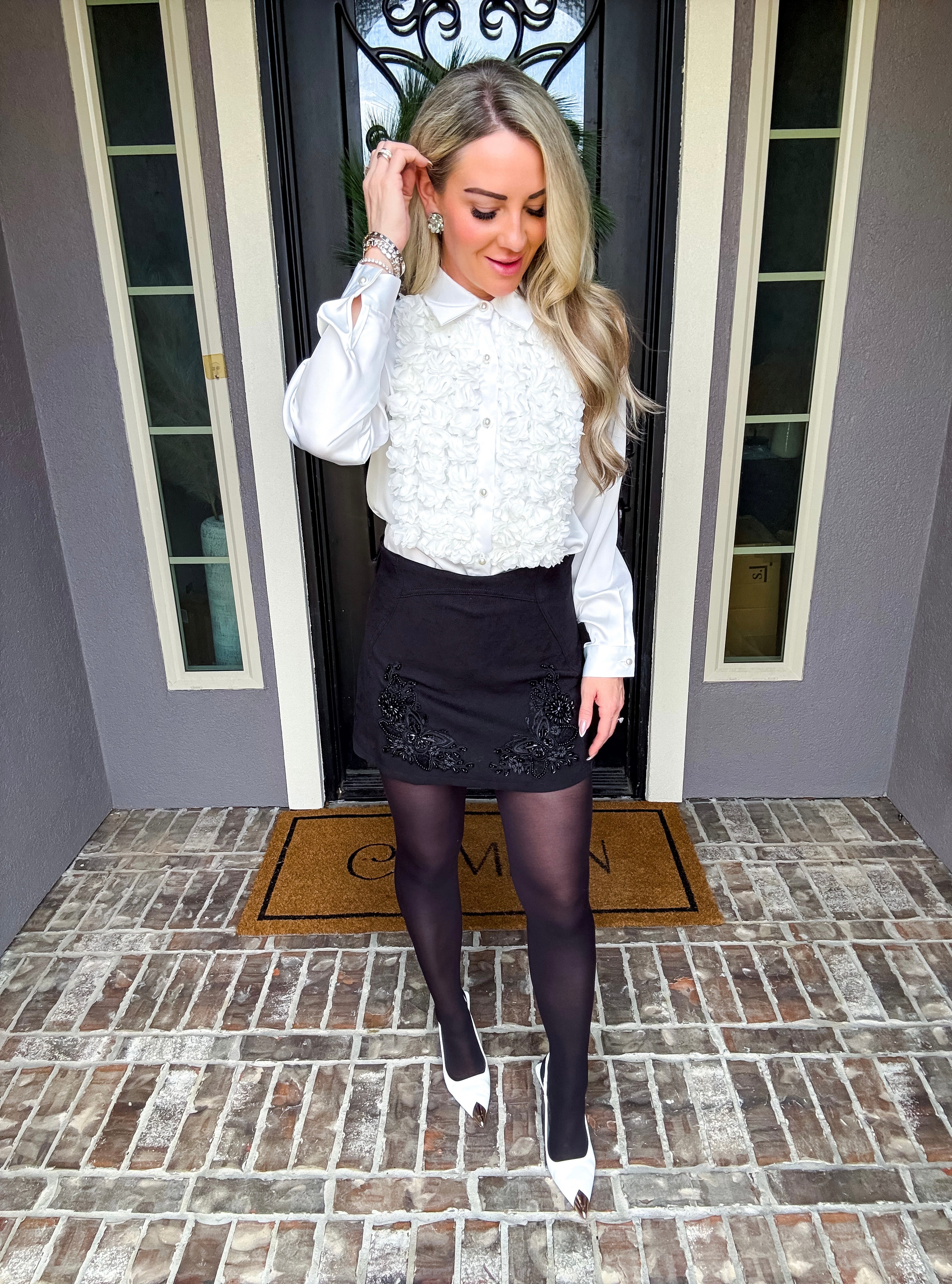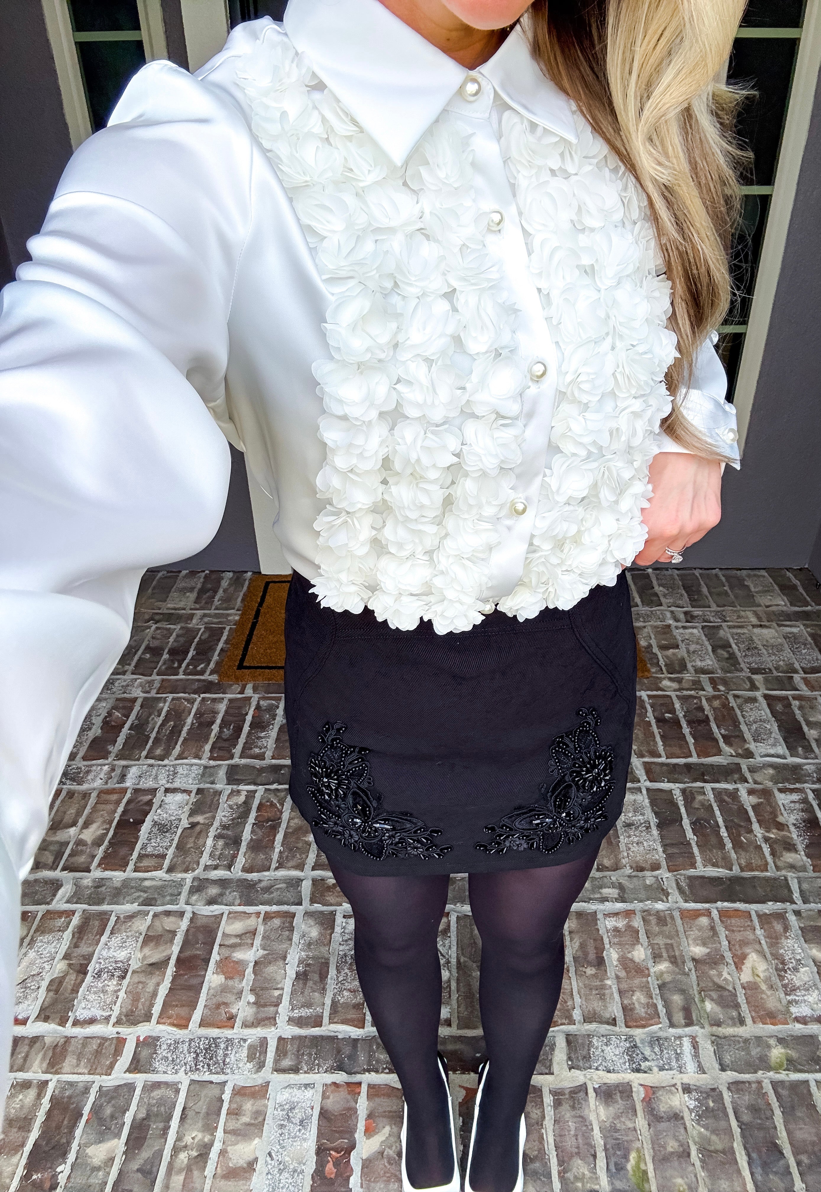 Elevate your wardrobe with this sophisticated beaded skirt, designed for both style and practicality. The front showcases intricate beading that catches the light beautifully, while a discreet back zip ensures a seamless silhouette. Built-in shorts provide comfort and freedom of movement, making this piece perfect for all-day wear. Crafted from a textured corduroy-like fabric, it offers subtle depth and visual interest with a refined finish that pairs effortlessly with your favorite tops.