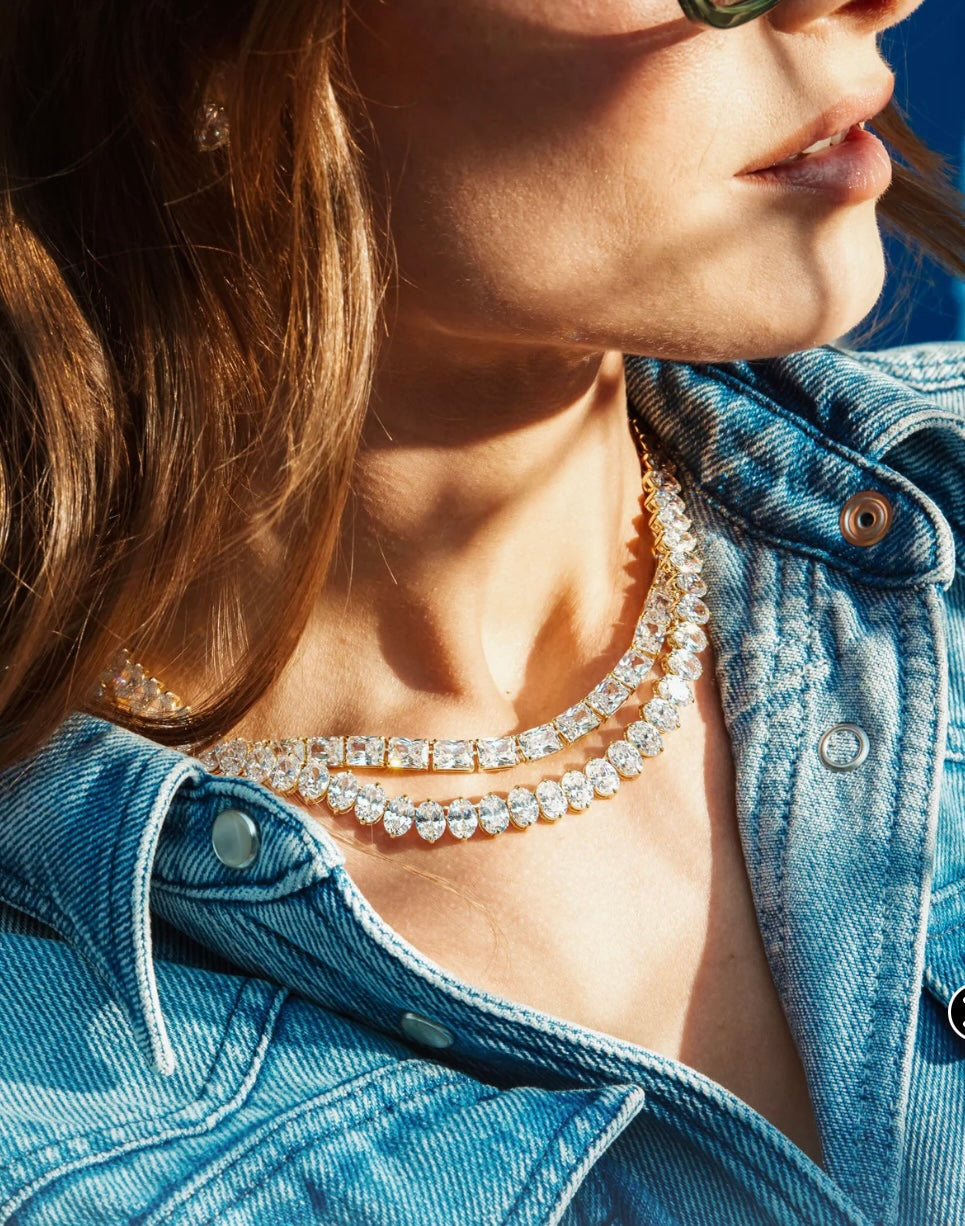 Not Your Basic Graduated Tennis Necklace 16" - Gold