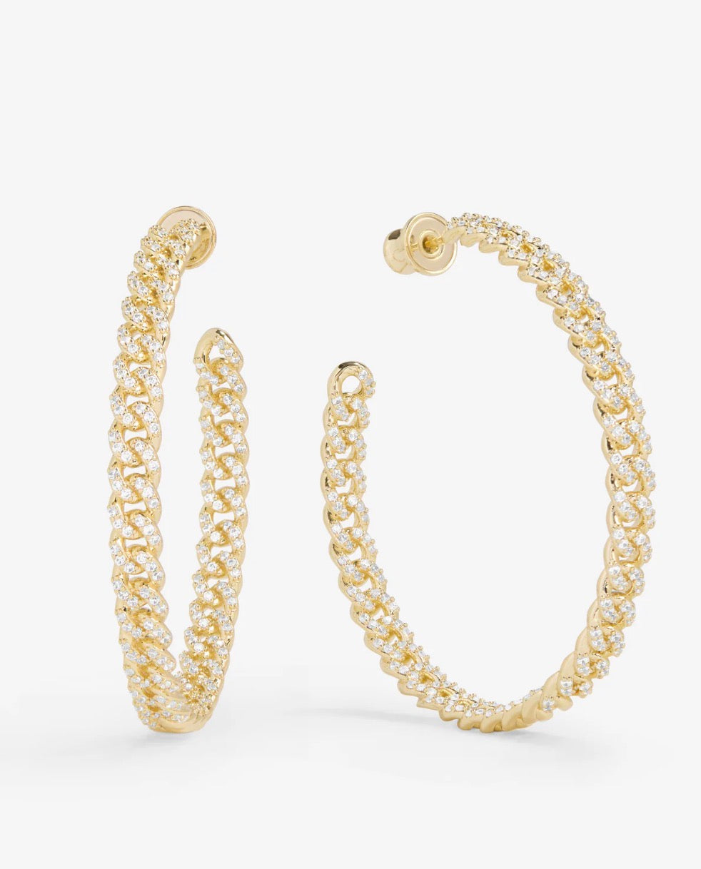 Pavé Julian Chain Hoops 2" - Gold