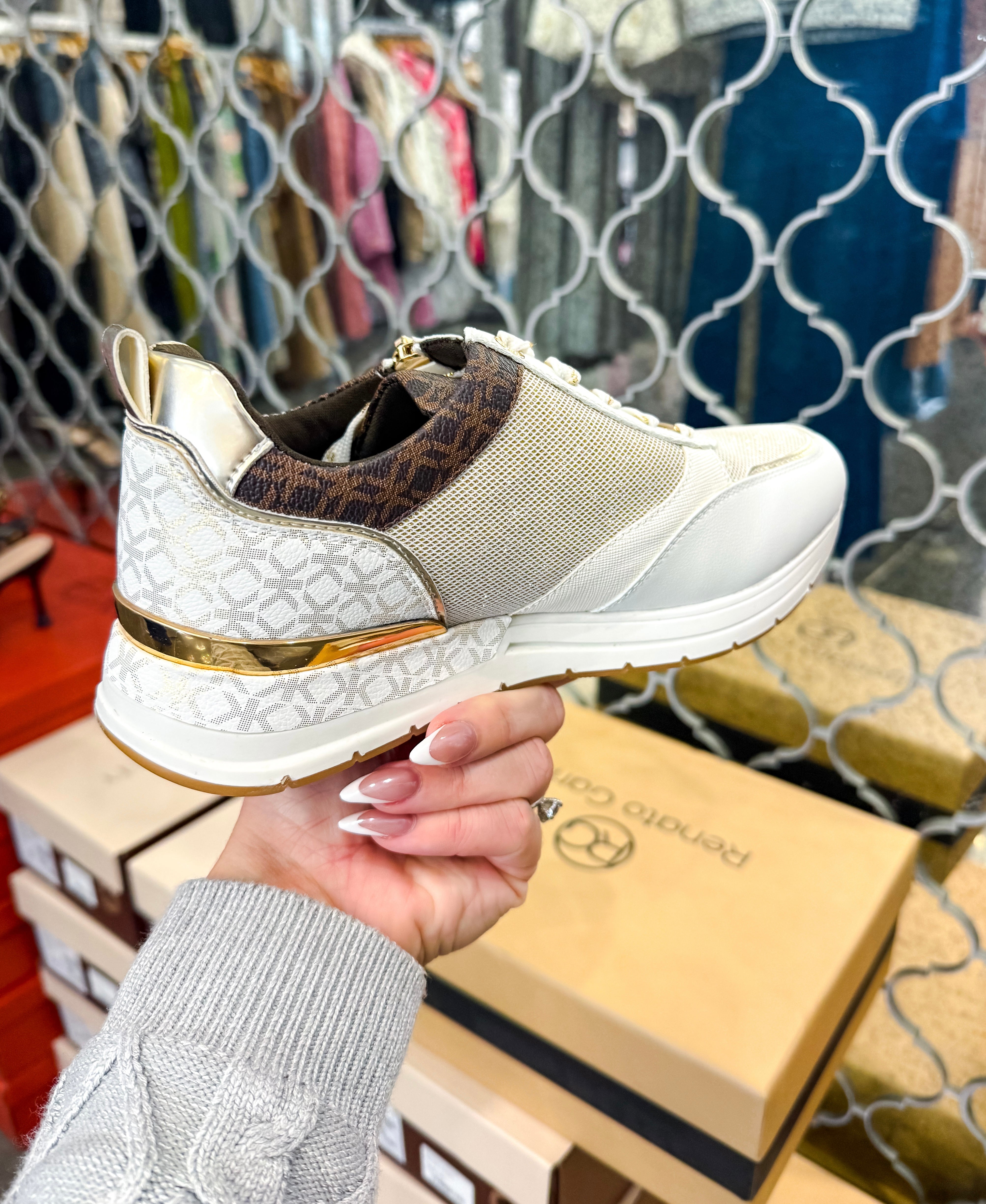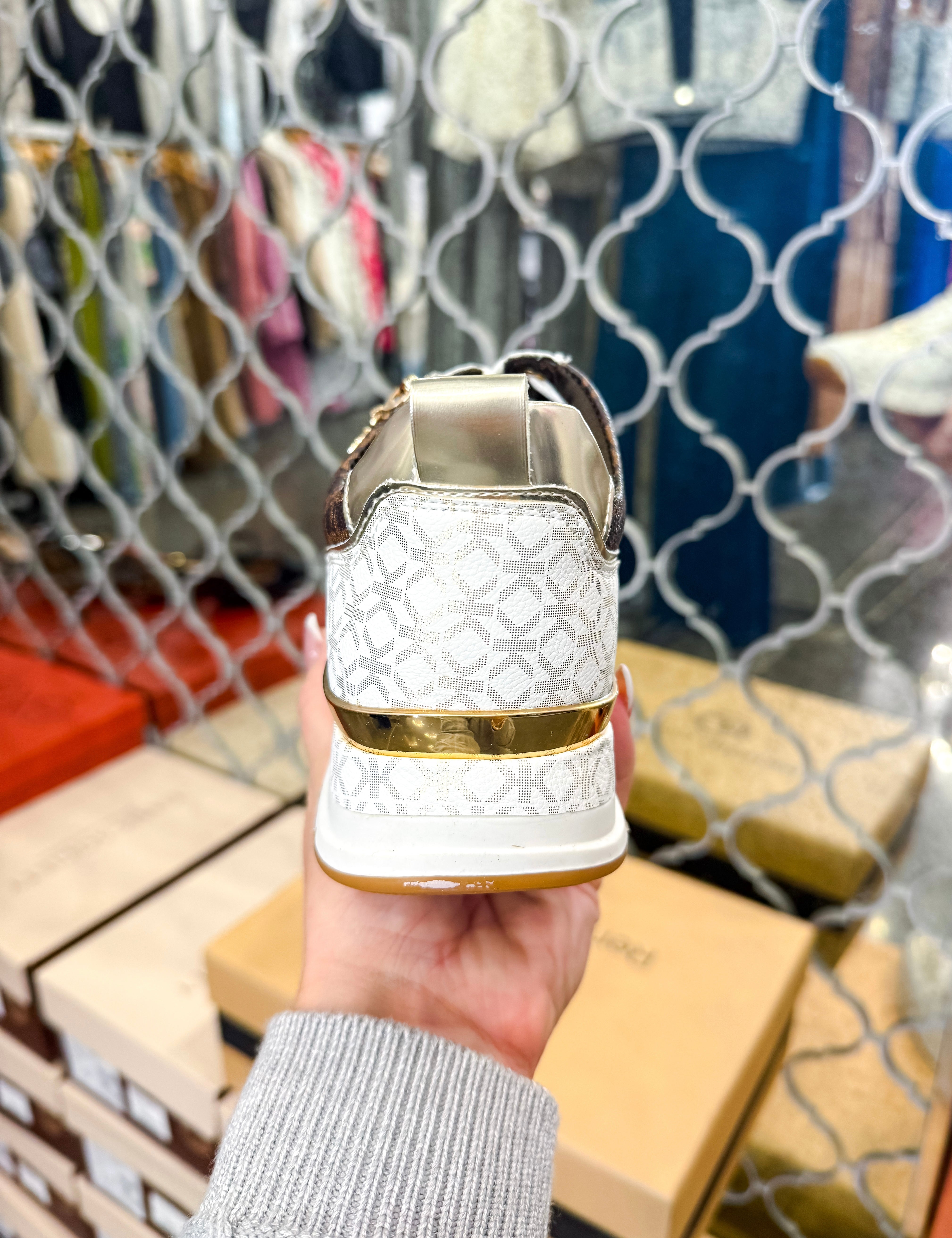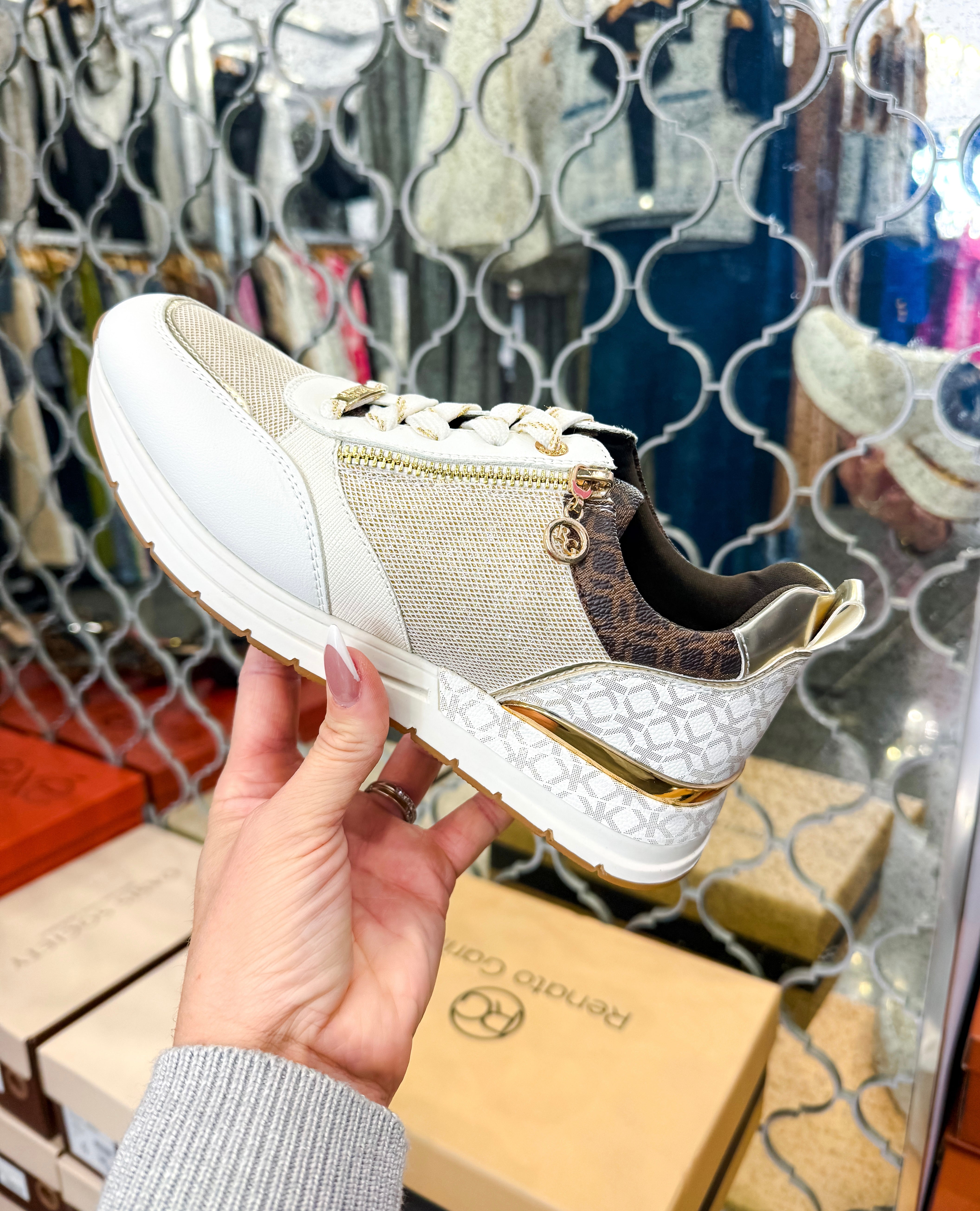 Elevate your footwear collection with the Empire Chic Gold Sneaker, crafted for effortless style and convenience. Its shimmering gold accents create a luxurious look, while the side zipper provides easy slip-on access without compromising design. Perfect for those who appreciate both fashion-forward details and practical wearability.