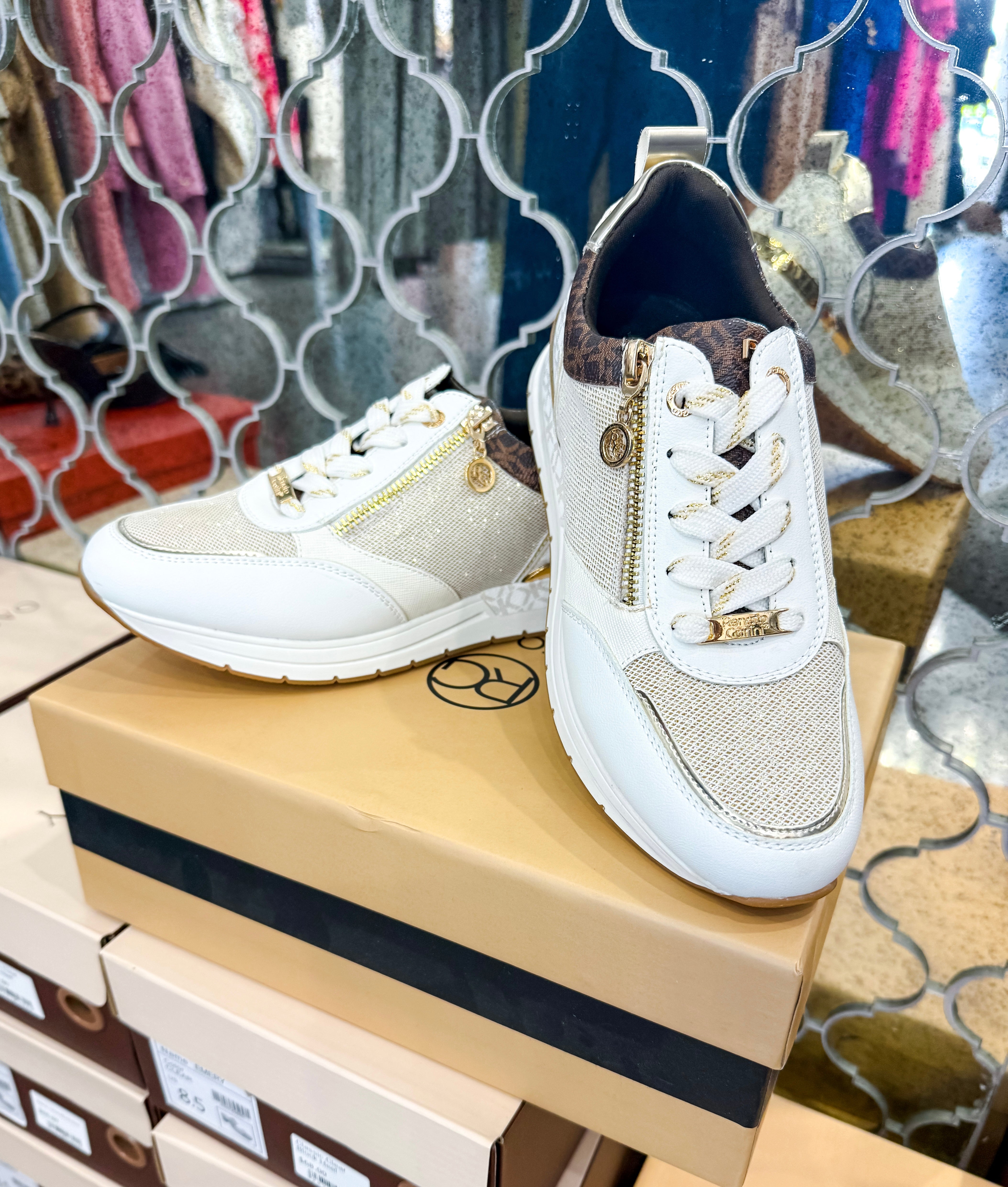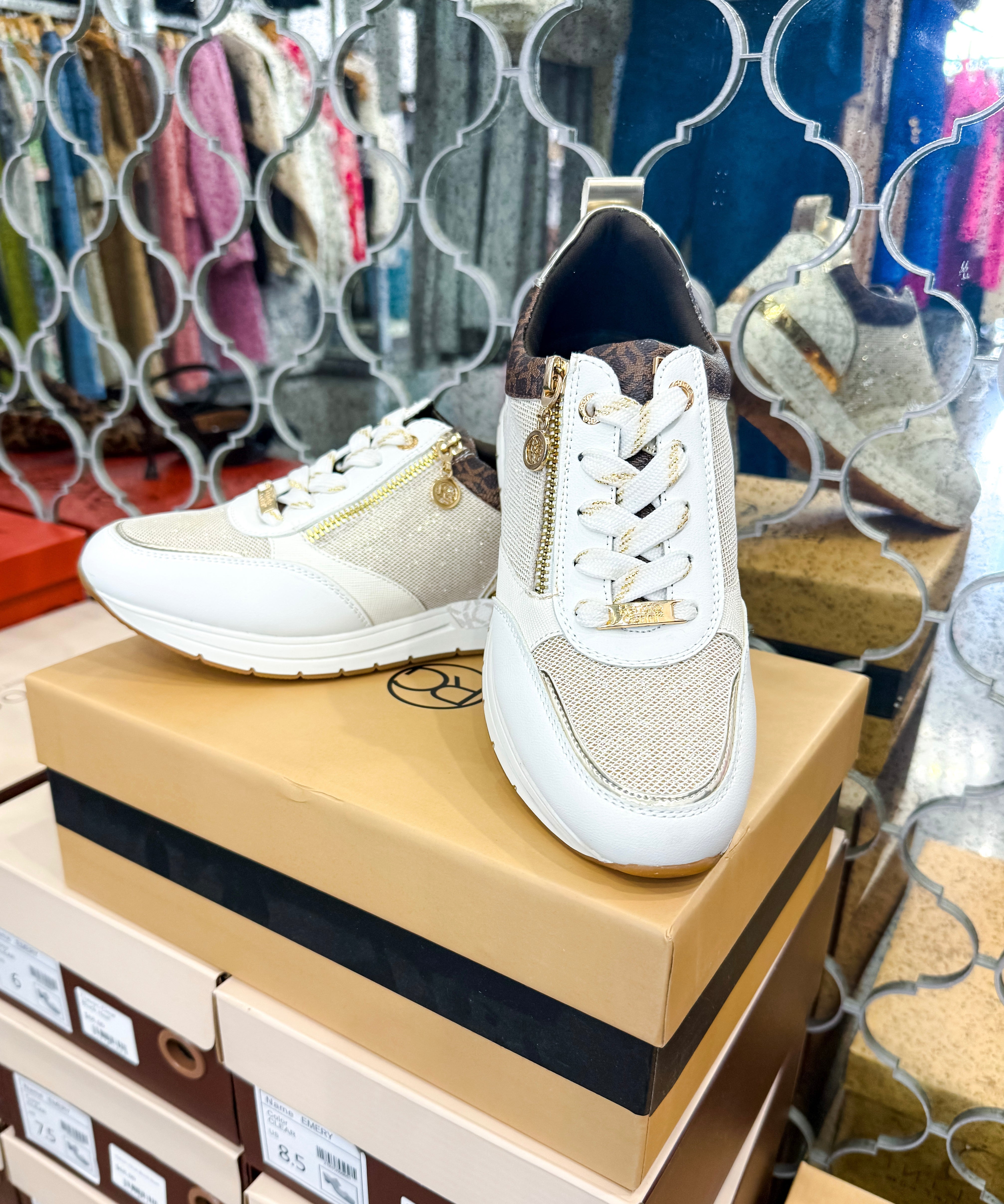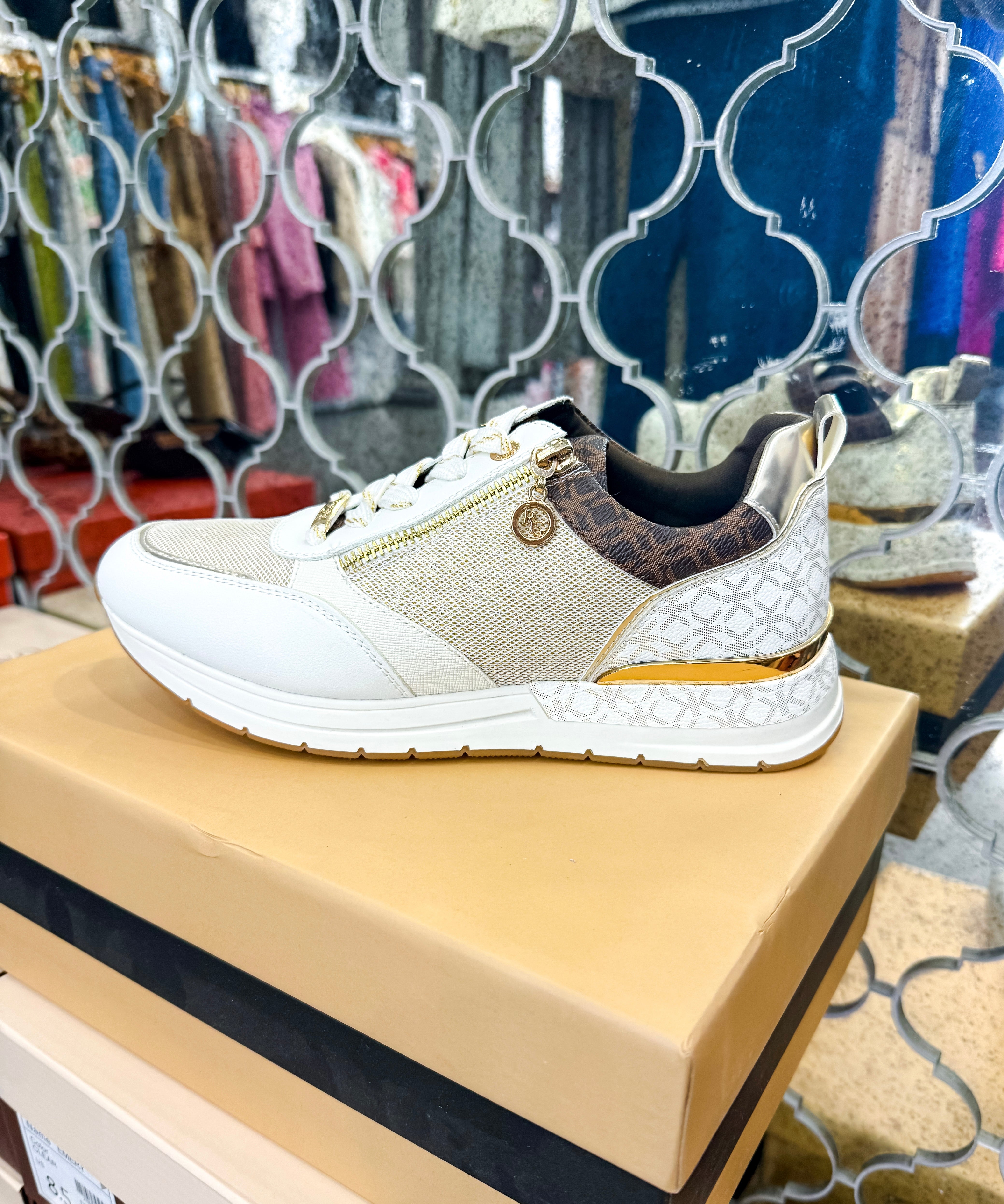 Elevate your footwear collection with the Empire Chic Gold Sneaker, crafted for effortless style and convenience. Its shimmering gold accents create a luxurious look, while the side zipper provides easy slip-on access without compromising design. Perfect for those who appreciate both fashion-forward details and practical wearability.