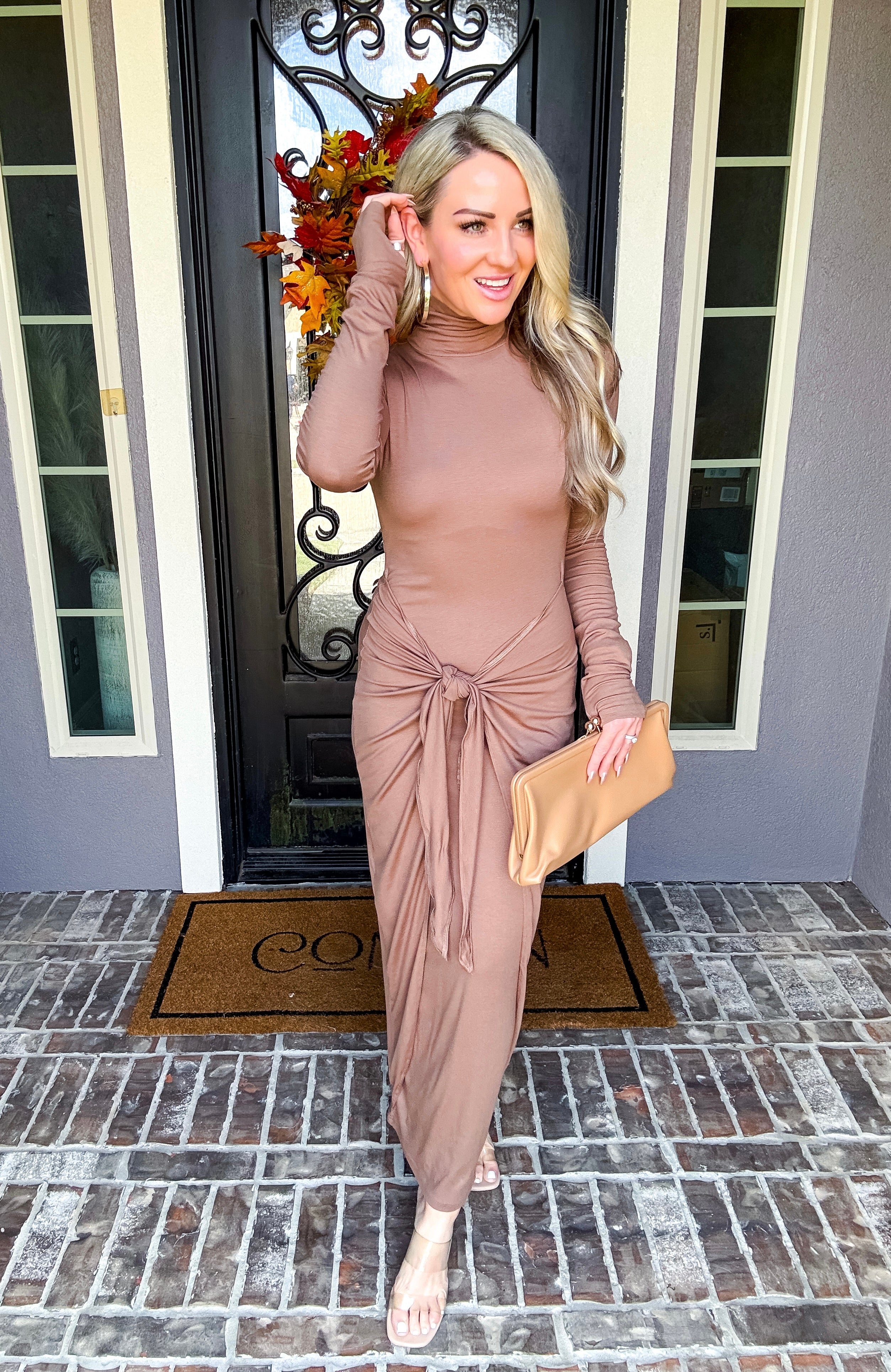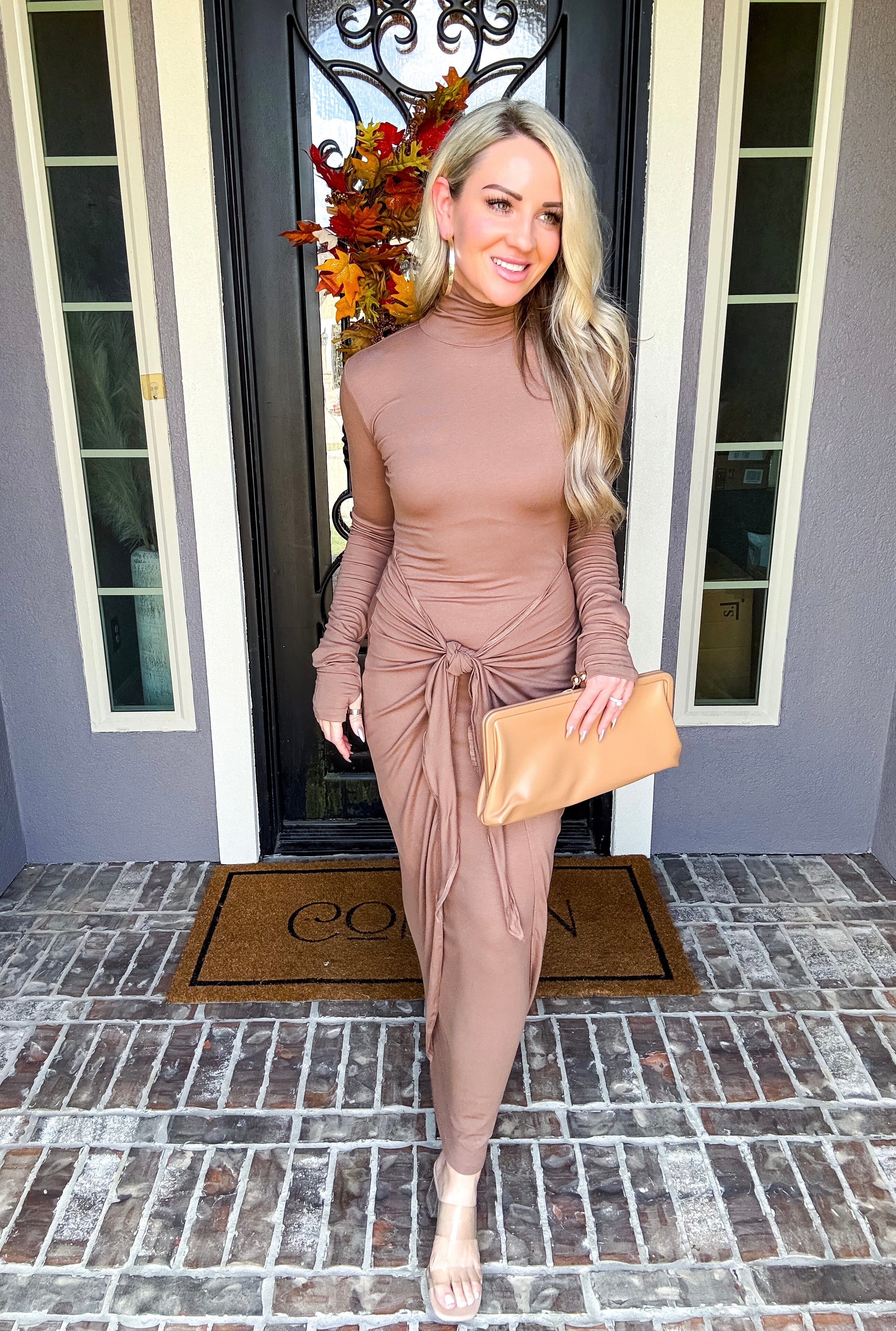 The Chantelle Front Tie Dress combines a gorgeous color palette with ultra-stretchy, comfortable fabric designed for all-day wear. Its mockneck silhouette and adjustable waist tie work together to flatter your figure by smoothing and concealing any areas you prefer to hide. Perfectly balancing style and comfort, this dress offers a sleek, polished look adaptable for various occasions.