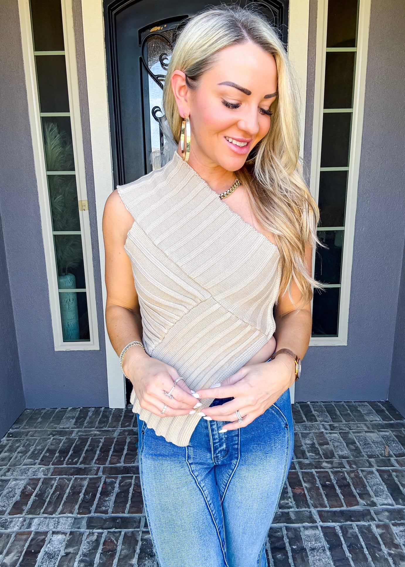 Sonoma Chic One Shoulder Top - Taupe