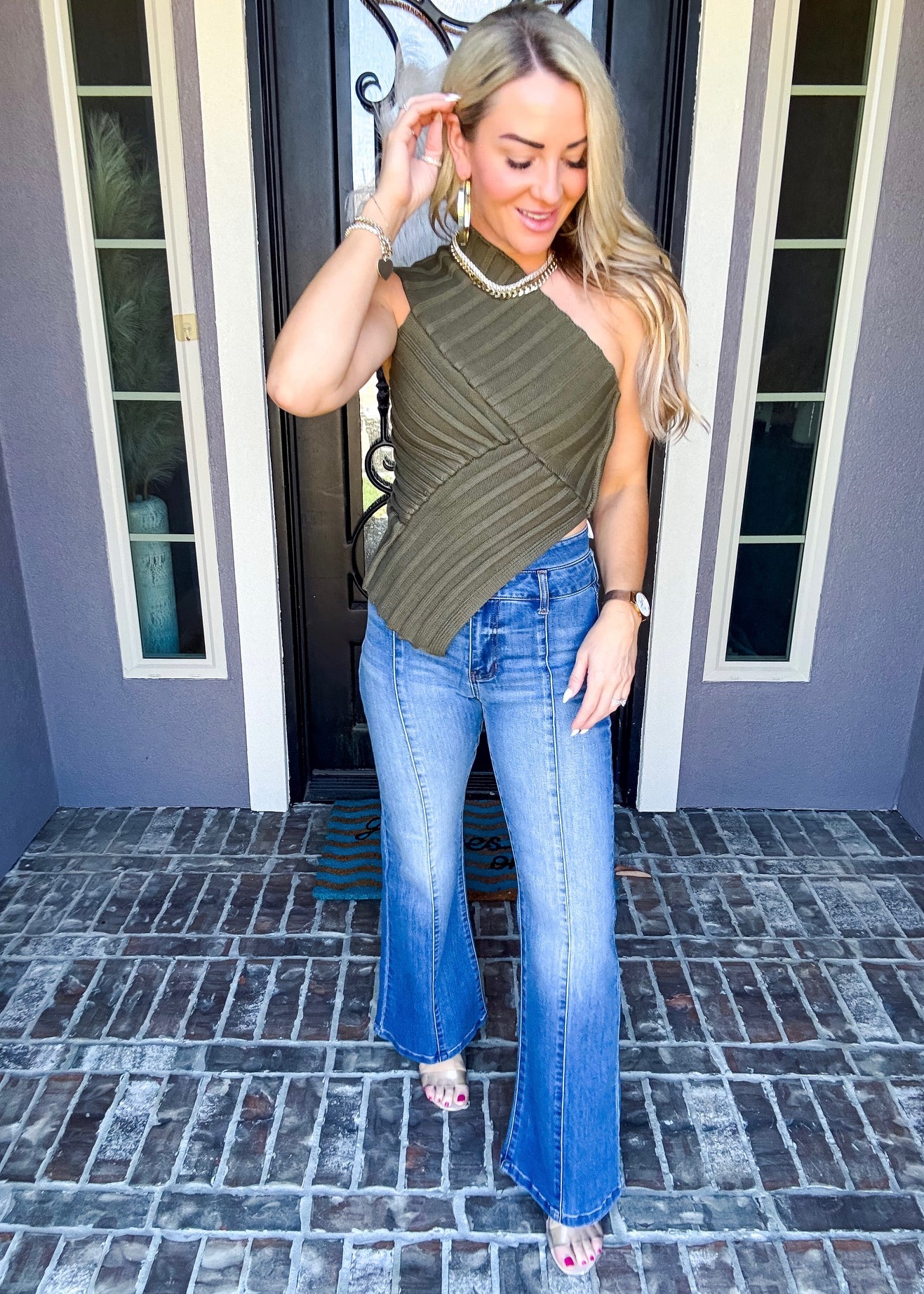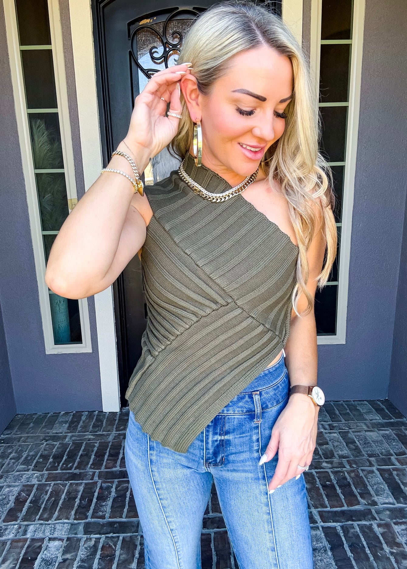 Sonoma Chic One Shoulder Top - Olive