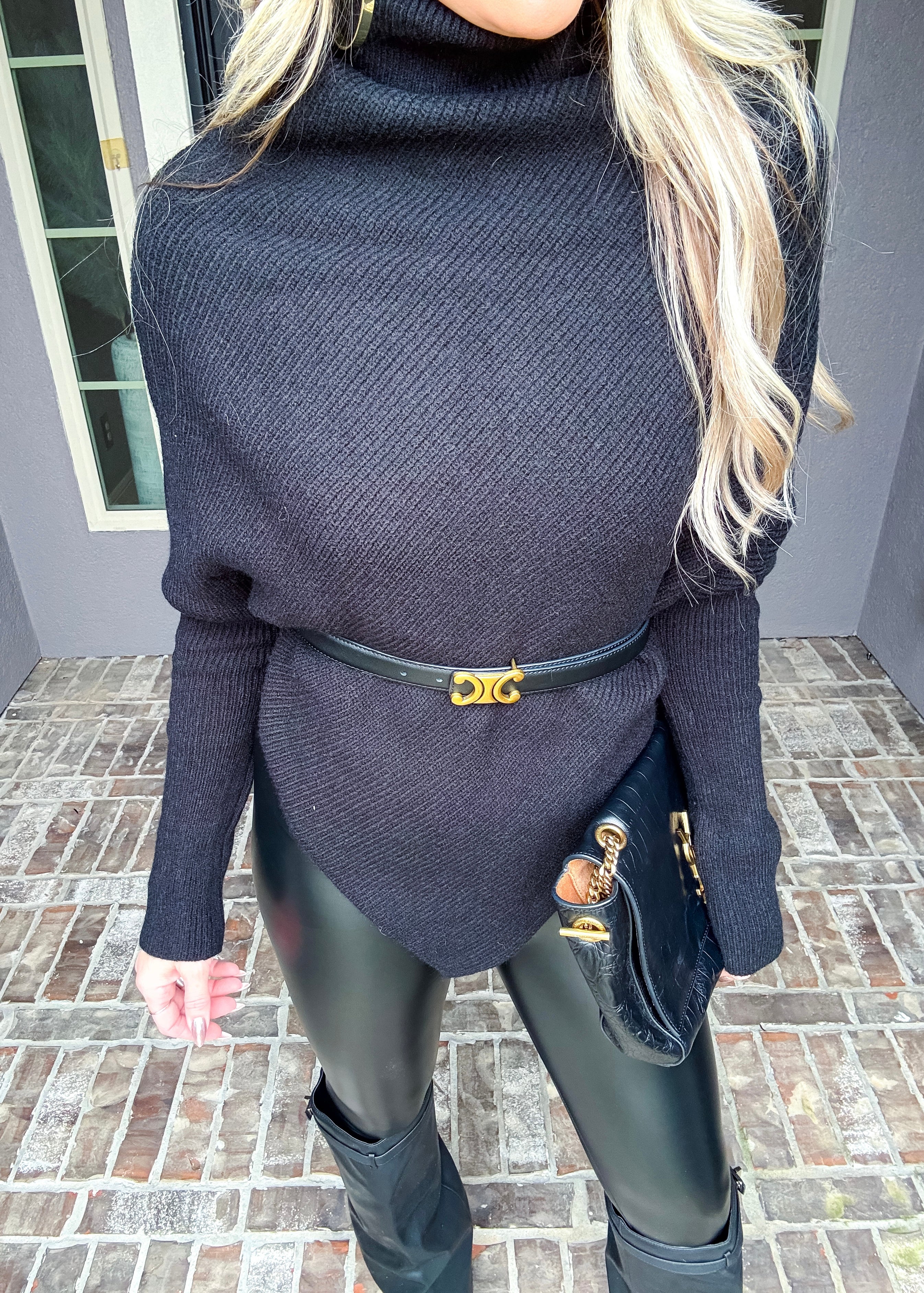 Casual Glam Asymmetric Batwing Turtleneck