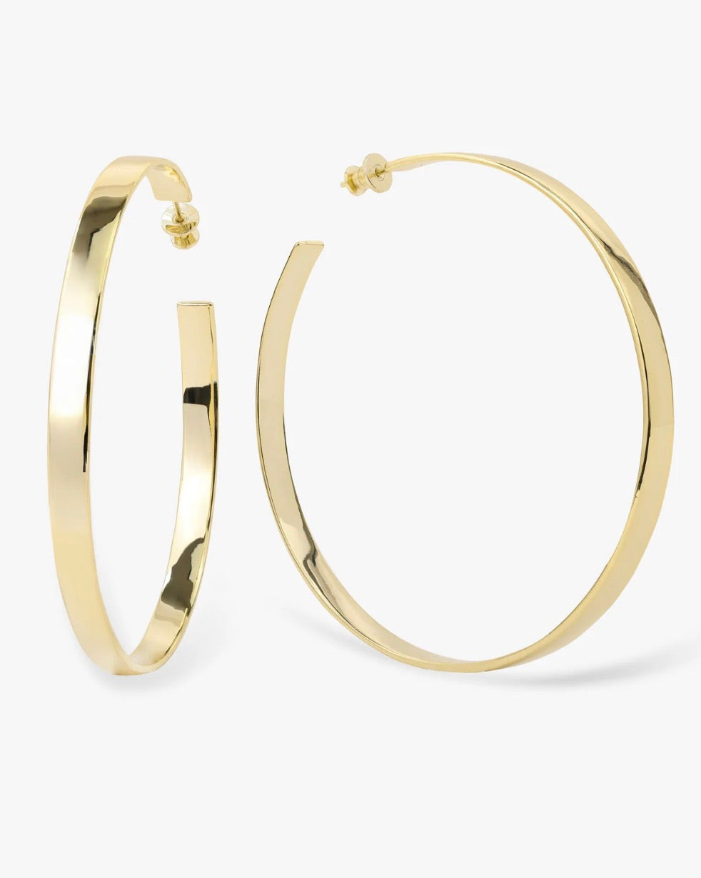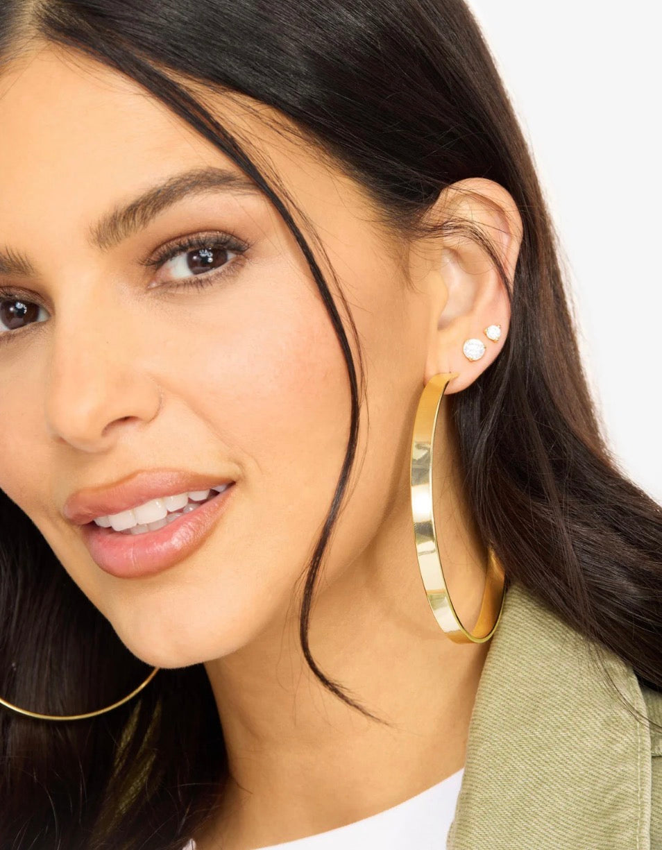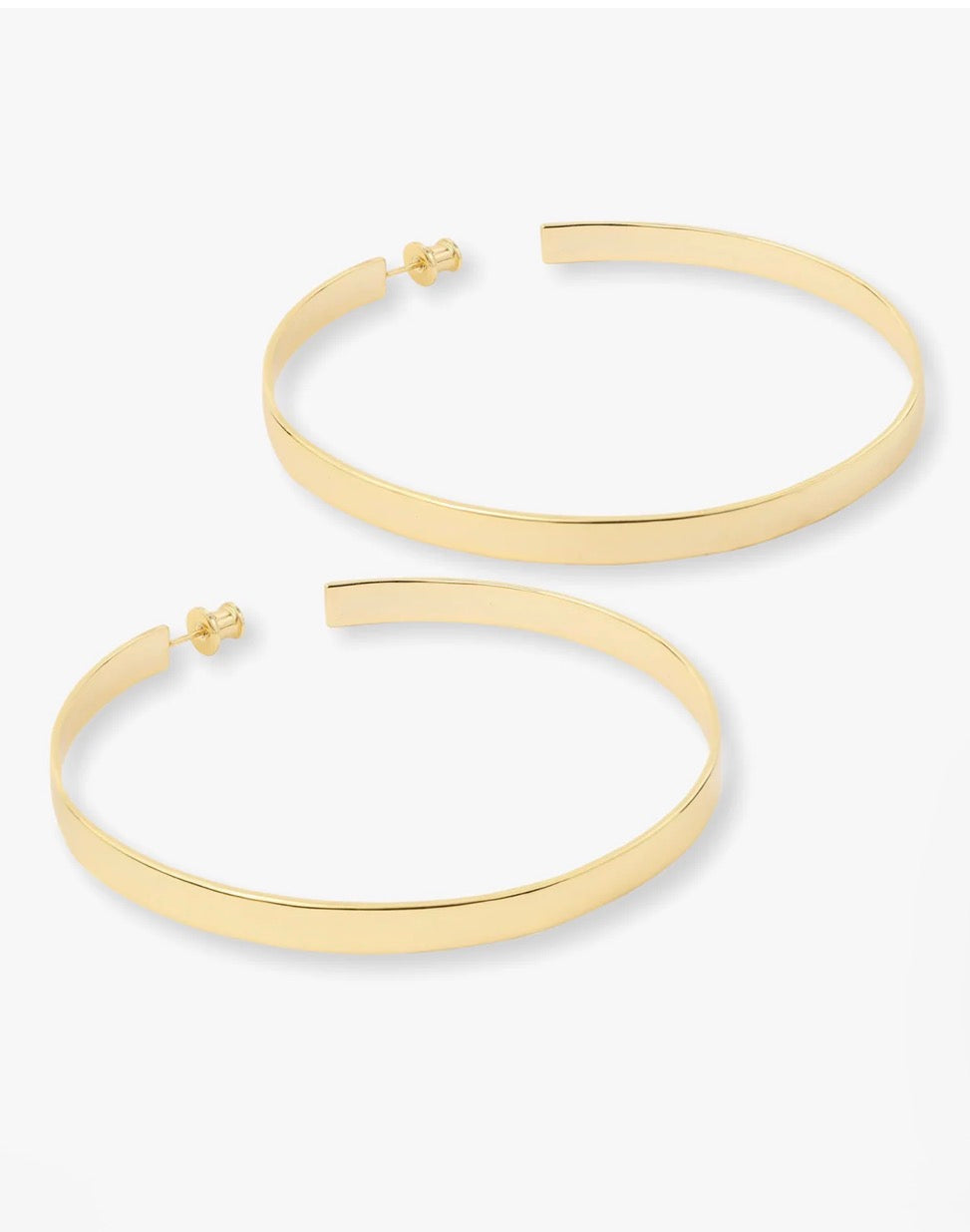 The Atlas Hoops 3" are designed to put you on the map, delivering a genuinely oversized, bold statement. These chunky gold hoops feature a substantial 6mm width and a massive 3-inch diameter, guaranteeing maximum visual impact. The highly reflective 18k gold plated finish highlights the modern, smooth tube design, creating a contemporary aesthetic that is impossible to ignore. Wear them solo to showcase their size or stack them up for undeniable glam.