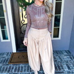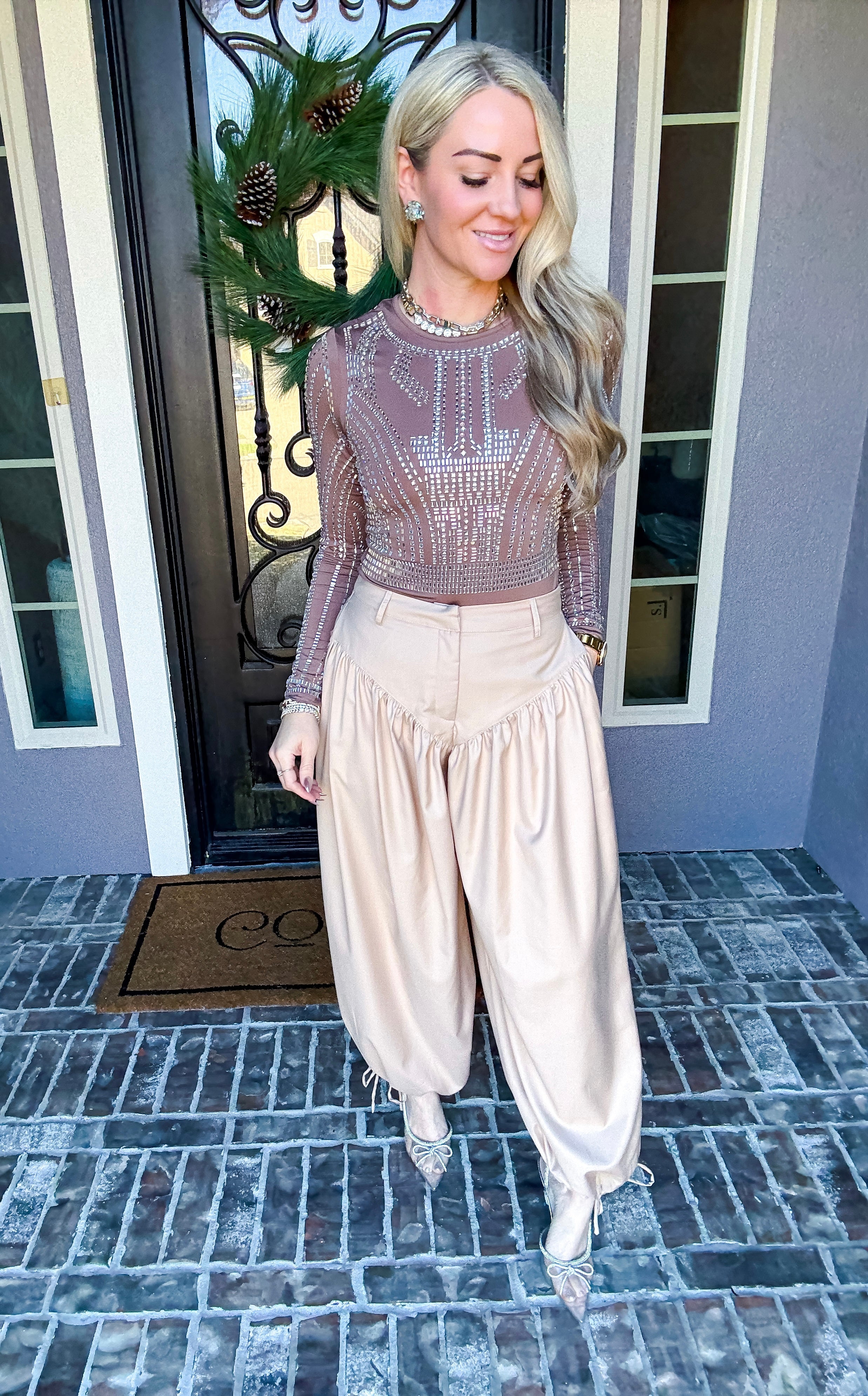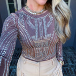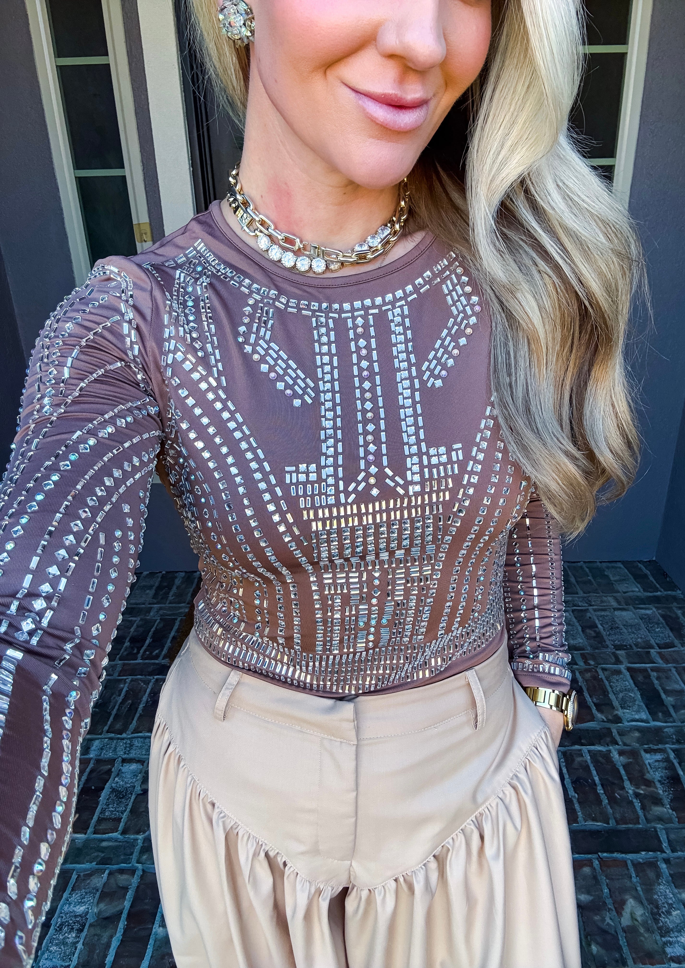 Elevate your wardrobe with the Diamond District Jewel Bodysuit, where intricate jeweled embellishments meet versatile styling. Crafted from stretchy, form-fitting fabric, this piece transitions seamlessly from casual to formal occasions. The shimmering jewel details catch the light beautifully, adding instant sophistication to any look. Layer it under blazers for polished elegance or wear solo for a statement-making ensemble. A wardrobe essential that adapts to your lifestyle.