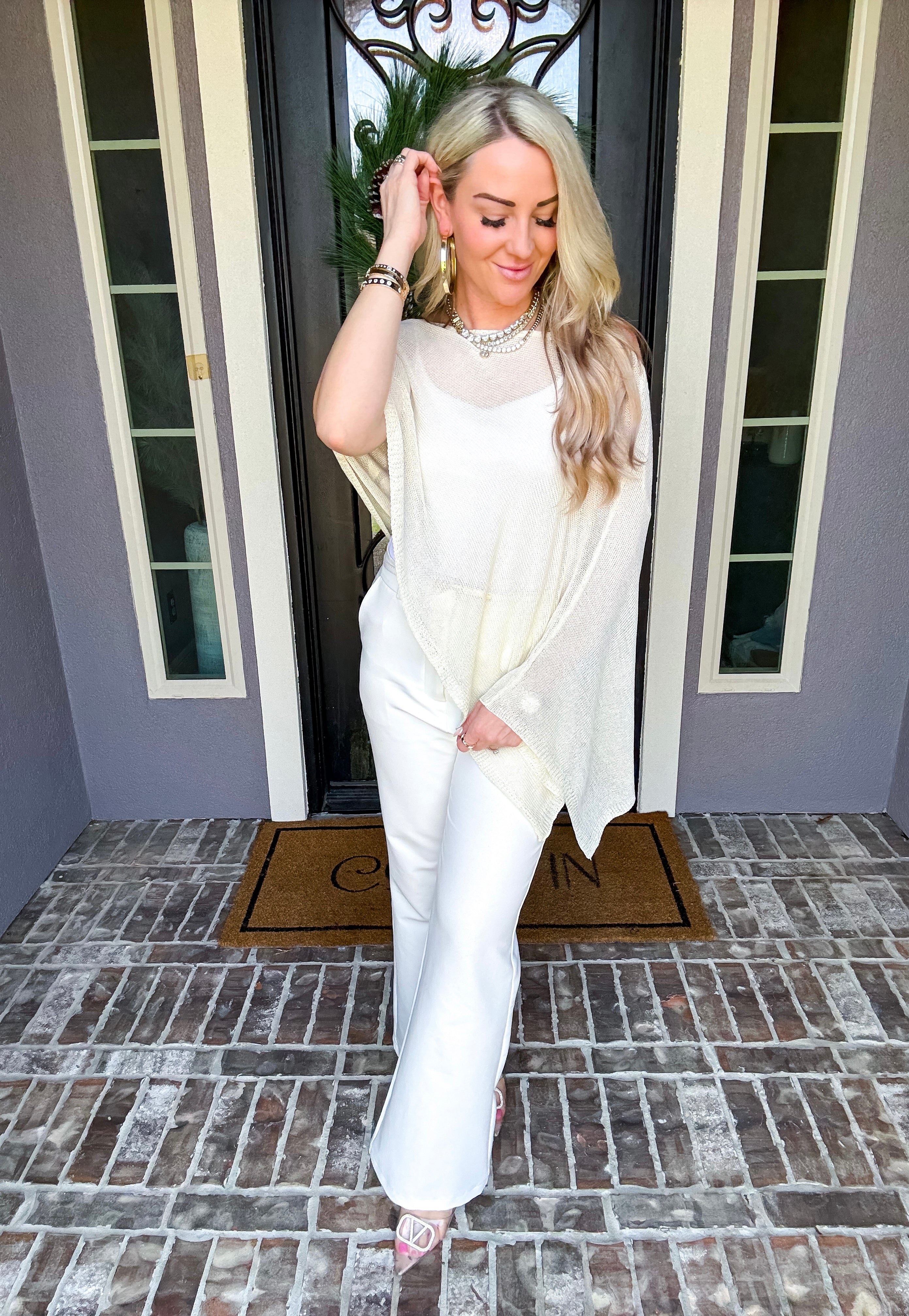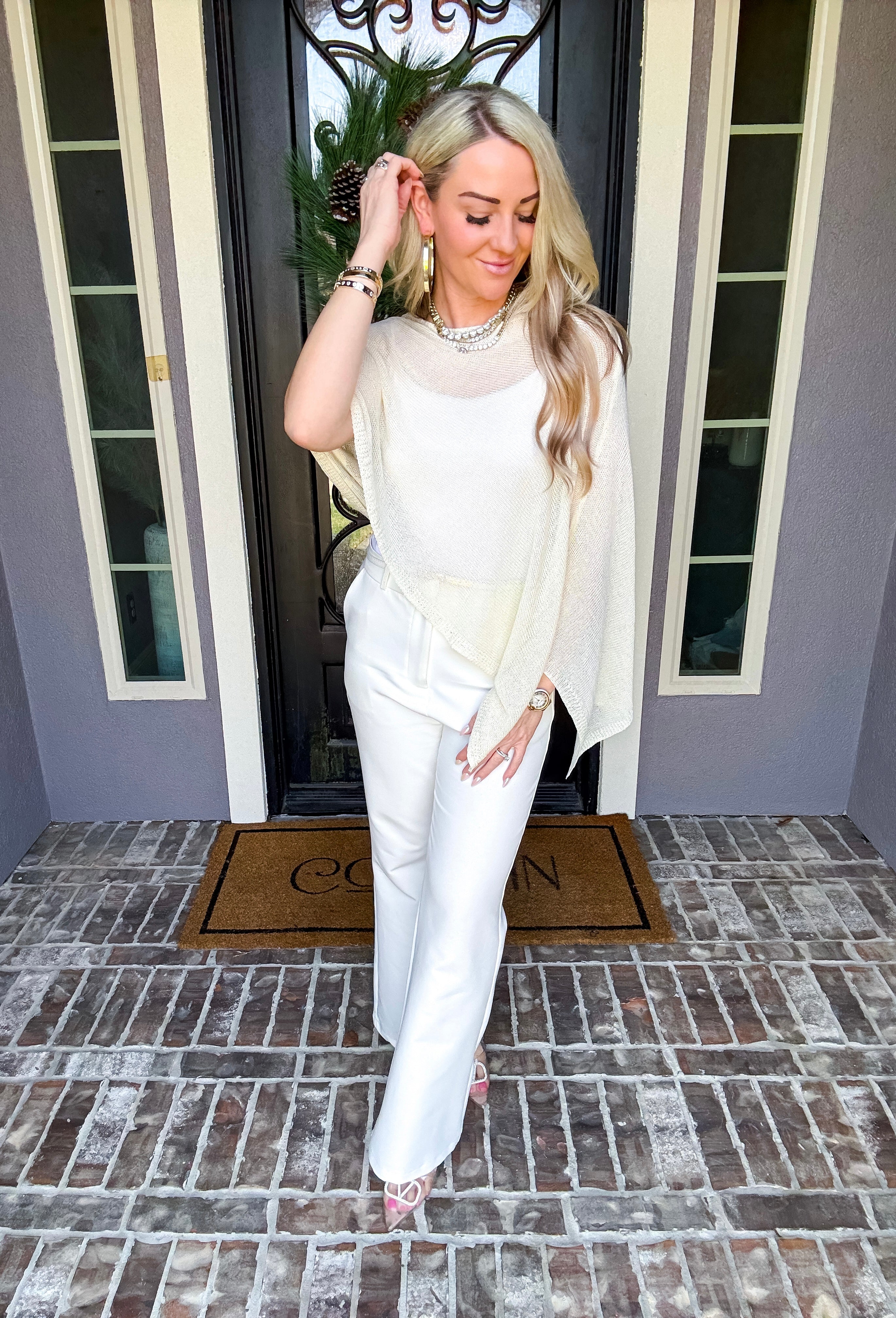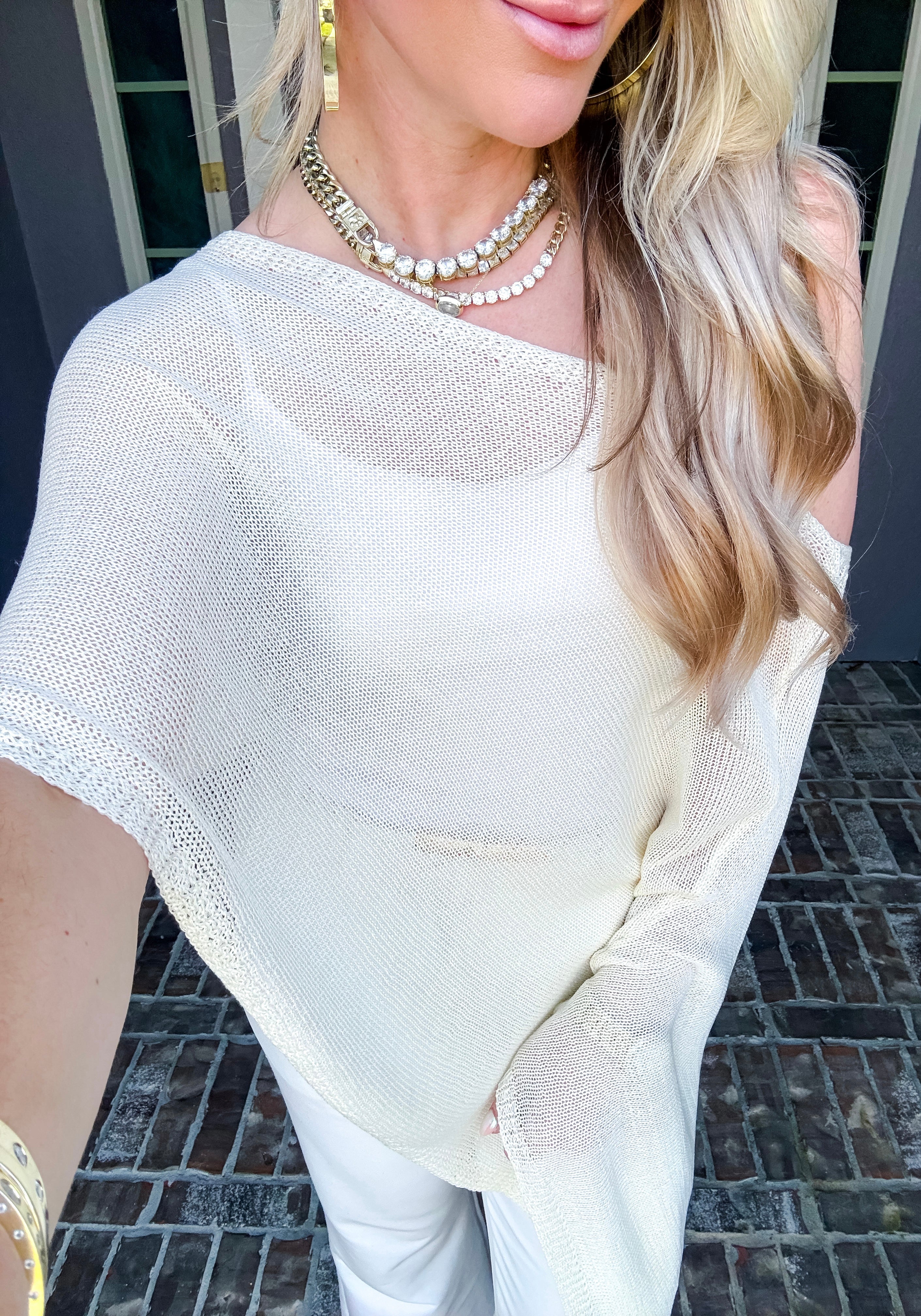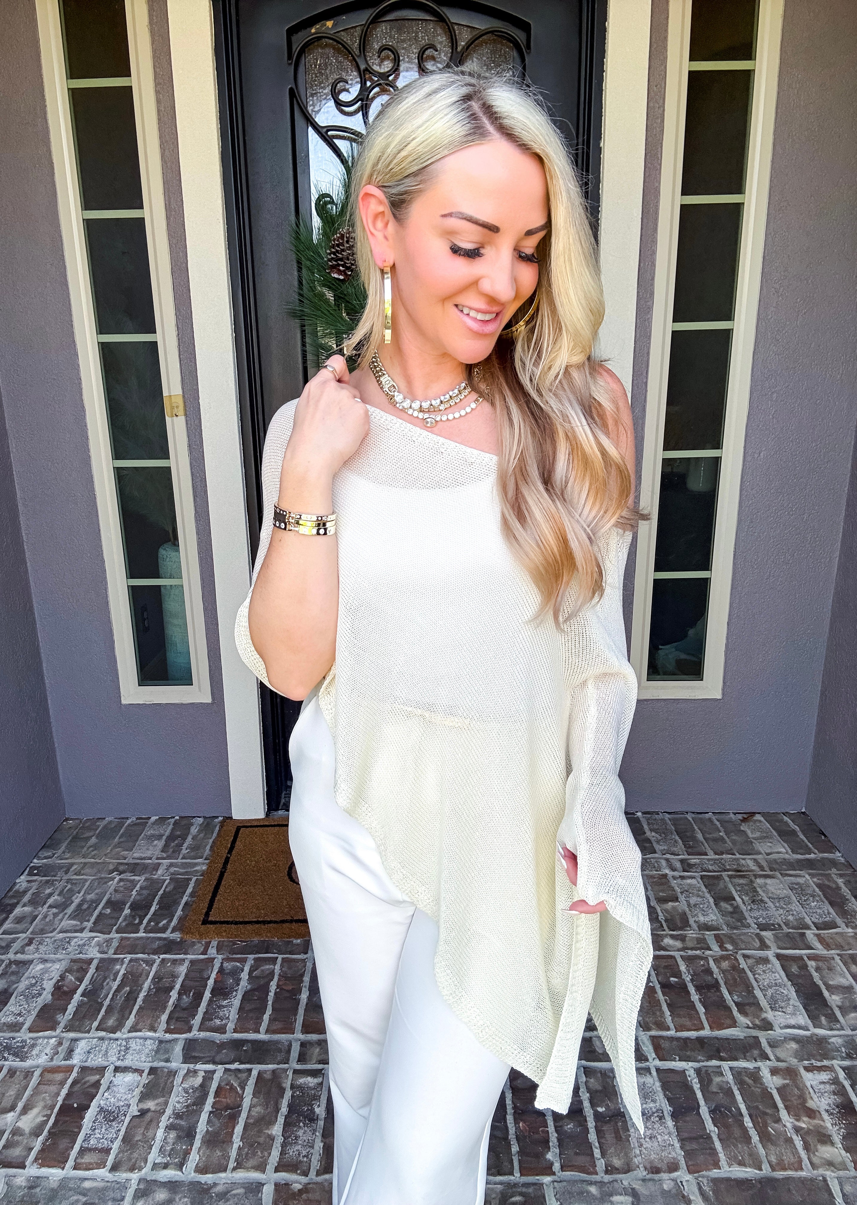 Elevate your wardrobe with this sophisticated off-shoulder shawl, designed to drape beautifully over any top. Its elegant silhouette adds a touch of class to casual and formal looks alike, making it the perfect layering piece for year-round styling. Versatile, timeless, and effortlessly chic.
