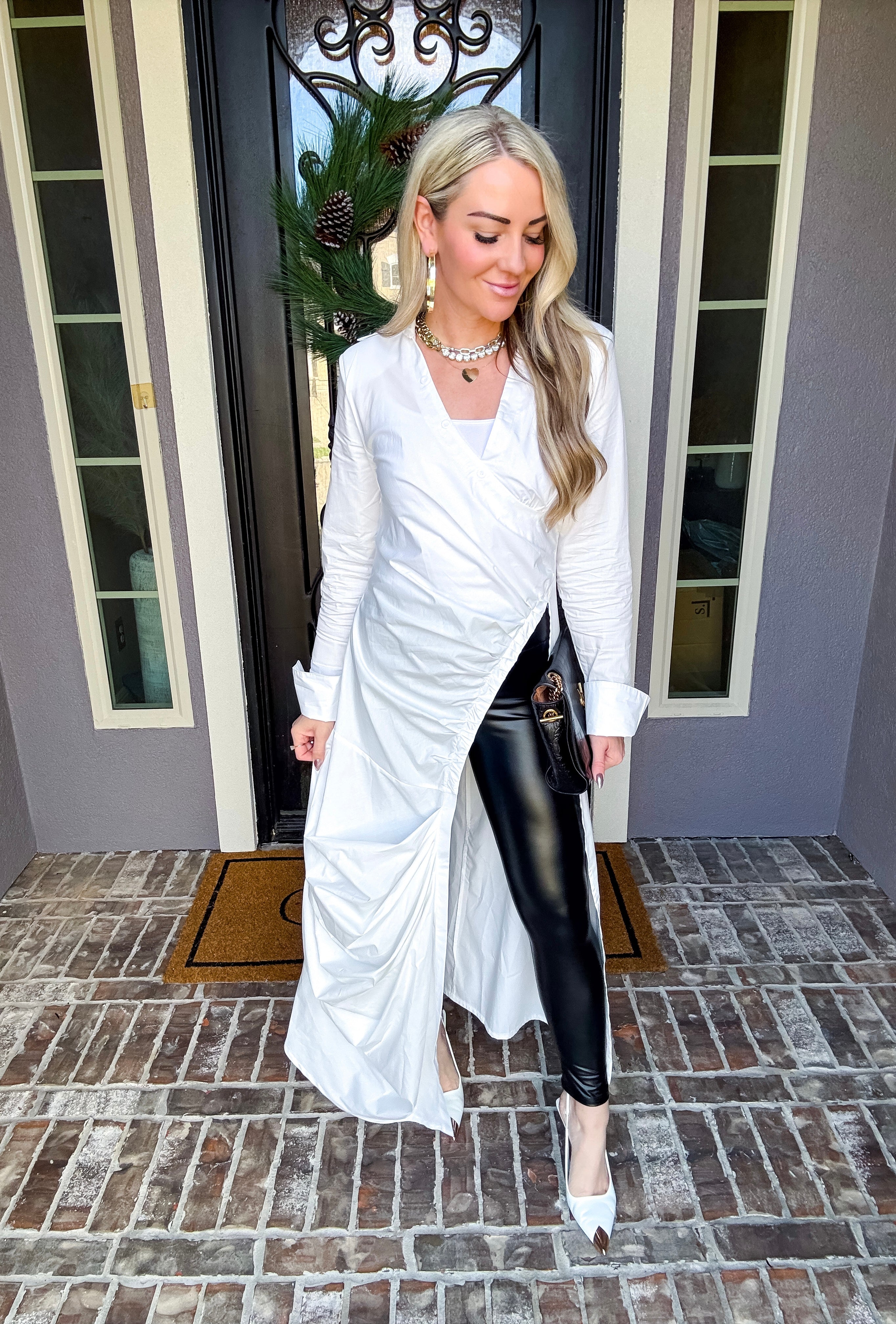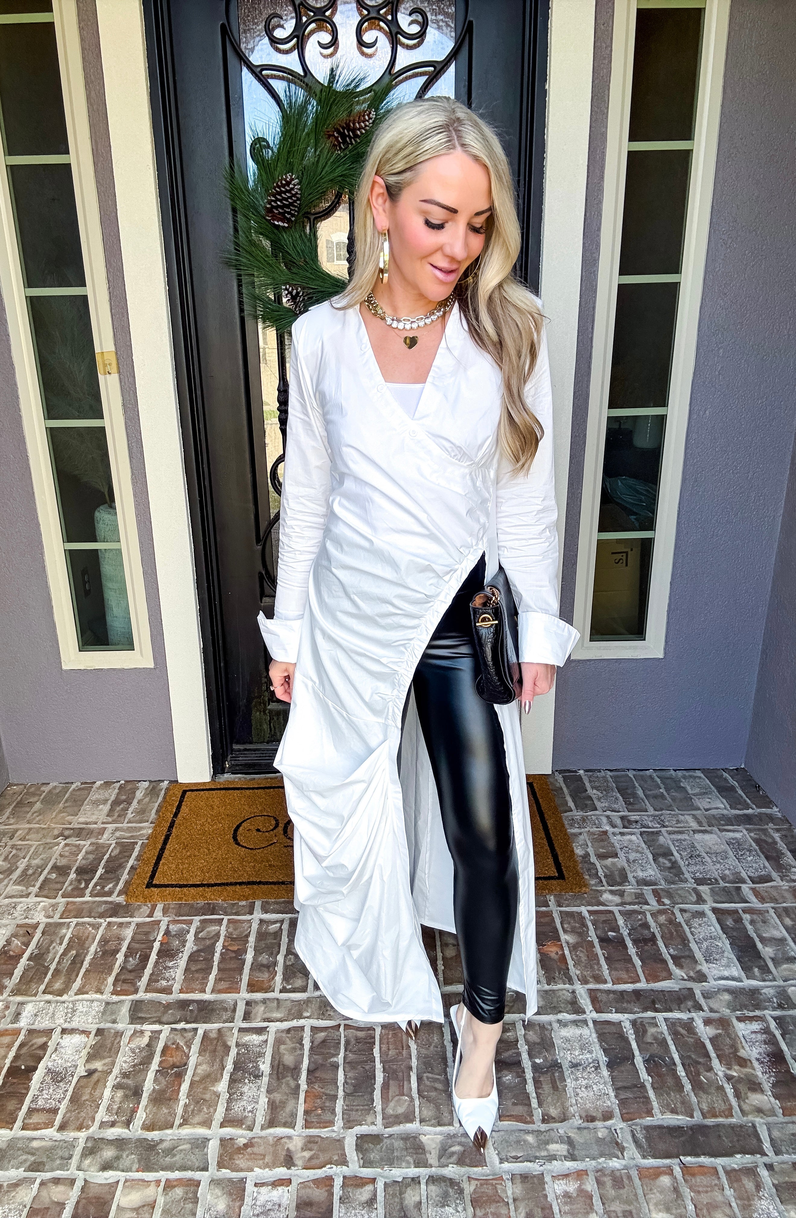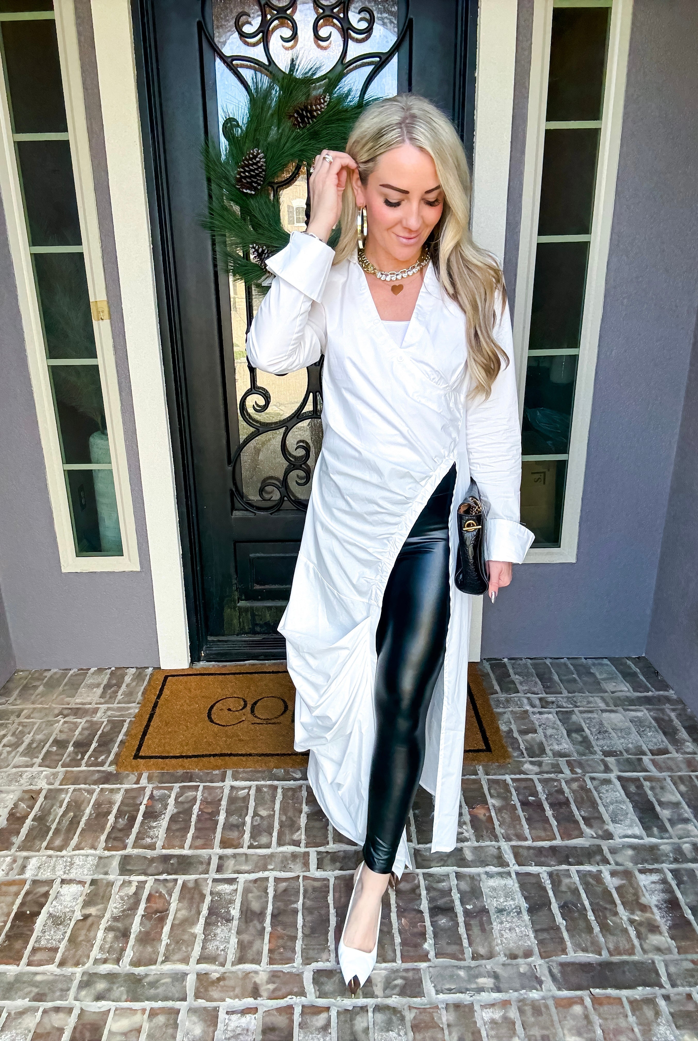 The Muse Edition Duster Top delivers effortless sophistication with its dramatic high slit silhouette and flowing duster length. Designed for the modern woman who values both style and movement, this piece transitions seamlessly from day to evening wear. The asymmetrical slit detail adds an unexpected edge while maintaining refined elegance. Perfect for layering or wearing as a statement piece, this top elevates any wardrobe with contemporary flair and undeniable presence.