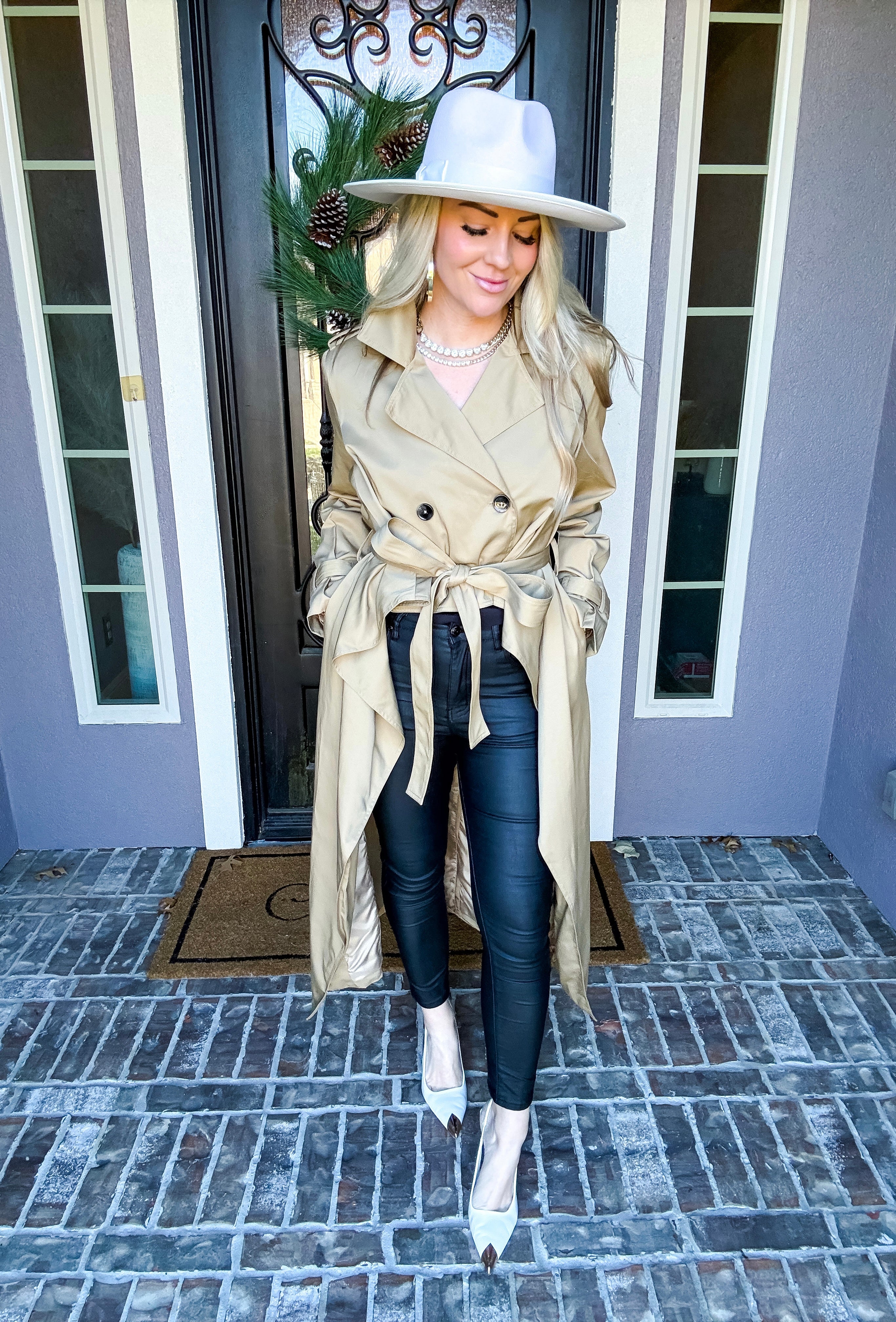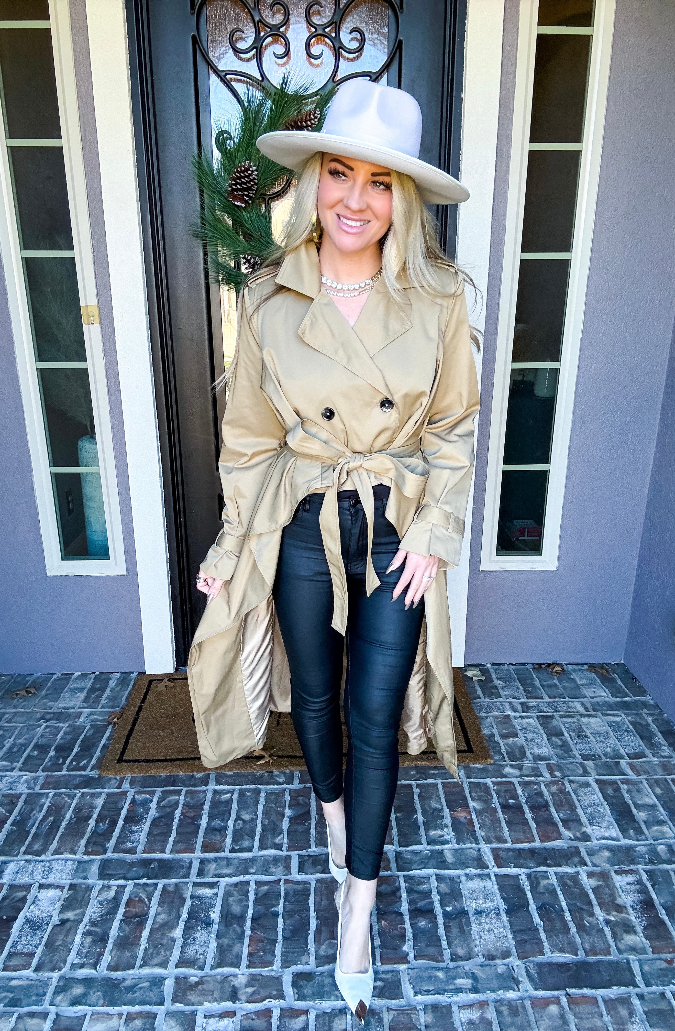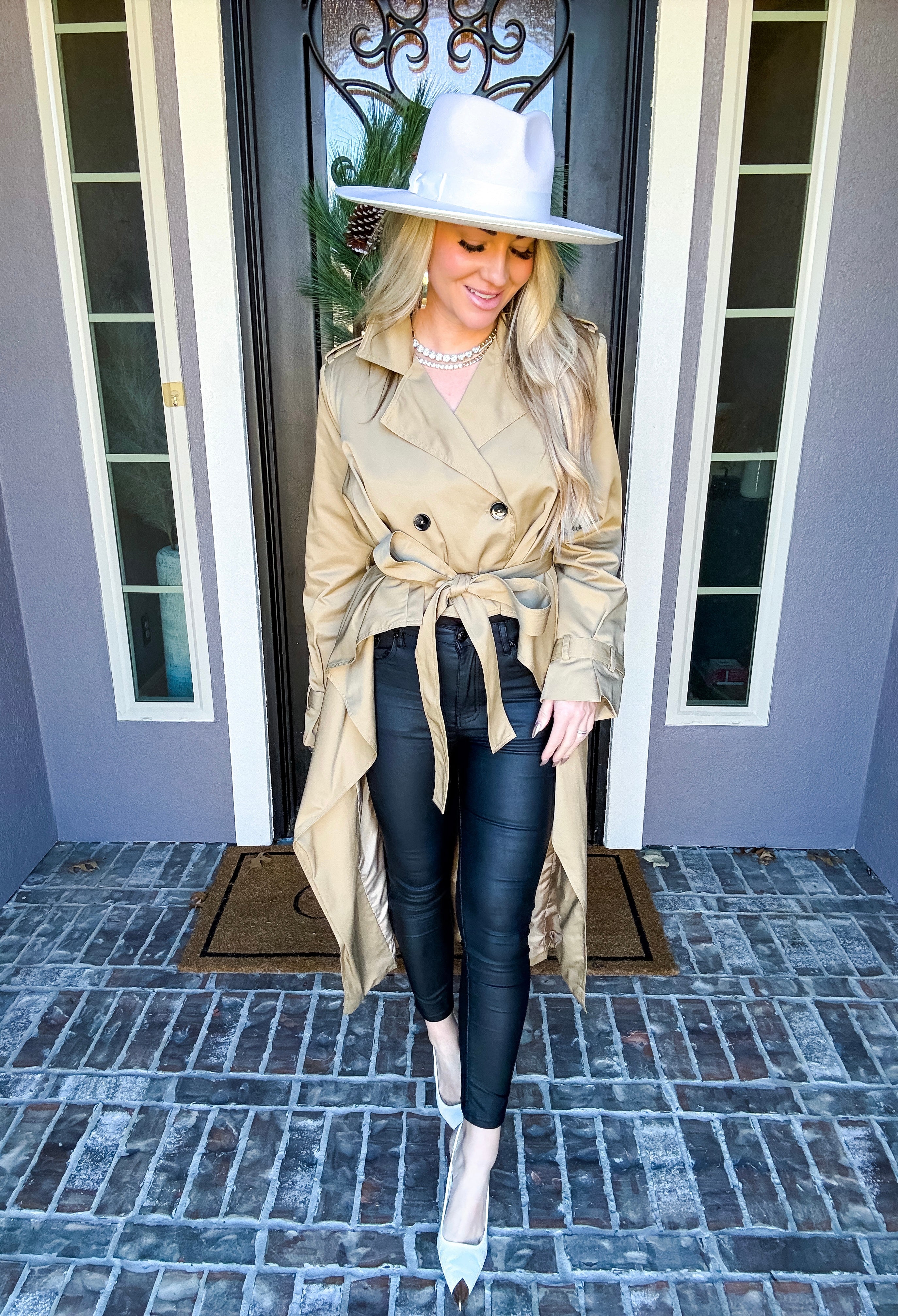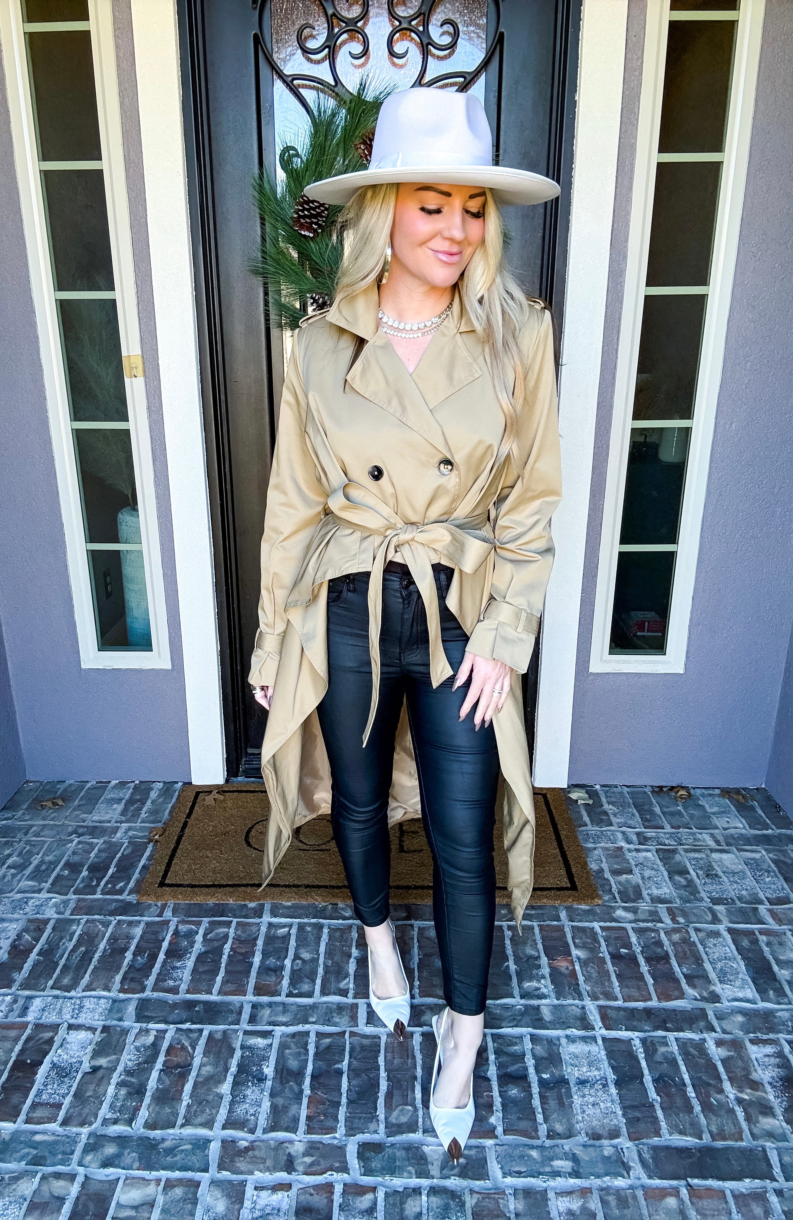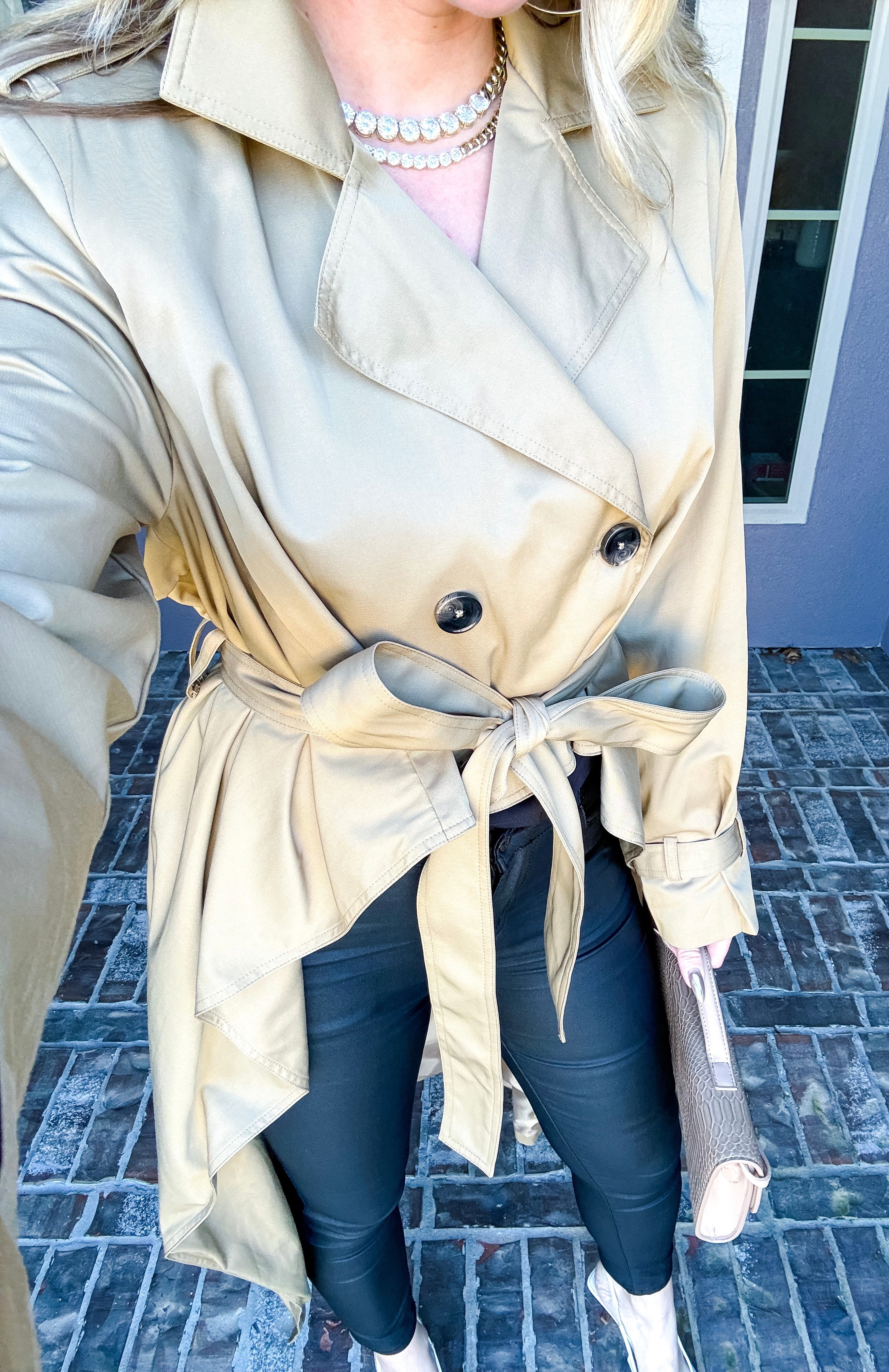 The Vogue Hi-Lo Trench Coat reimagines a timeless classic with contemporary flair. This sophisticated piece features a flattering hi-lo hemline that transitions from structured front panels to an elegant longer back, creating movement and visual interest. Tailored with precision tailoring and refined details, it effortlessly bridges the gap between polished professional wear and fashion-forward styling. Perfect for elevating everyday outfits or making a statement at special occasions, this trench delivers the authority of traditional outerwear with an undeniably modern edge.